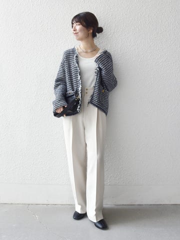 大人っぽい綺麗なシルエットなのでルーズパンツやニット帽で少し外すといい感じにカジュアルな雰囲気も出ます。