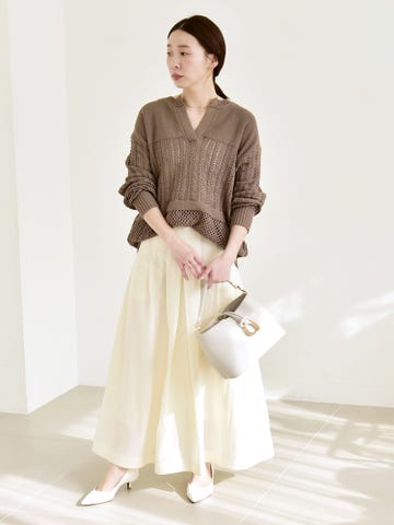 着心地:さらりとした肌触りで、とてもしなやかなコットンです。ブラウスのようなとろみがあり、レイヤードしてもごわつきません。