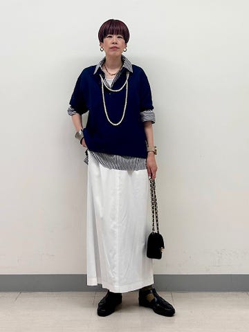 身長:164cm / 体型:細身(ウェーブ) / 肩幅:なで肩・狭め / 普段サイズ:38・MEDIUM