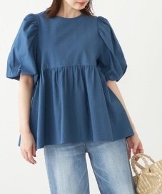 〔ONE SIZE〕SHIPS Colors:〈洗濯機可能〉サッカー パフスリーブ ペプラム トップス◇