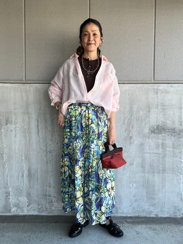 あえて大きめのサイズをズルッと着てます。ウエスト周りもゆとりあり、着丈も長めでした。程良いボリューム感でシルエットがとても綺麗なのでフレアには普段抵抗がある方でも取り入れやすいと思います。