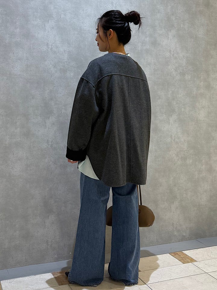 着用感 : 薄手のコートでとても軽い着心地です。サイドには深めのスリットがはいっているので、厚手のニットやスウェットなどでも、着膨れすることなく着用いただけます。