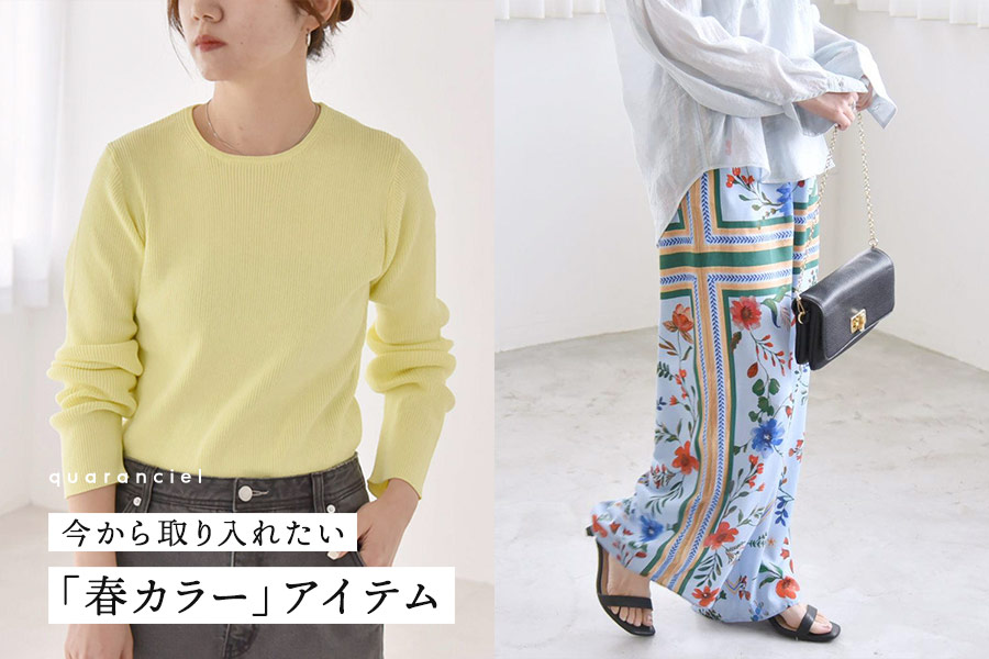 お洋服にも春カラーをプラスして気分を上げてみて。