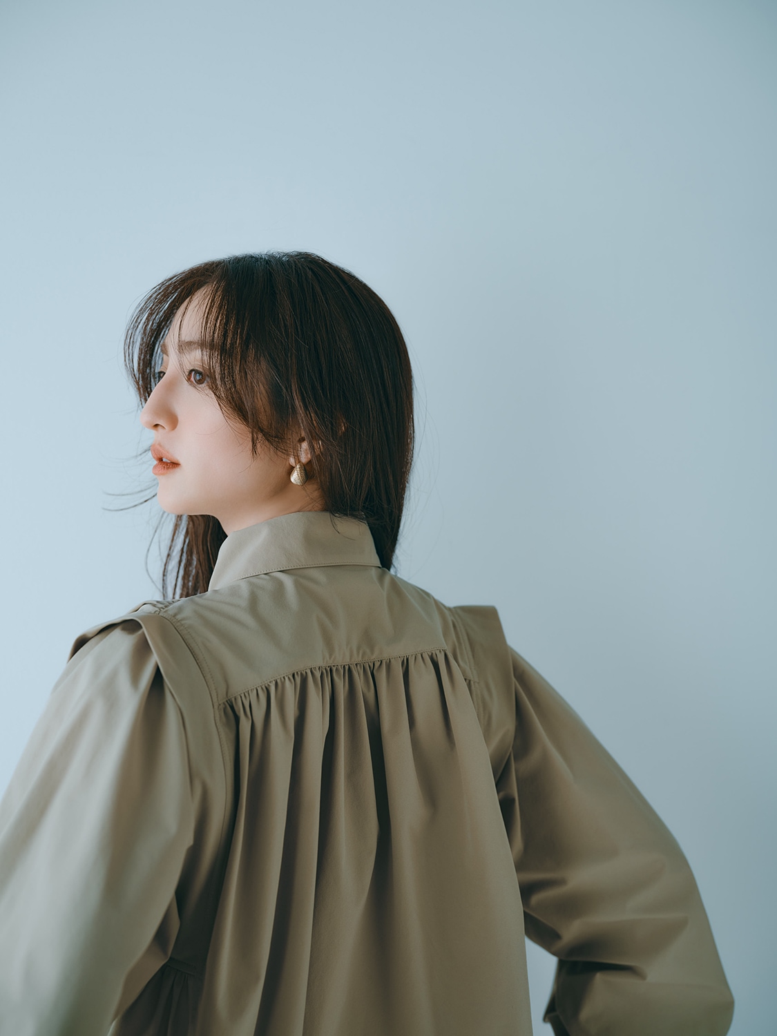 撮影衣装の着用時間って、長くても30分程度。そのわずかな時間でも、着心地のいい服を着たときは気持ちが上向くんです。その逆で、着心地が悪いと、気持ちもそっちに寄っていってしまう。着るものひとつで気分が大きく左右されることを知っているからこそ、自信をもって勧められる着心地に仕上げました。デザインの良さは大前提として、着たときの肌触りや扱いやすさはSHIPSさんと何度も話し合い、実現できました。 -