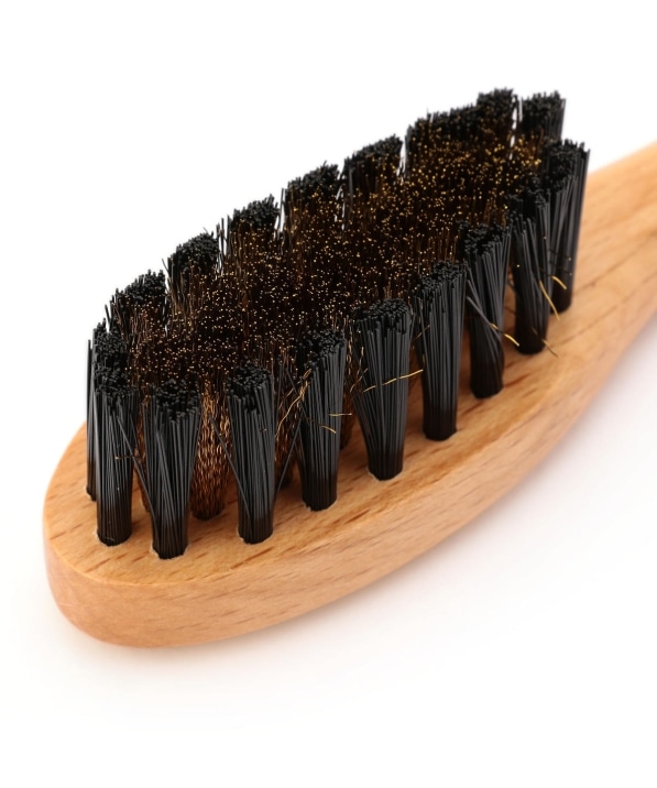 スエードケアに必須のワイヤーブラシです。ワイヤーが波型になっているので、ブラッシングの時に生地への当たりが柔らかいのが特徴。また長く使用しても先端が広がりにくいつくりとなっています。