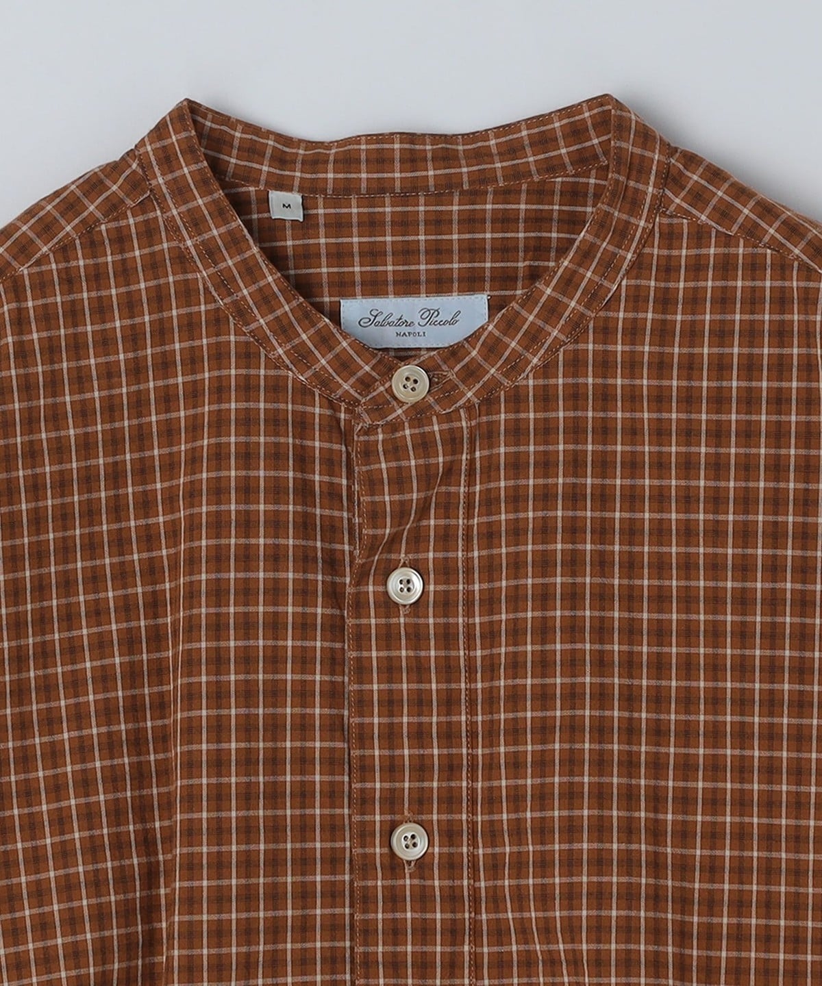 SHIPS別注 サルヴァトーレ・ピッコロのチェック柄の生地を使用したバンドカラーシャツです。