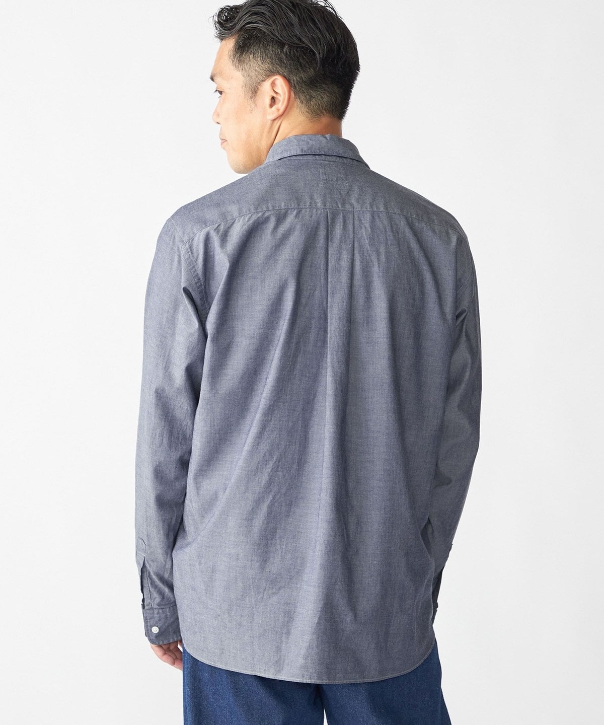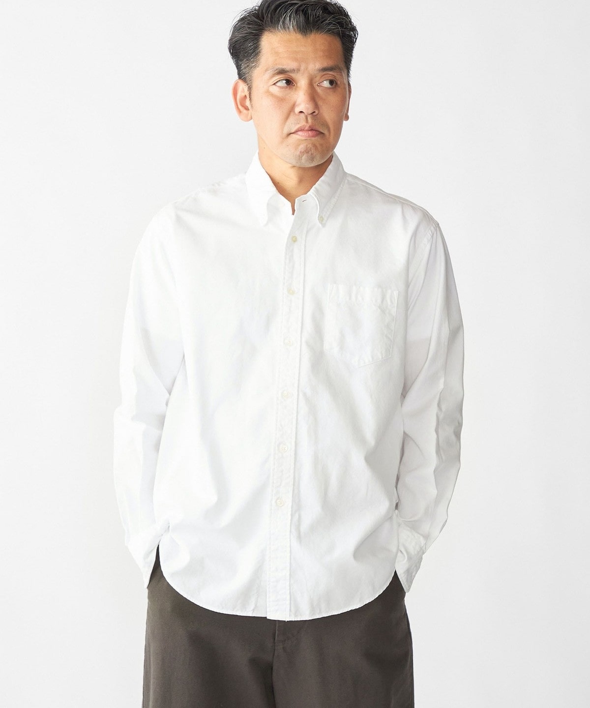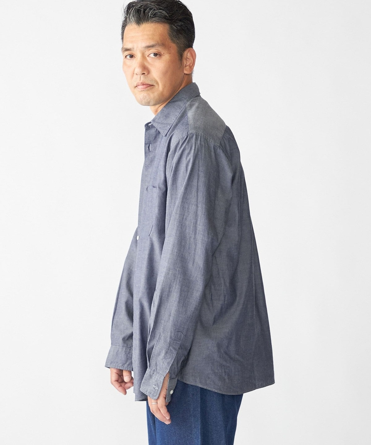 ドレスとカジュアルの中間的な立ち位置で仕上げたレギュラーカラーシャツ。