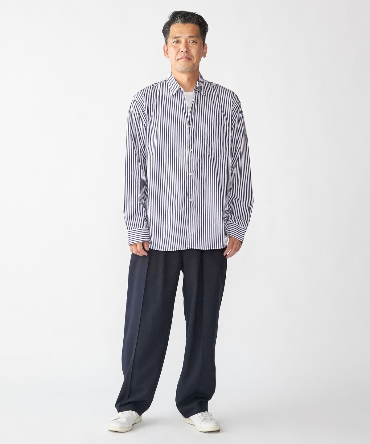 ややゆとりのあるサイジングで程よく抜け感は大人なコーディネートに適します。