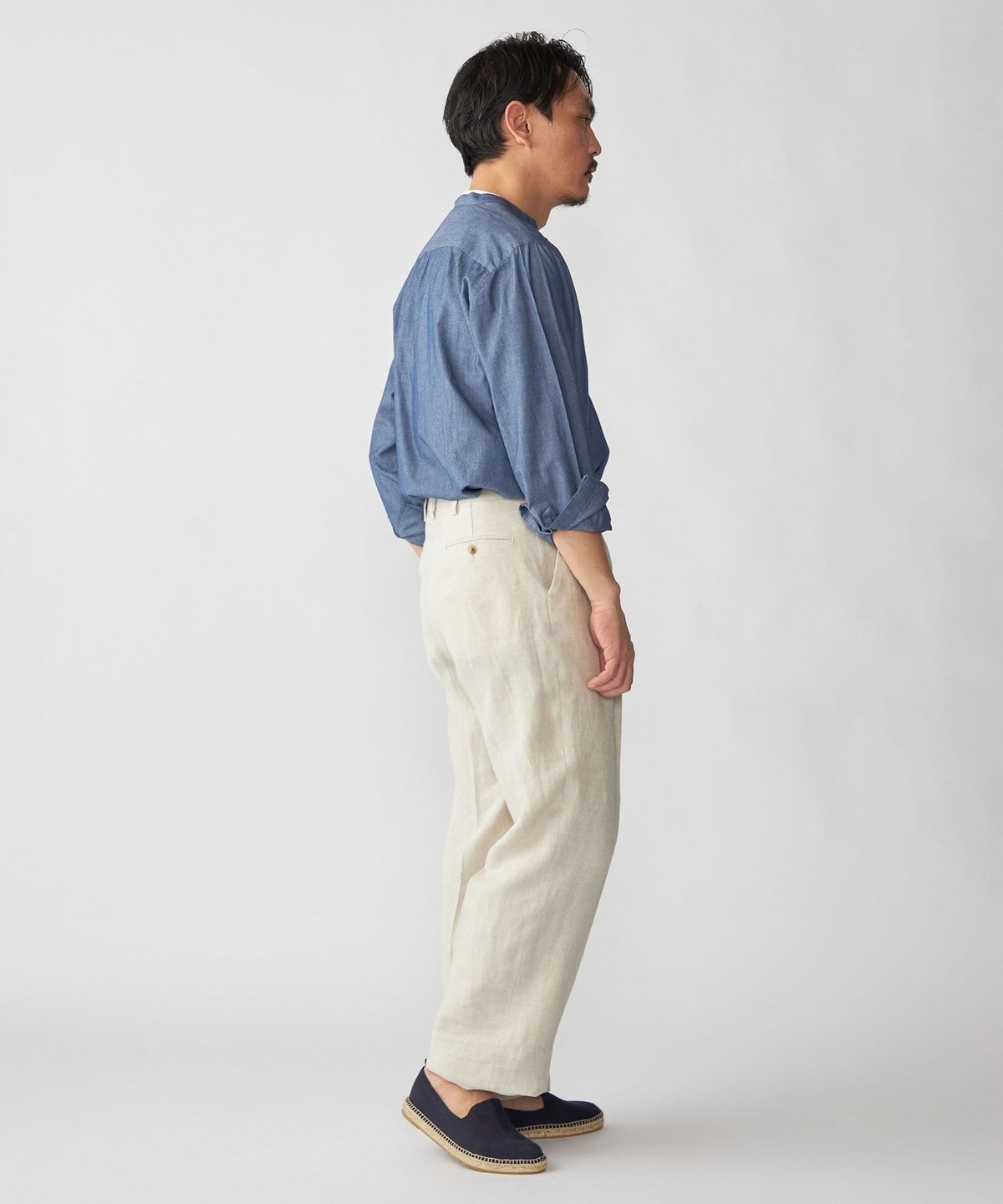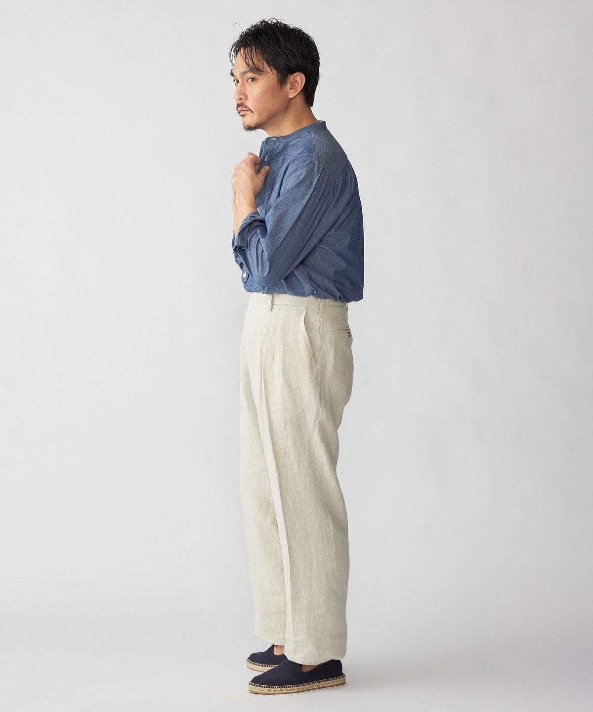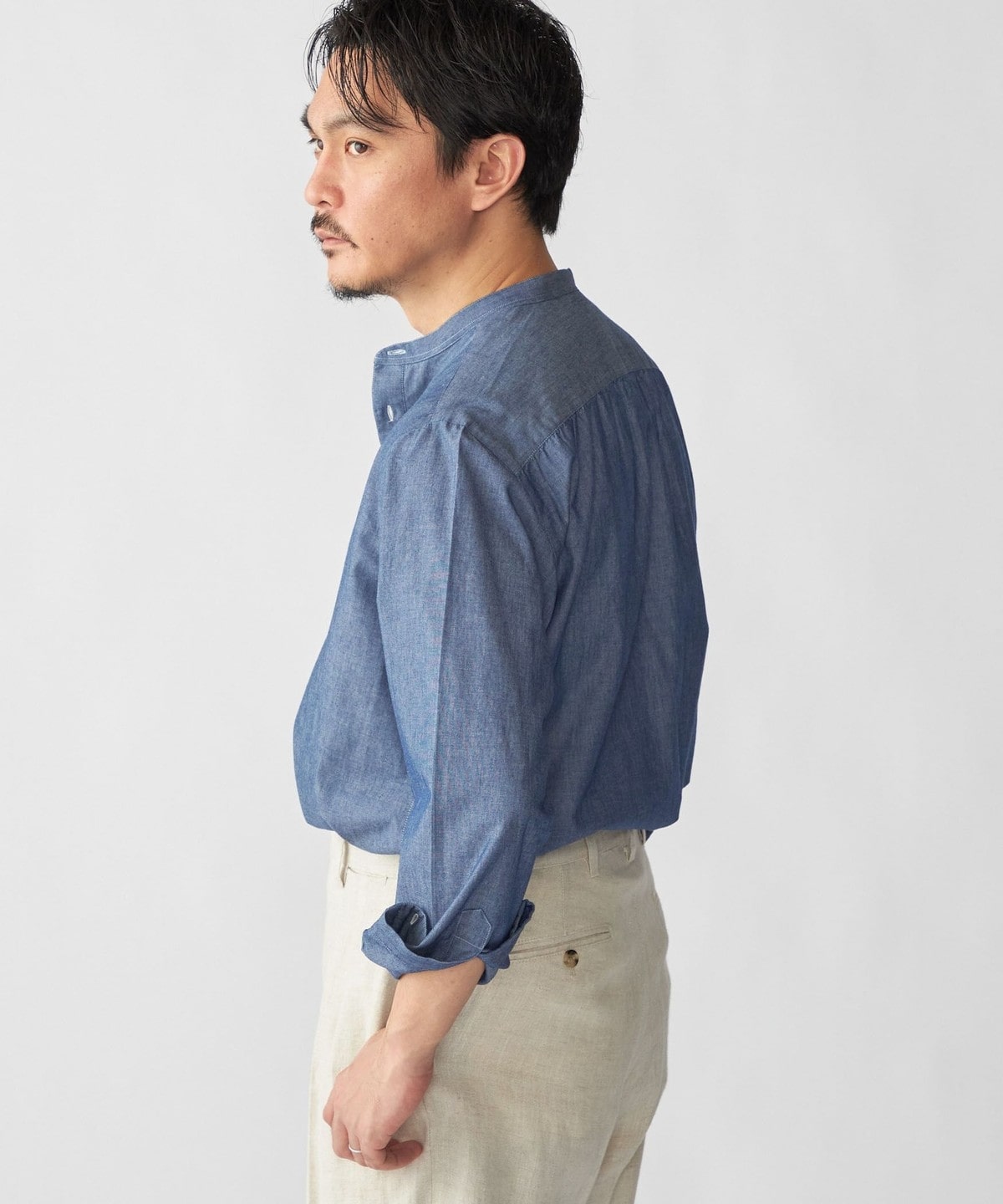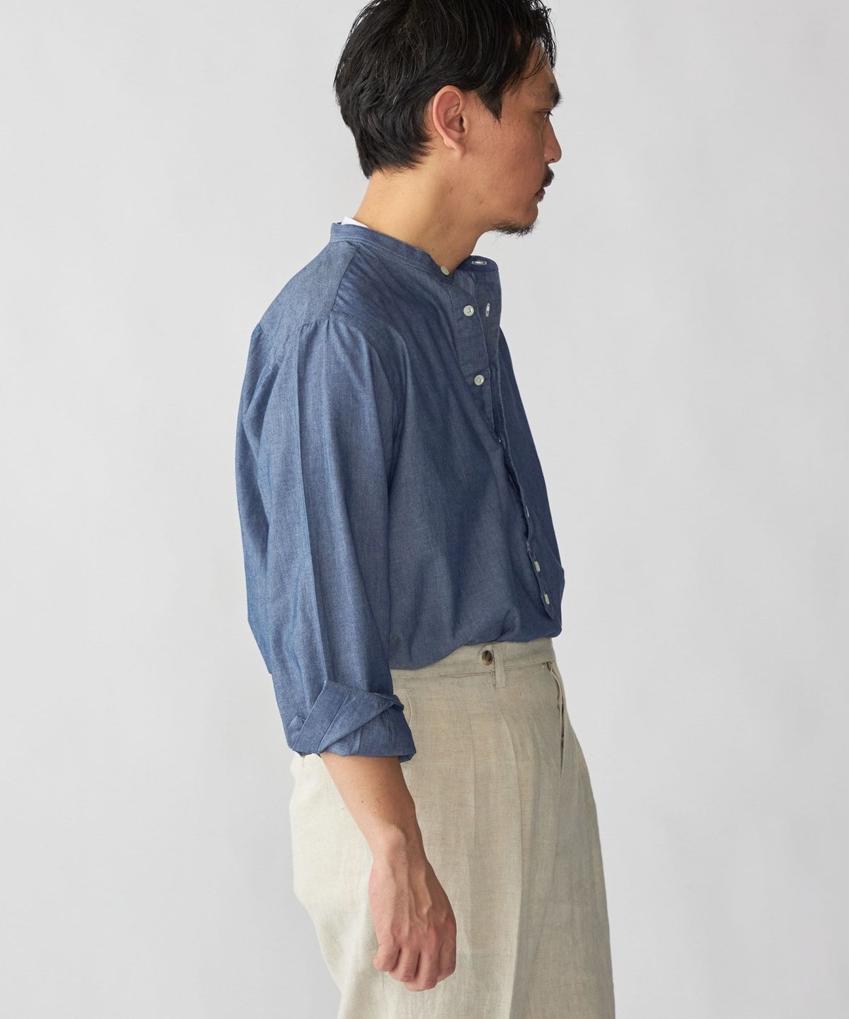 SHIPS DRESS別注 Salvatore Piccolo バンドカラー プルオーバー デニム シャツ