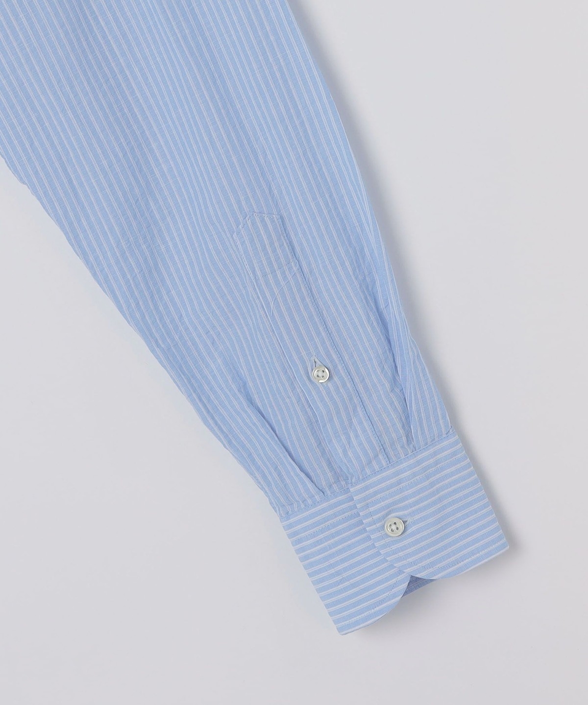 襟から前立てまでを一枚の生地で仕立てるワンピースカラーとなっており、ボタンを開けた際に襟のロールが美しく見えるのがポイントです。