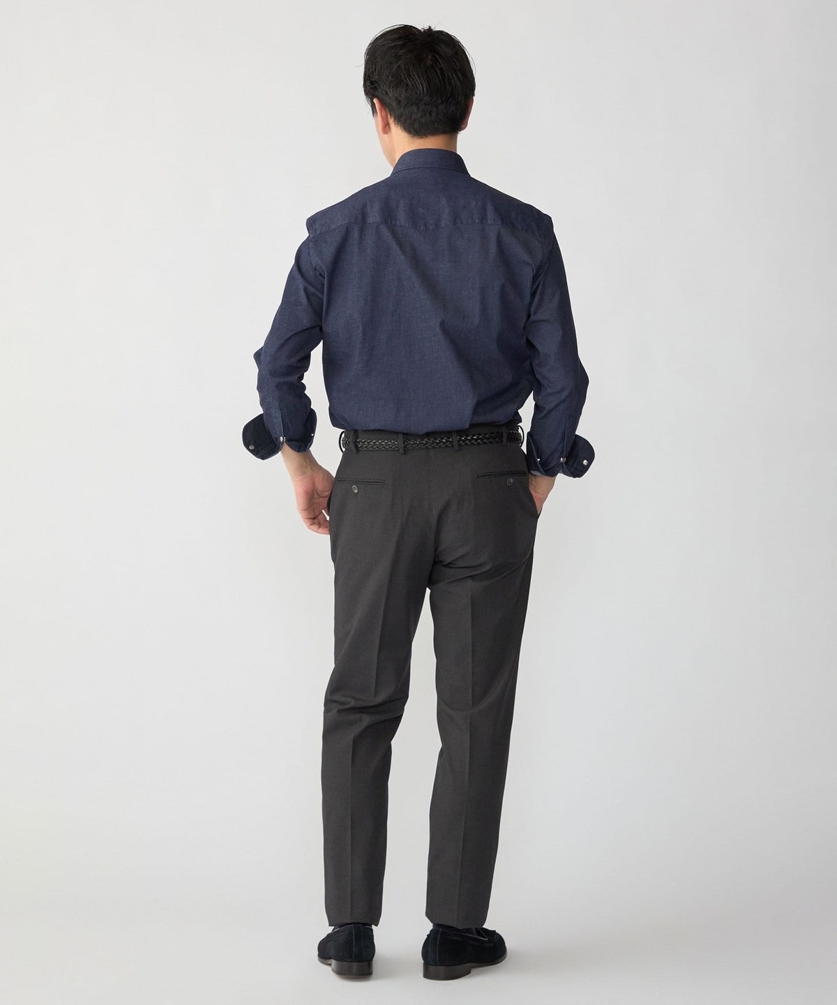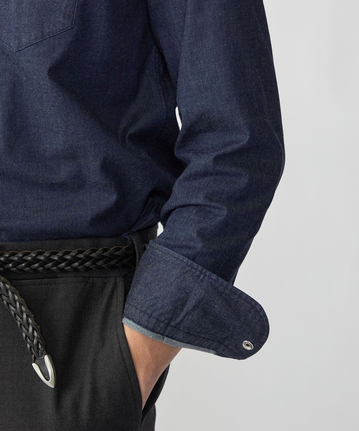 ドレスシャツ仕立ての細部にこだわった仕様はそのままに、無骨になりがちなヨーク・ポケット・スナップボタンはシンプルなデザインと繊細なステッチワークで上品に仕上げています。