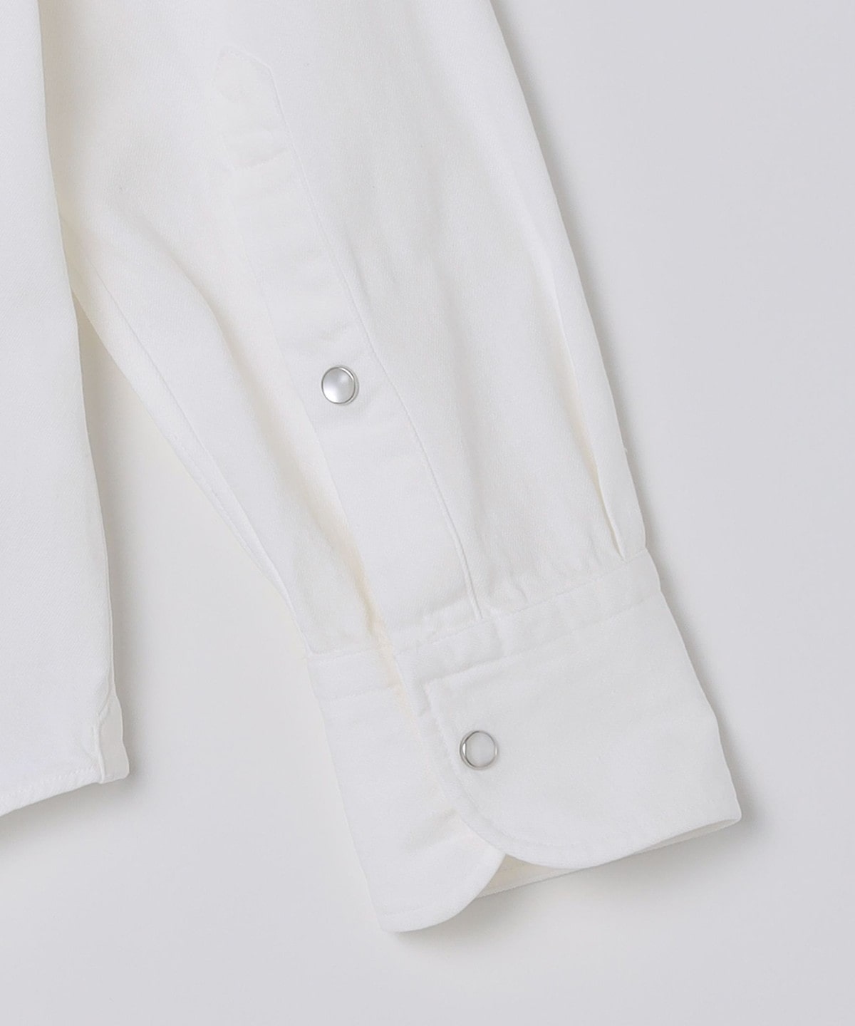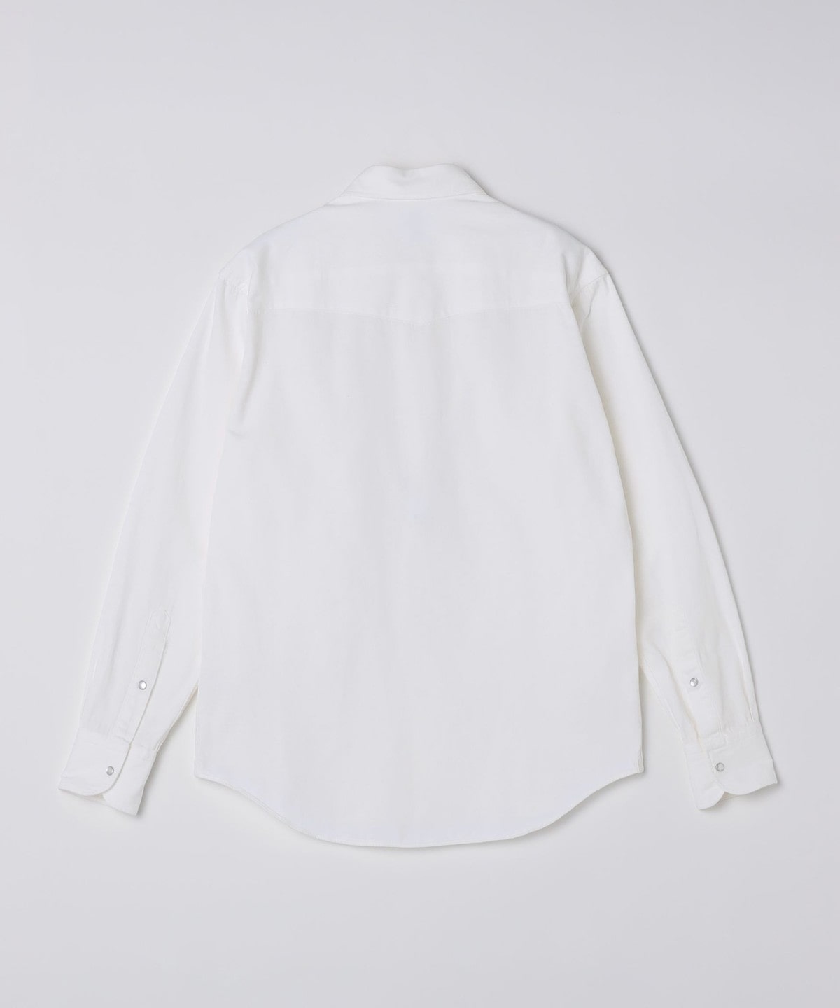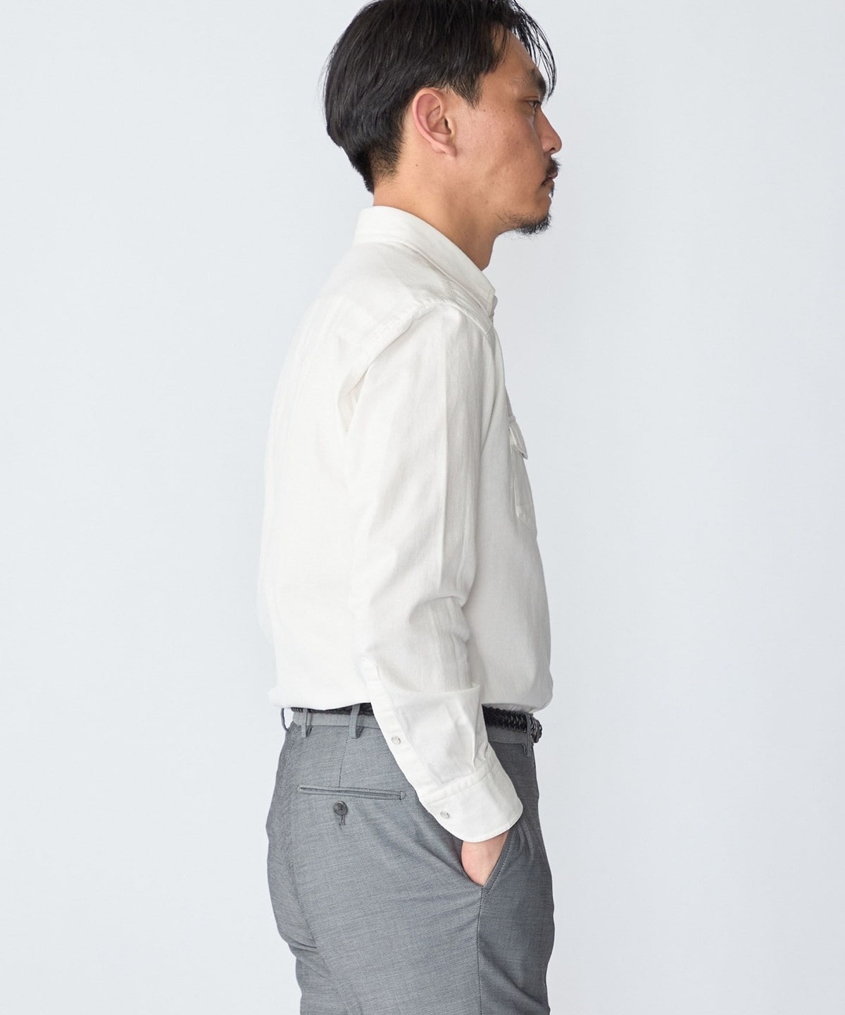 ドレスシャツ仕立ての細部にこだわった仕様はそのままに、無骨になりがちなヨーク・ポケット・スナップボタンはシンプルなデザインと繊細なステッチワークで上品に仕上げています。
