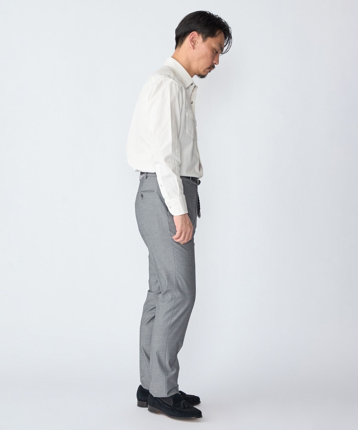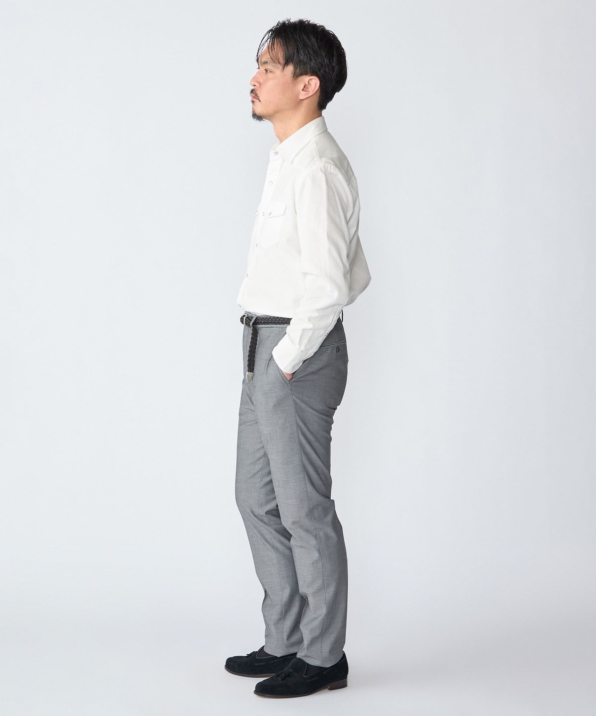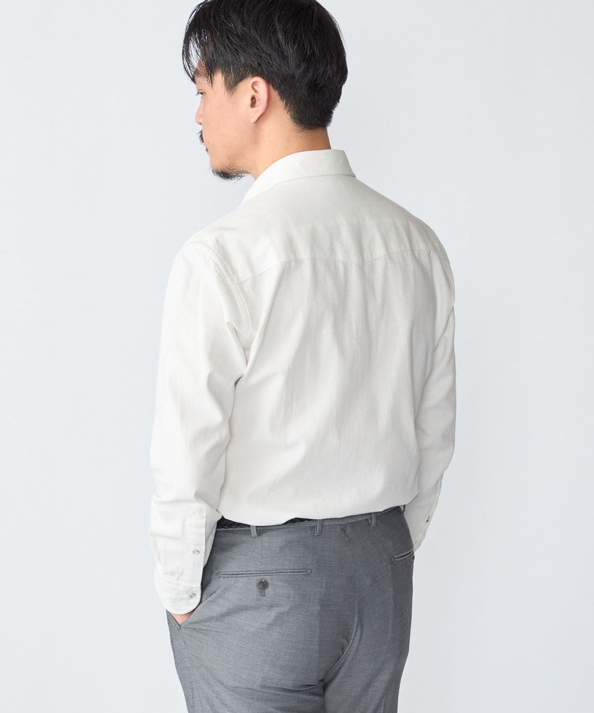 ドレスシャツ仕立ての細部にこだわった仕様はそのままに、無骨になりがちなヨーク・ポケット・スナップボタンはシンプルなデザインと繊細なステッチワークで上品に仕上げています。