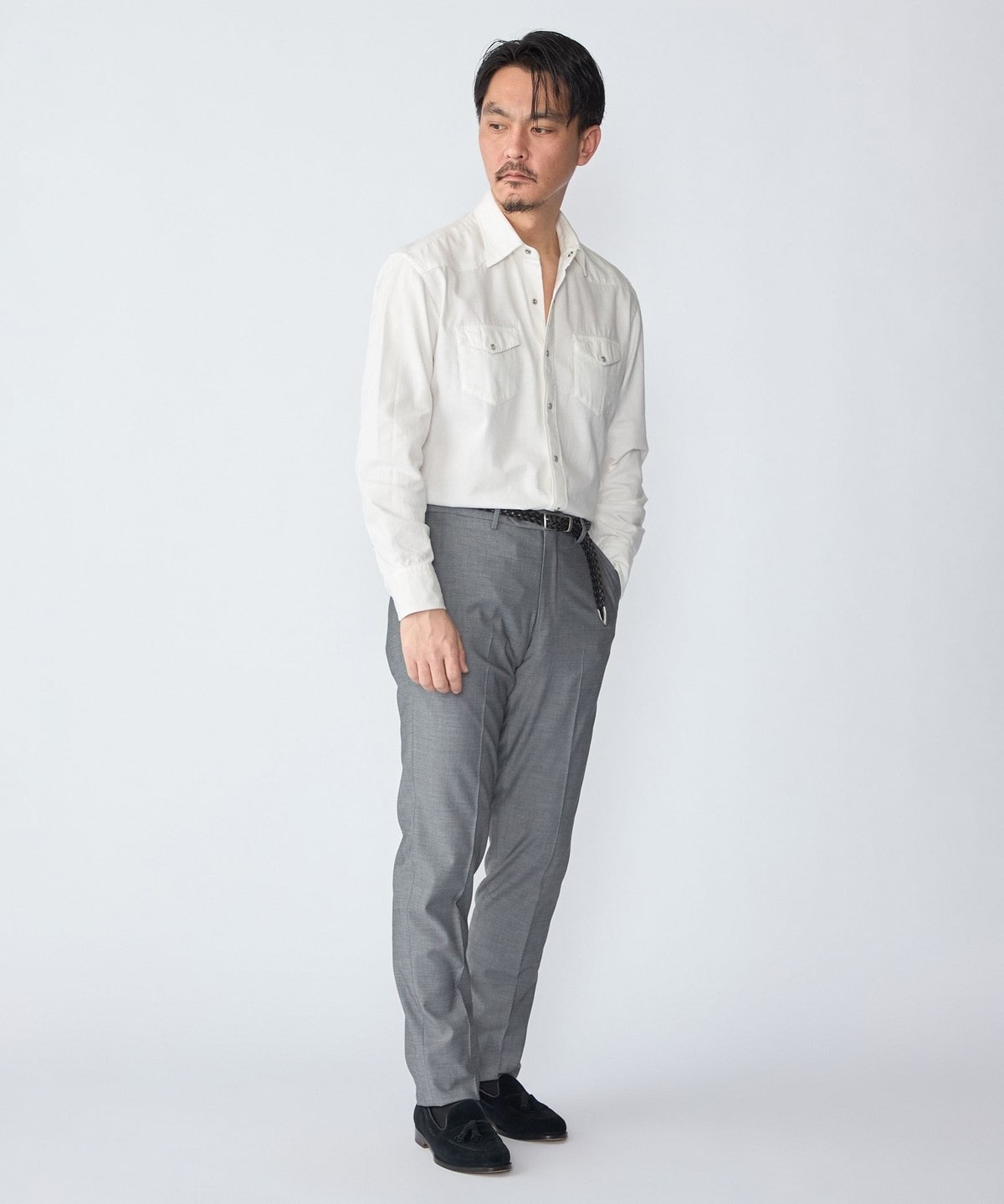 幅広いスタイリングに対応するウエスタンシャツです。