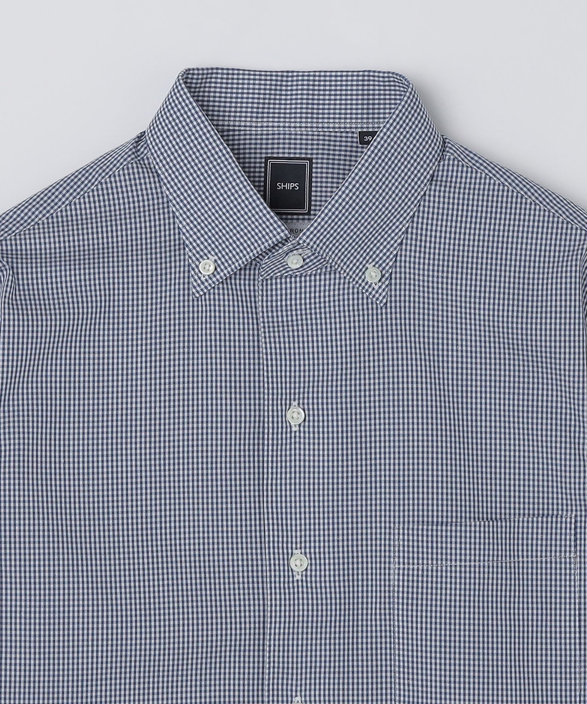 SHIPS DRESS イージーアイロン ギンガムチェック イタリアンカラー ボタンダウン シャツ