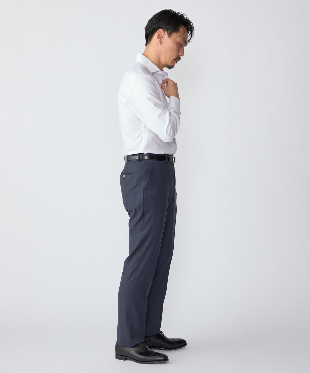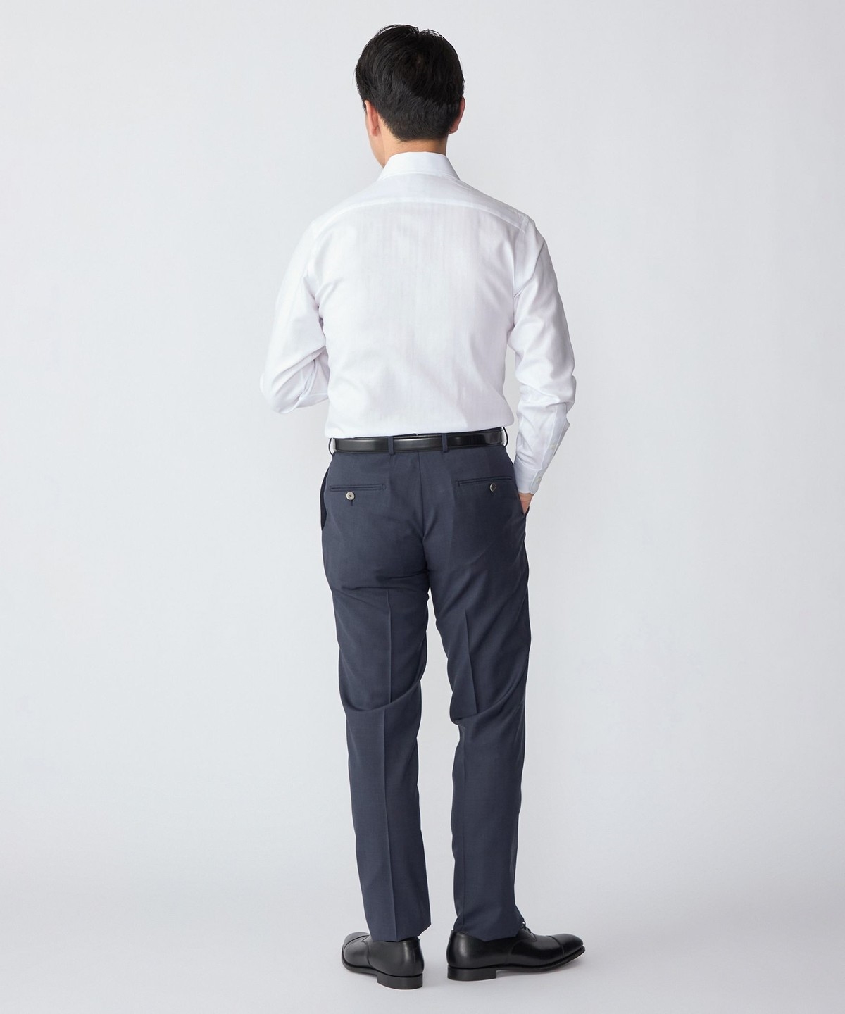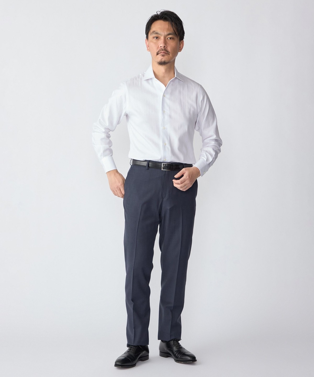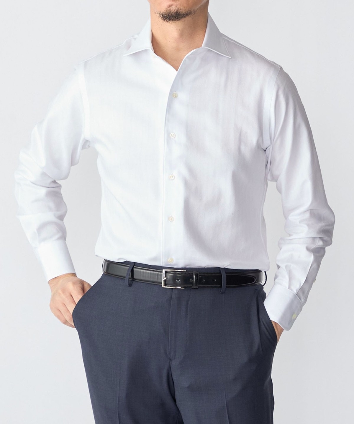 GIZAコットン、スーピマコットン精紡交撚100番手双糸のヘリンボーン生地を使用。