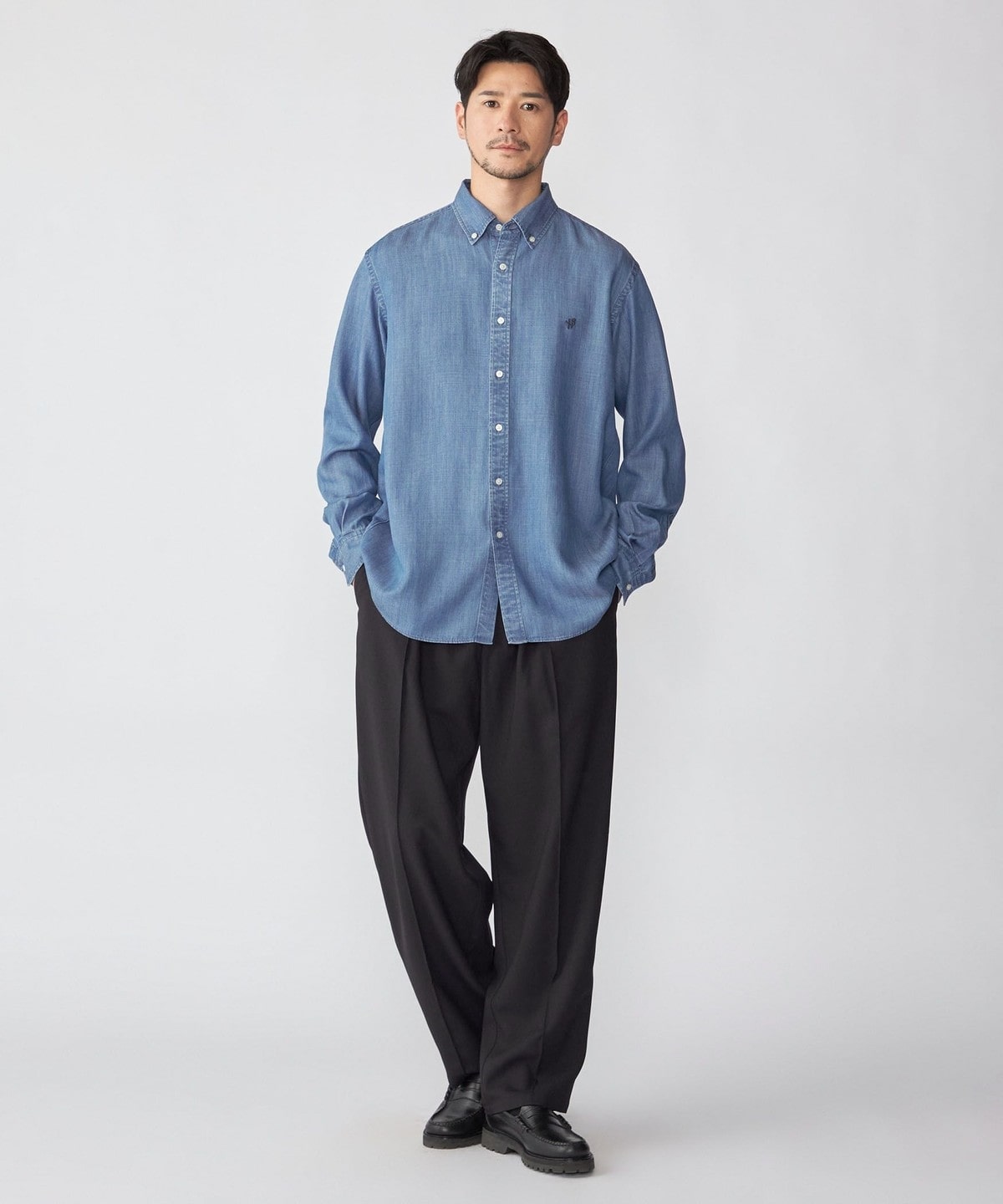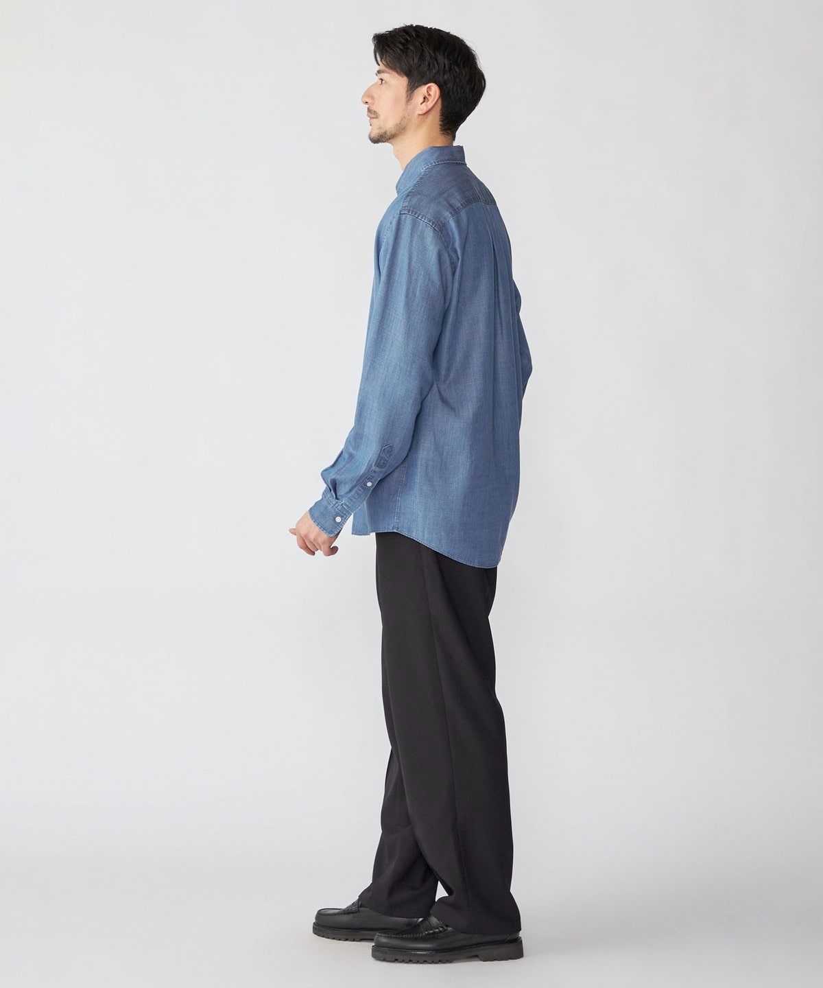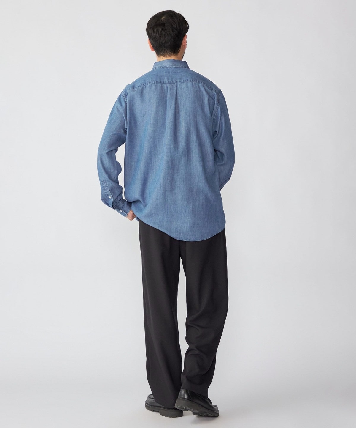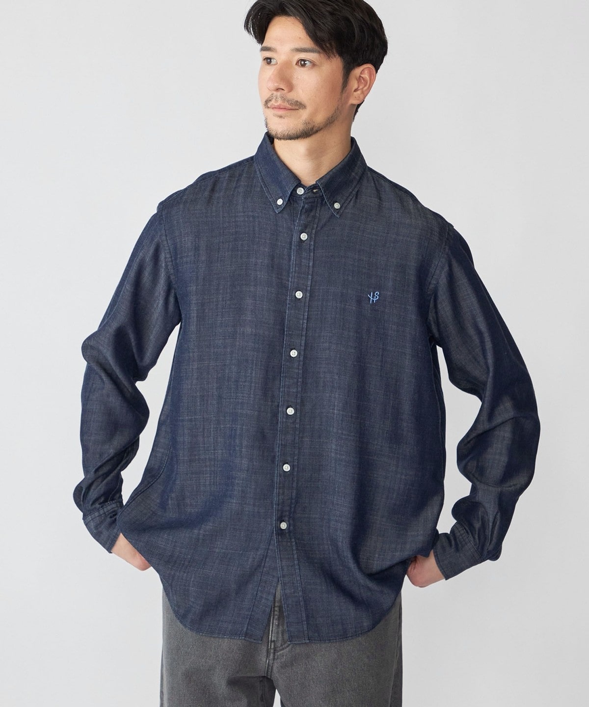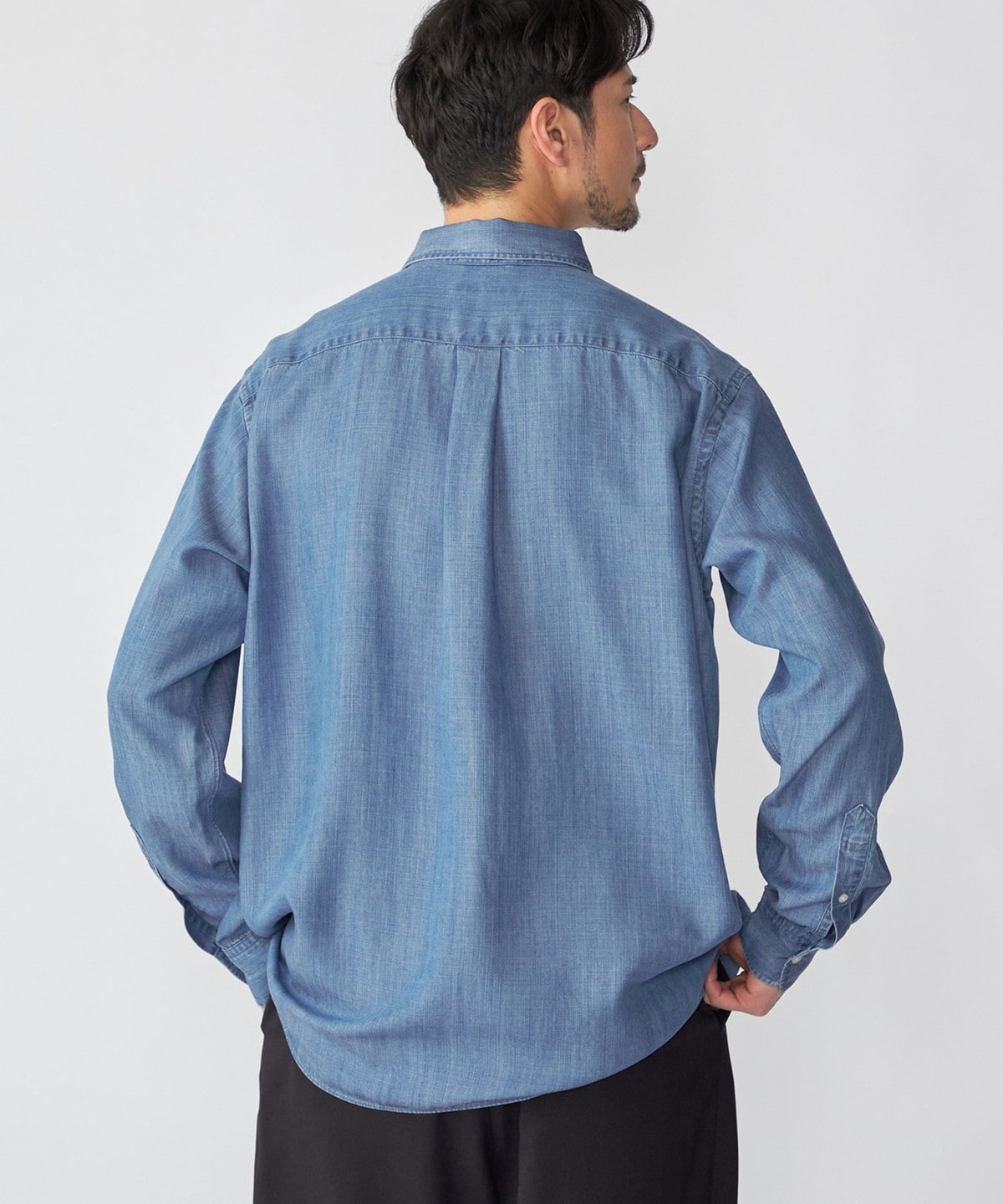デニムライクシャツながら素材感も相まって一枚でのカジュアルなスタイリングは勿論、ジャケット等のインナーに合わせ、キレイ目なスタイリングも可能です。