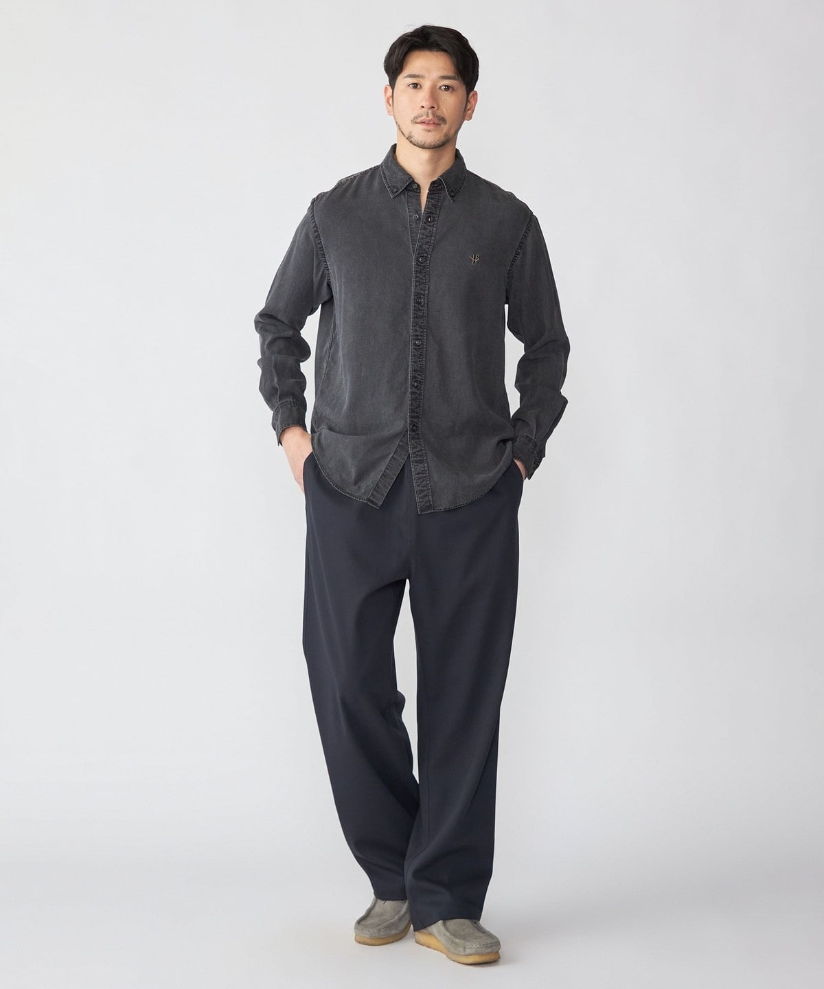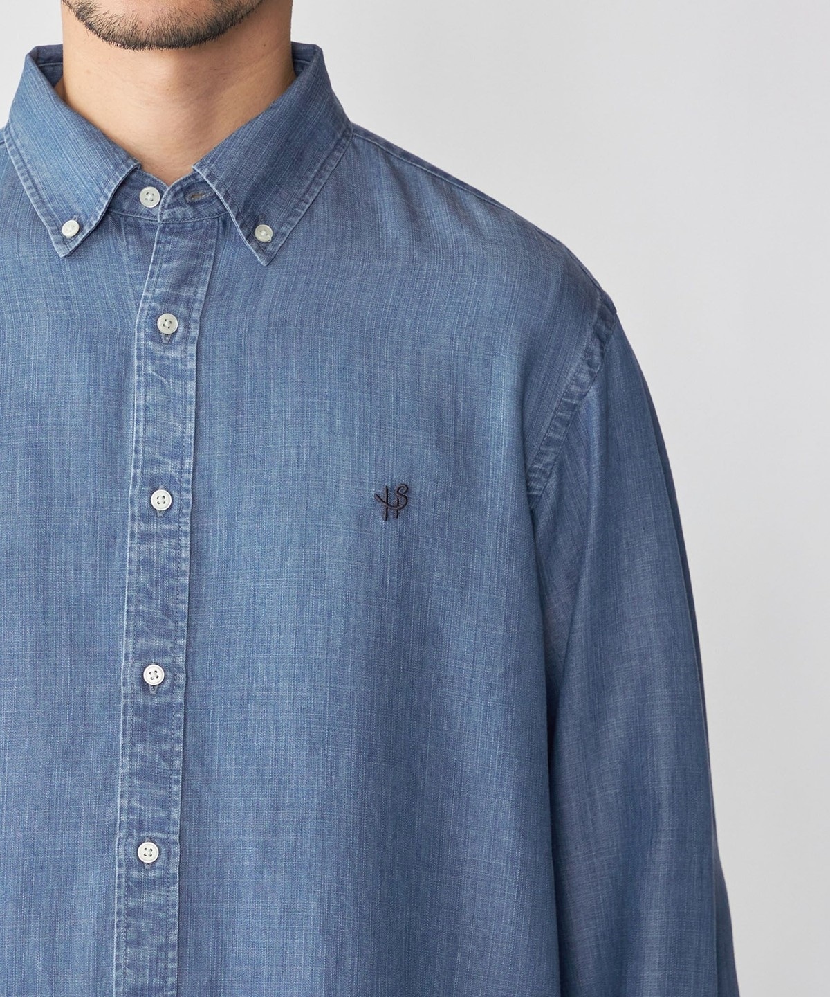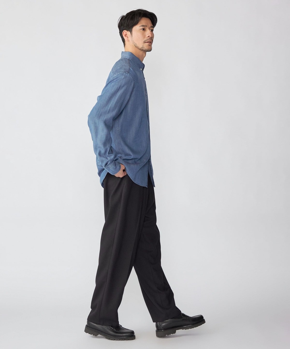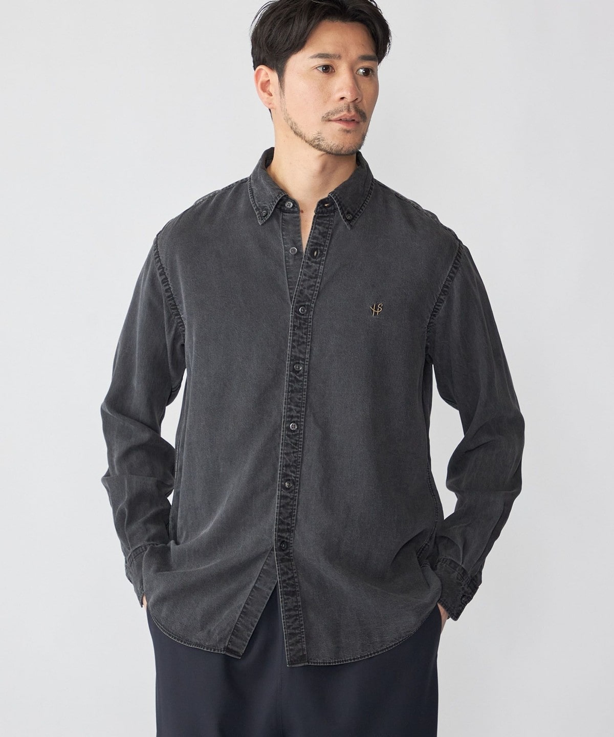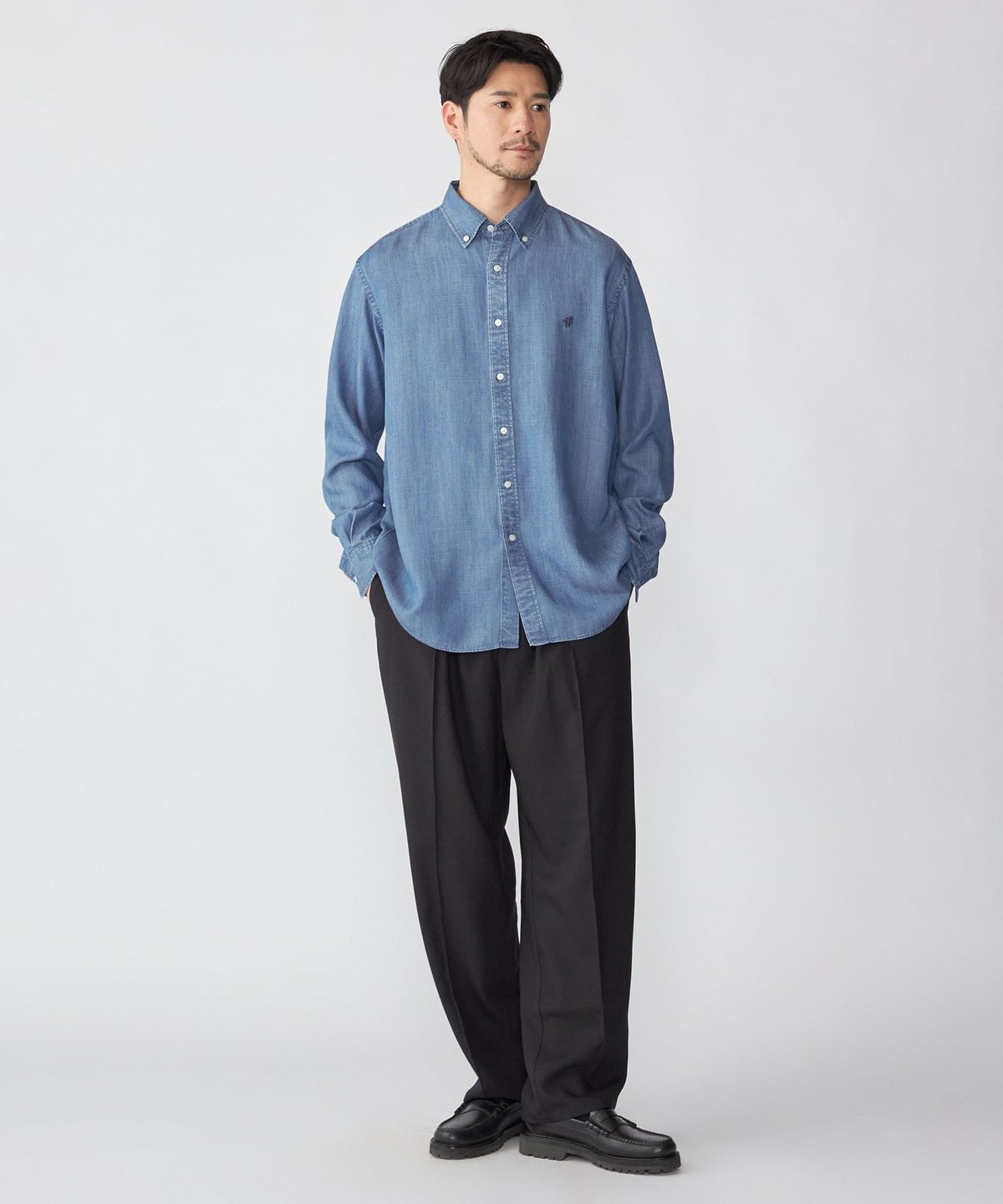 デニムライクシャツながら素材感も相まって一枚でのカジュアルなスタイリングは勿論、ジャケット等のインナーに合わせ、キレイ目なスタイリングも可能です。