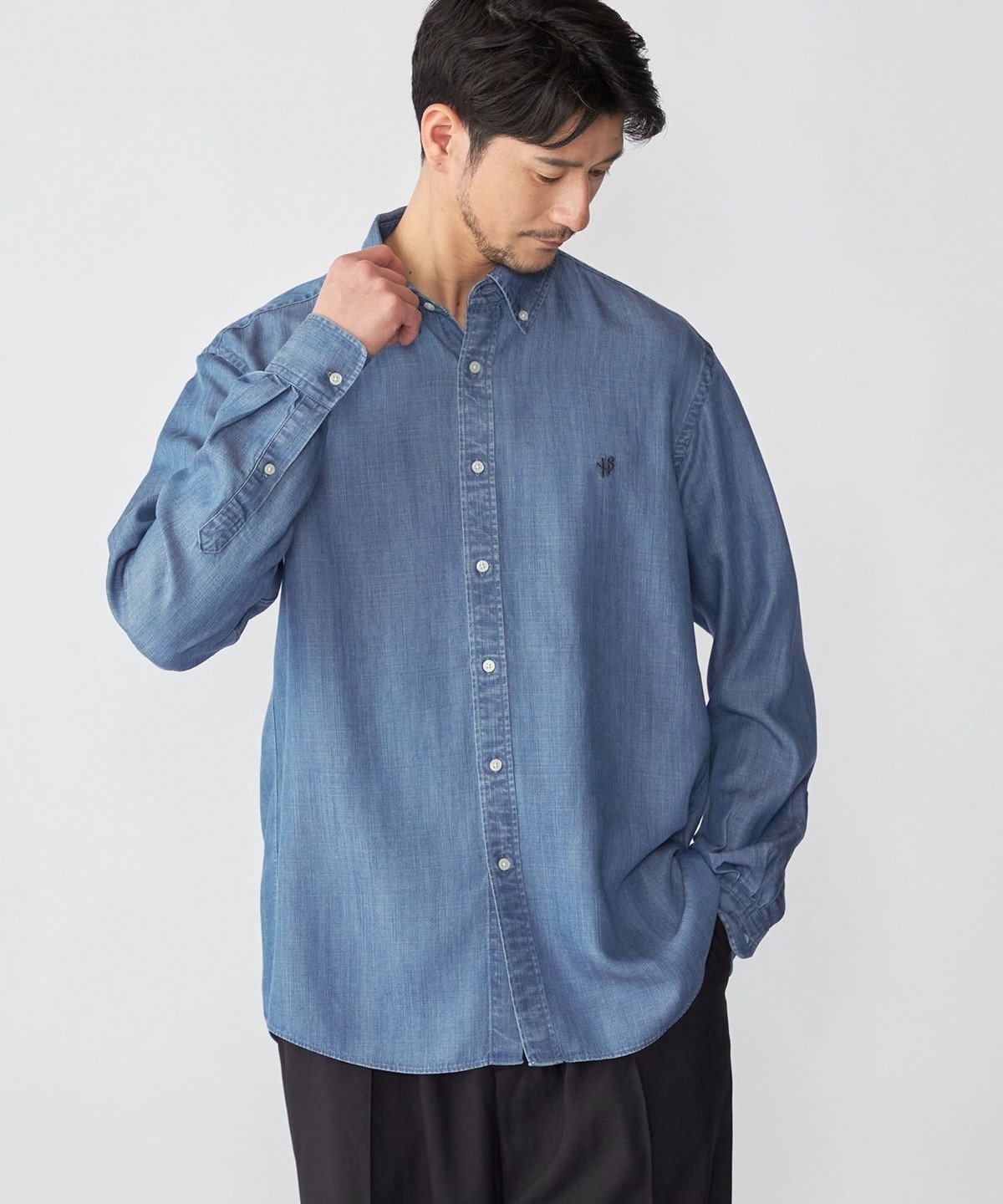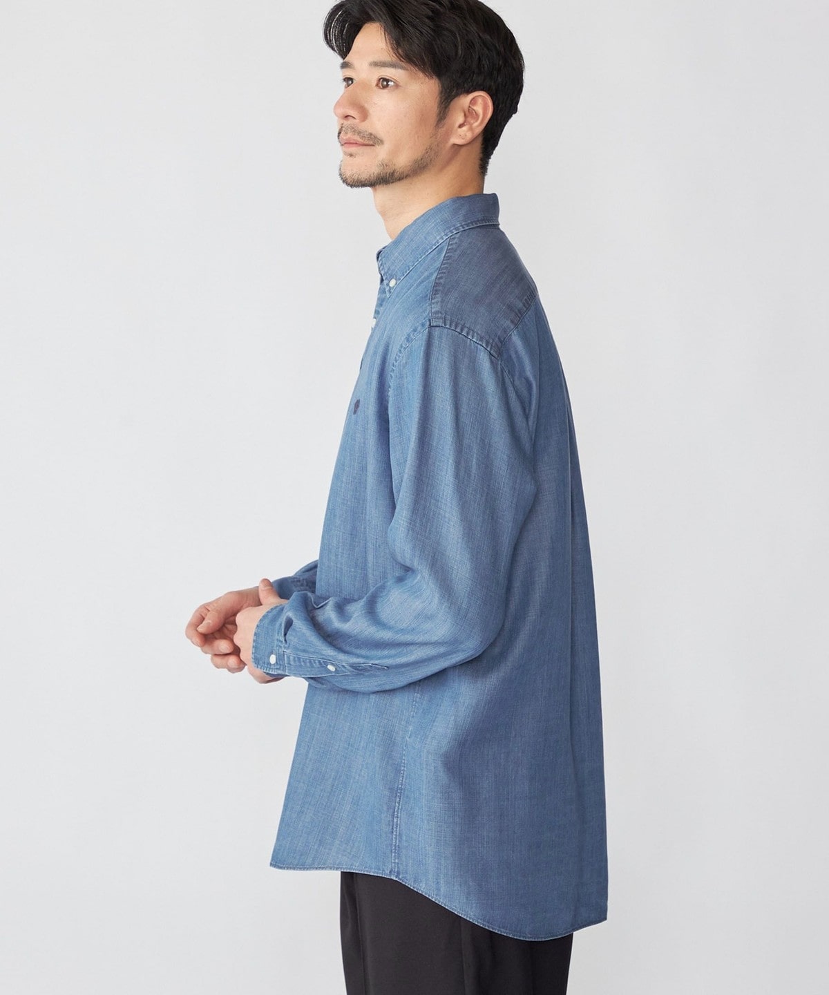 ご家庭でケアが可能なリヨセル素材を使用した程よい落ち感のあるデニムライクシャツ