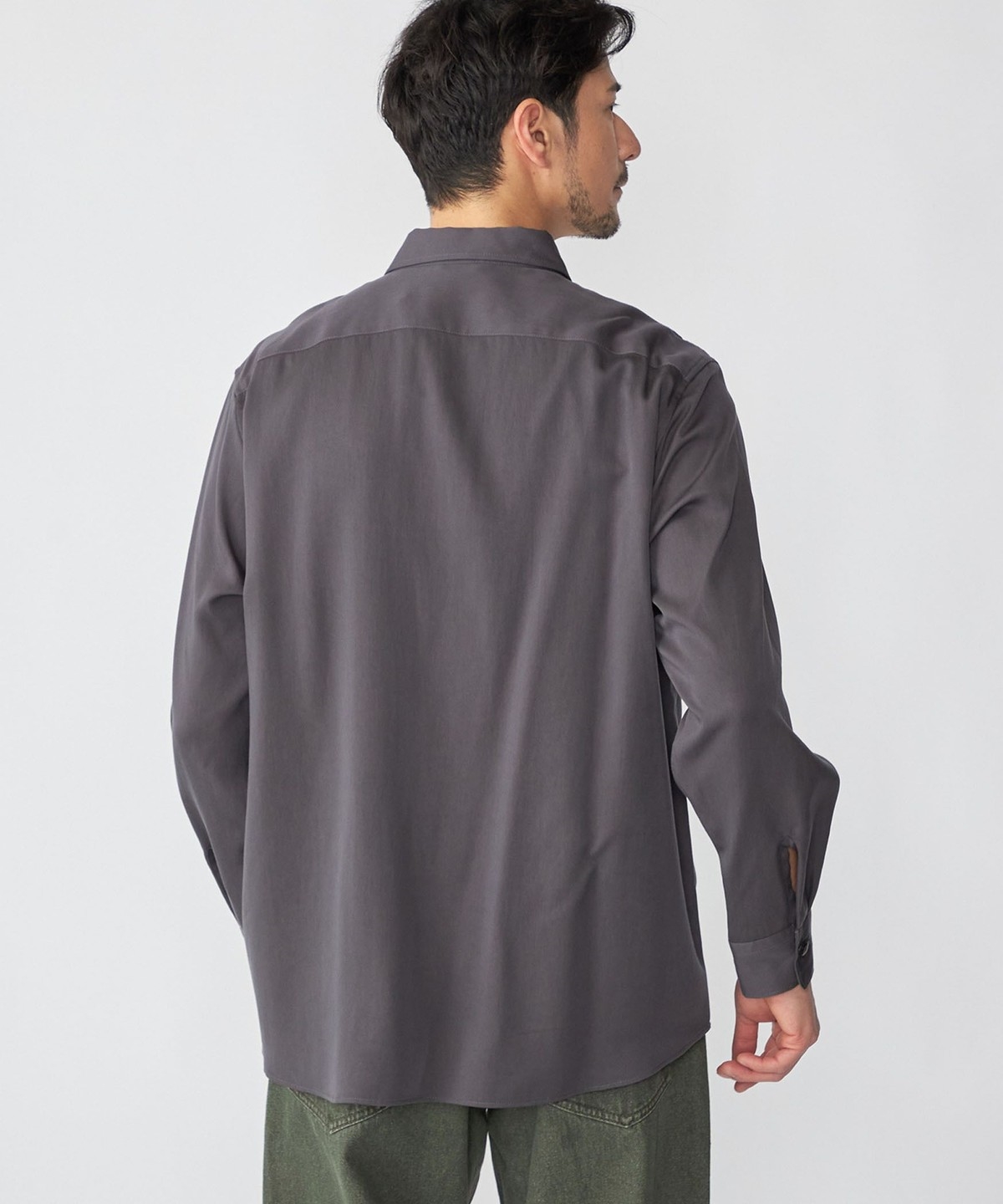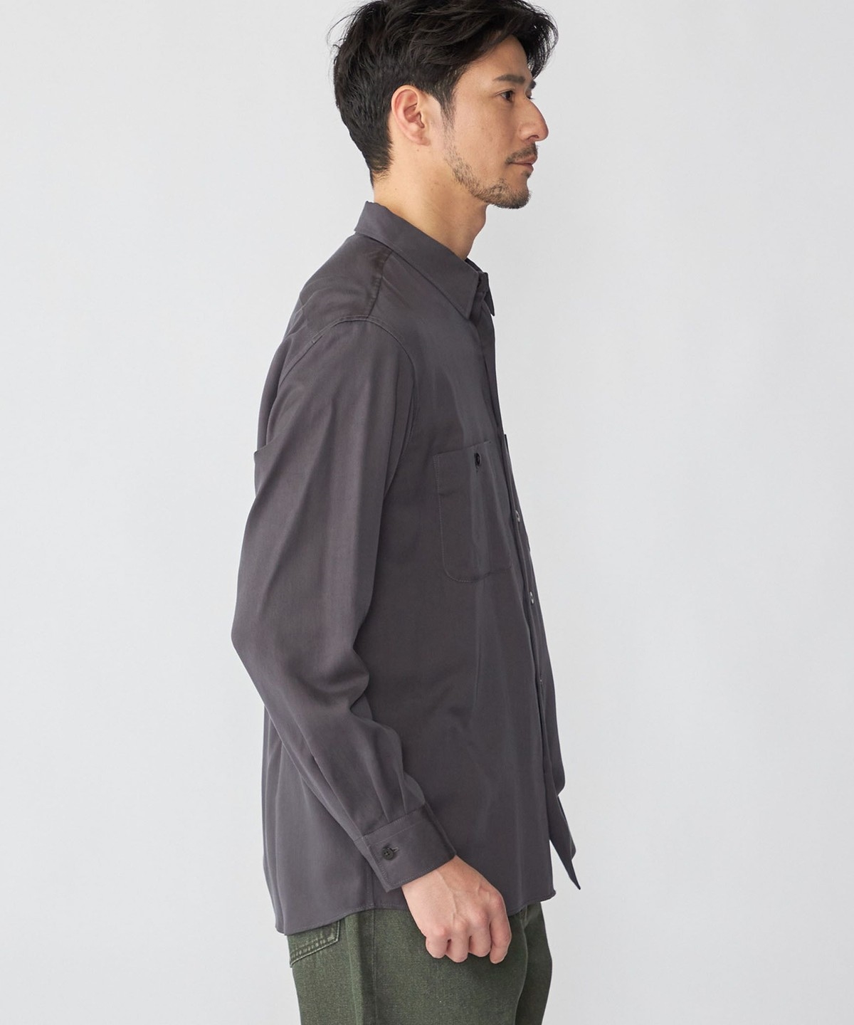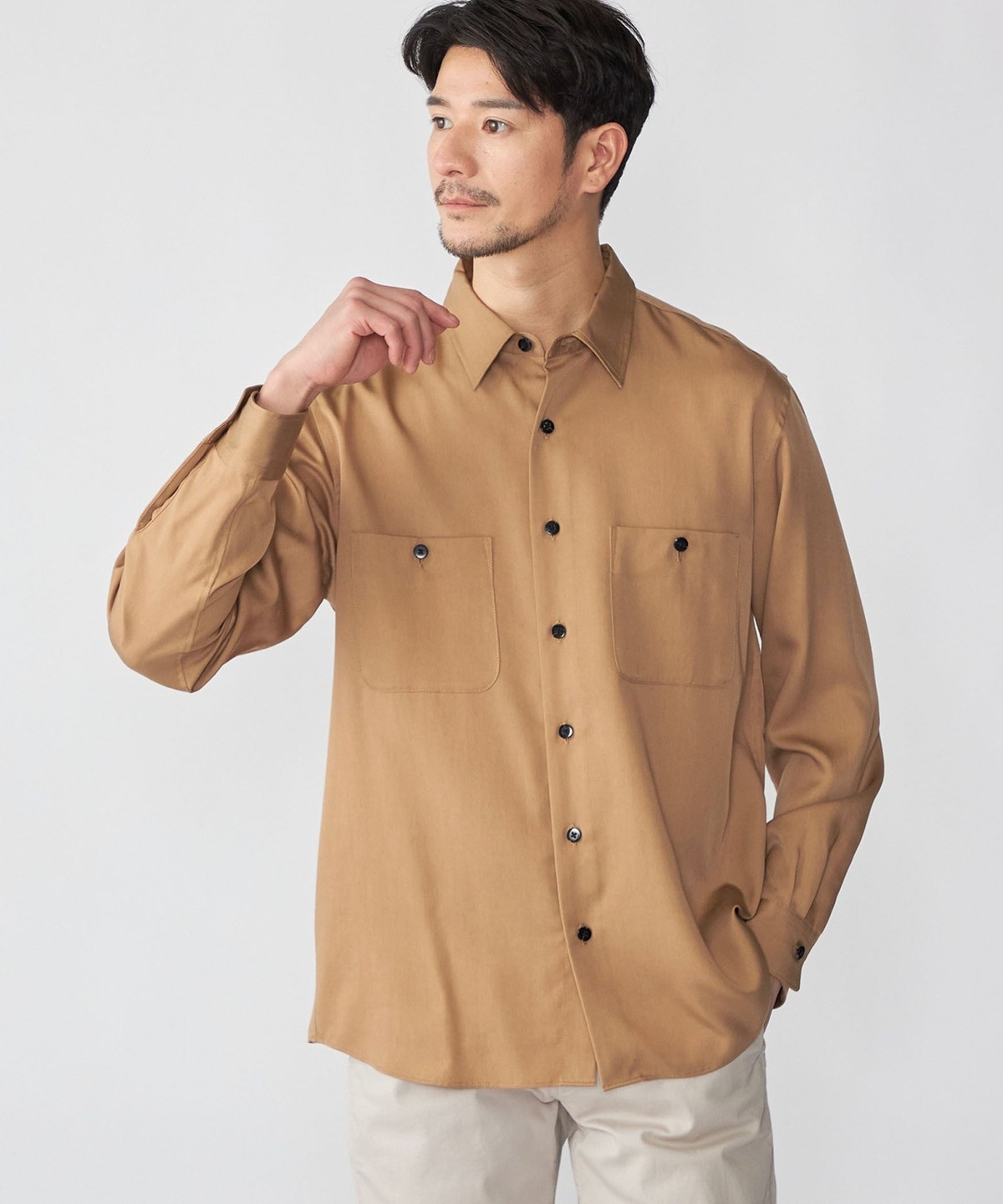 ドレープと光沢が特徴のリヨセルを使用したレギュラーカラーシャツ