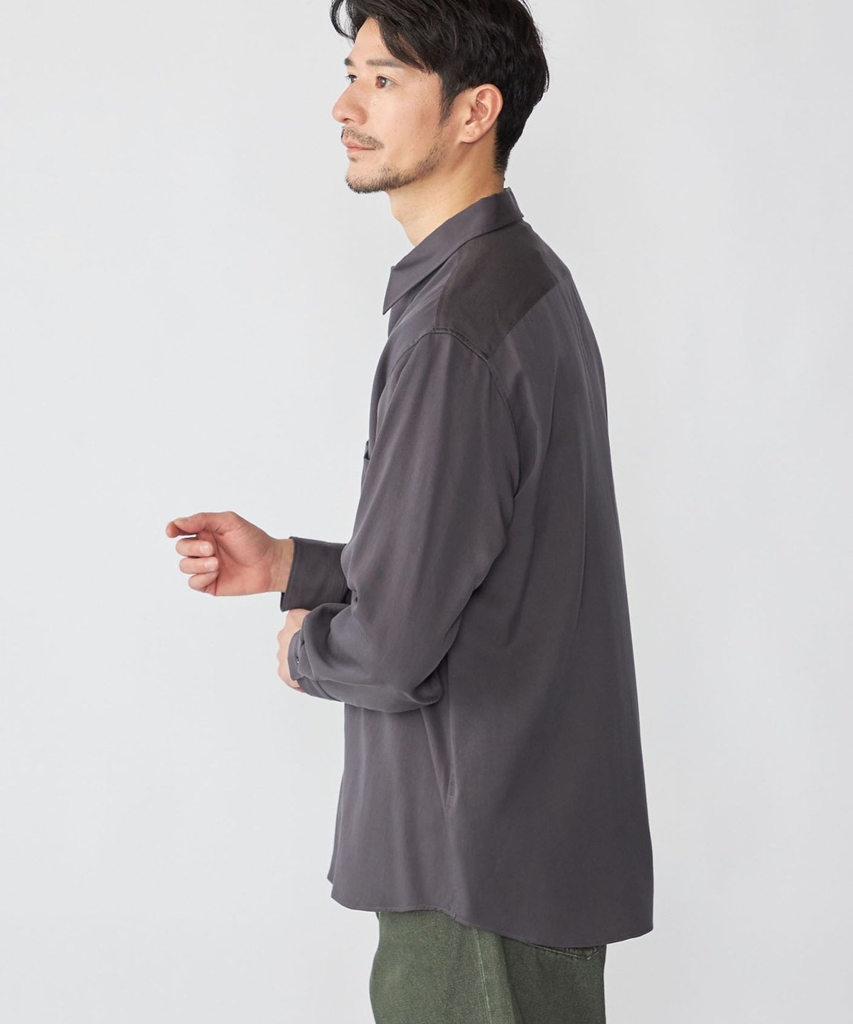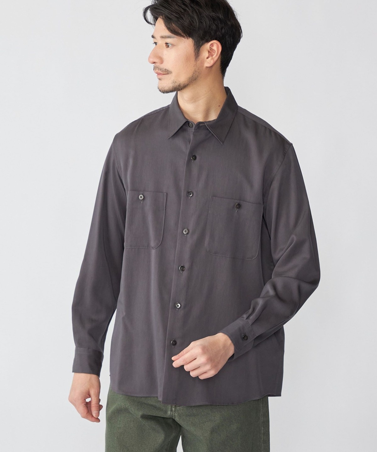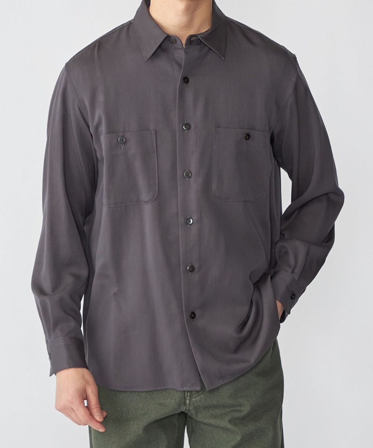 ドレープと光沢が特徴のリヨセルを使用したレギュラーカラーシャツ