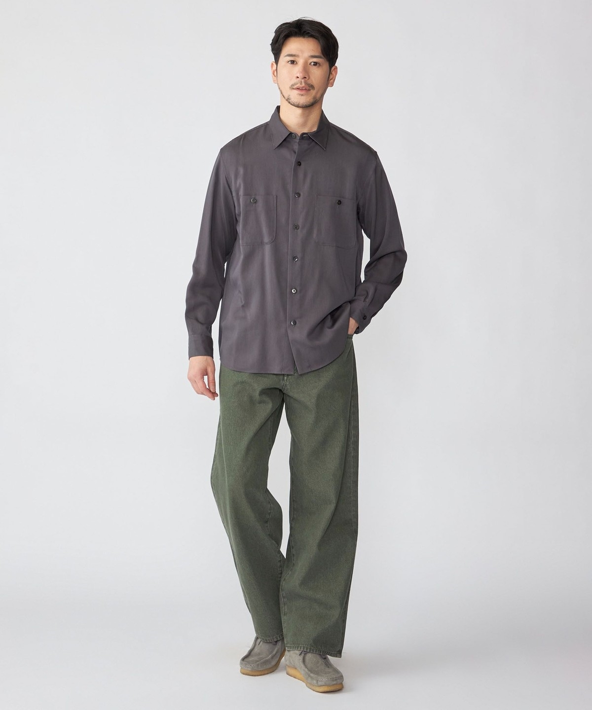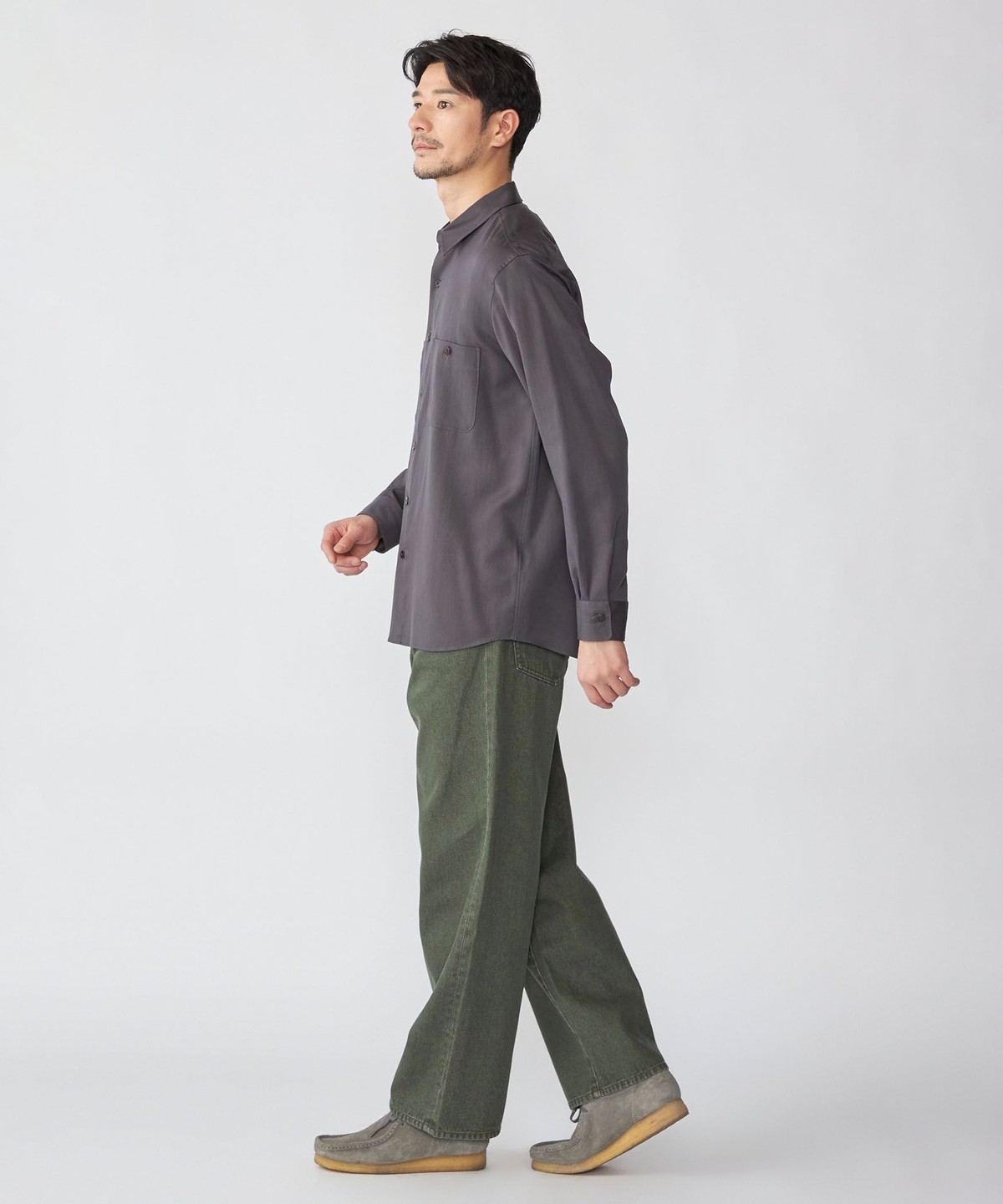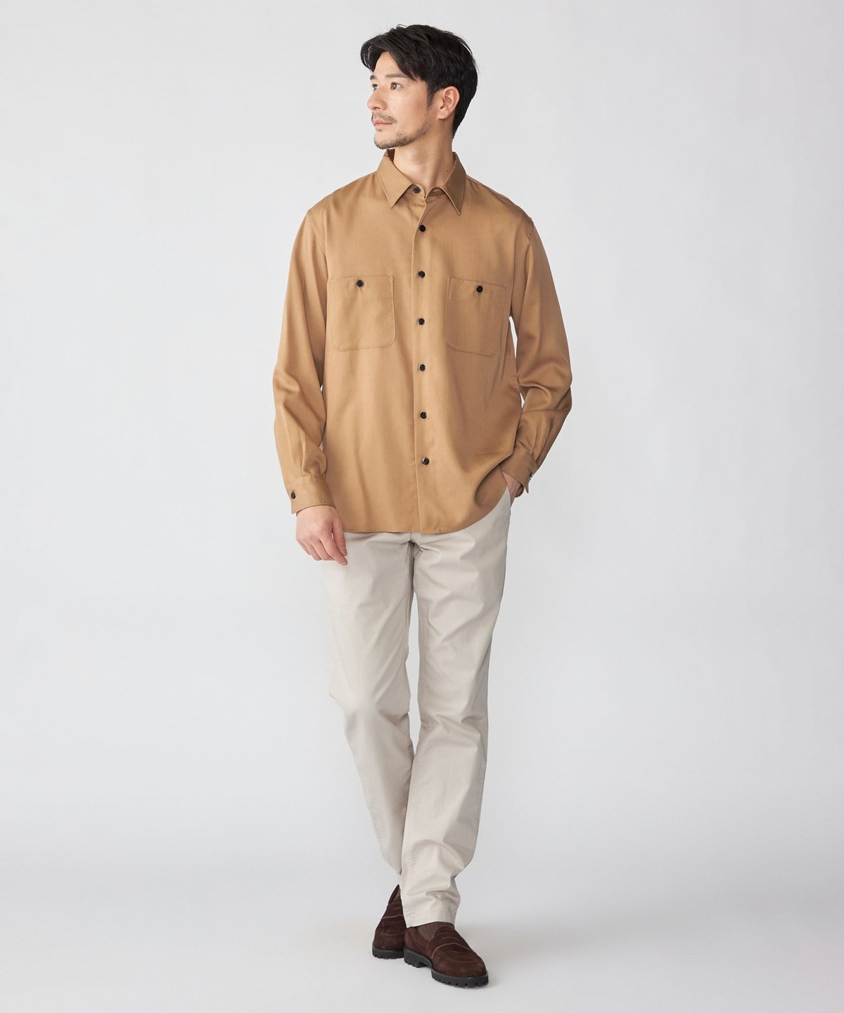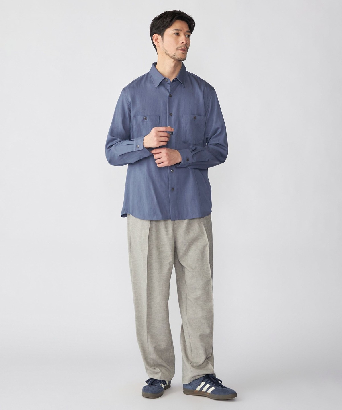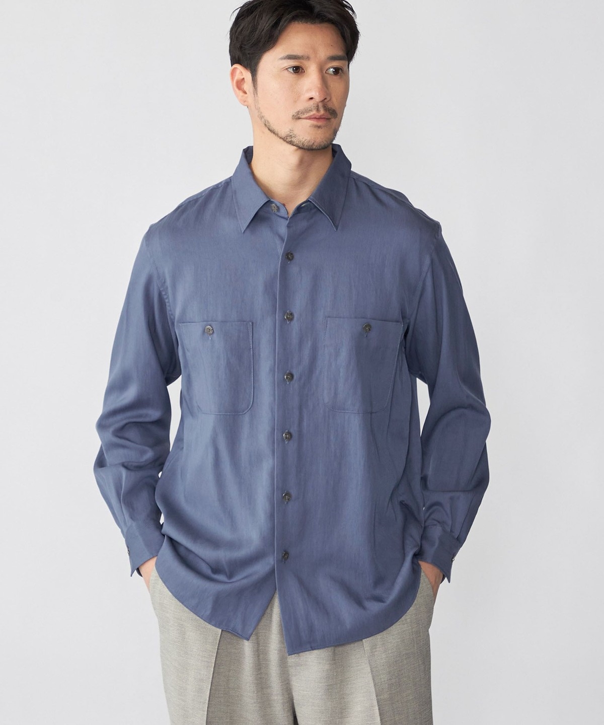 ややリラックス感のあるレギュラーカラーシャツ。