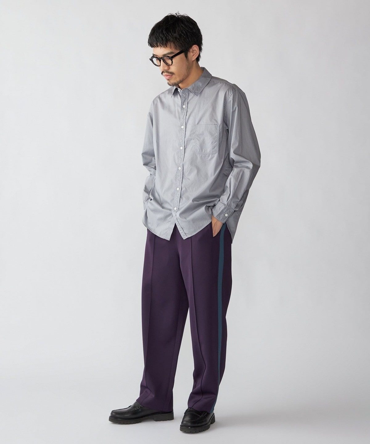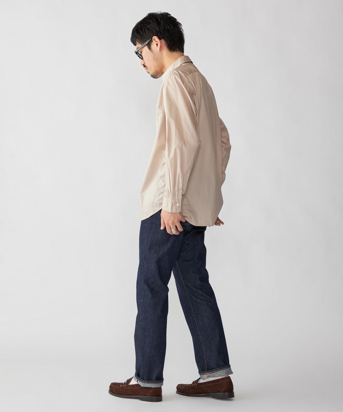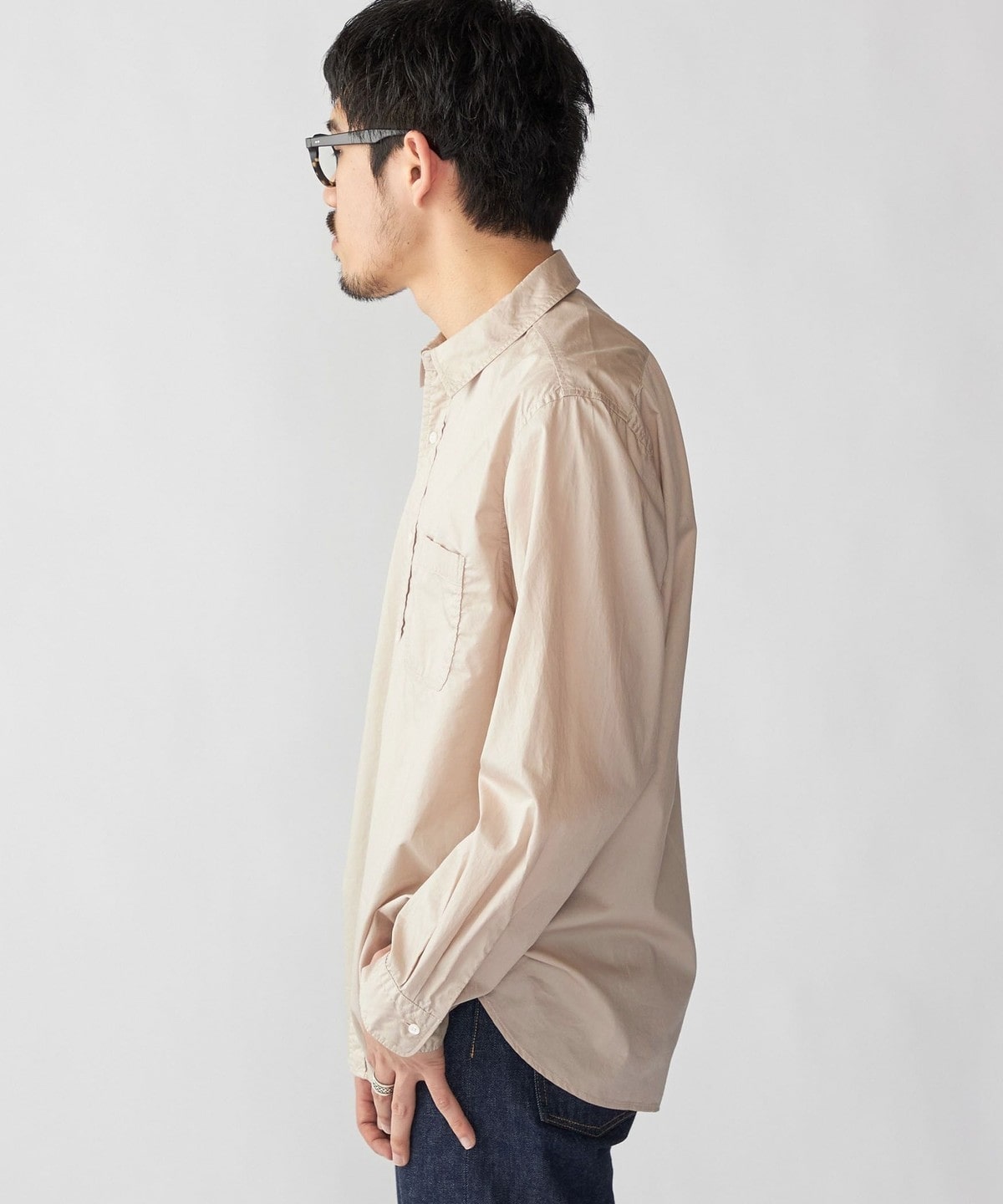フレンチのカバーオールのような衿型のデザインが、羽織りのような雰囲気も出してくれるのでシャツ羽織としても使いやすい1枚。