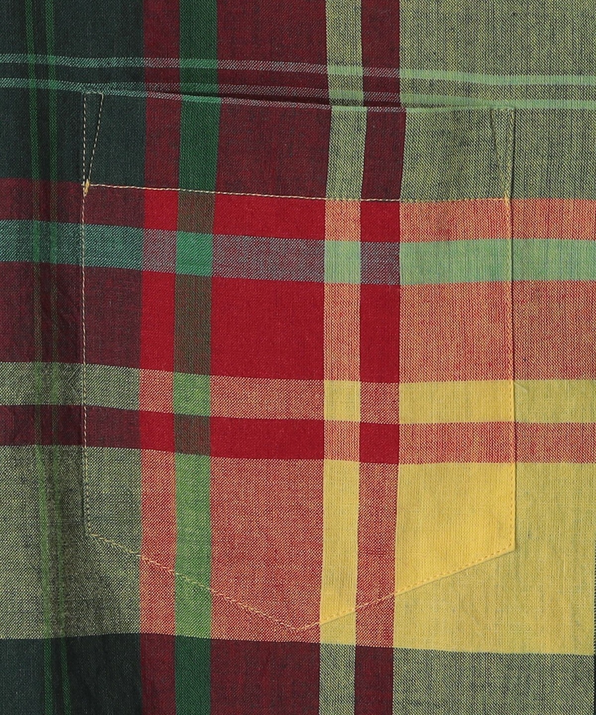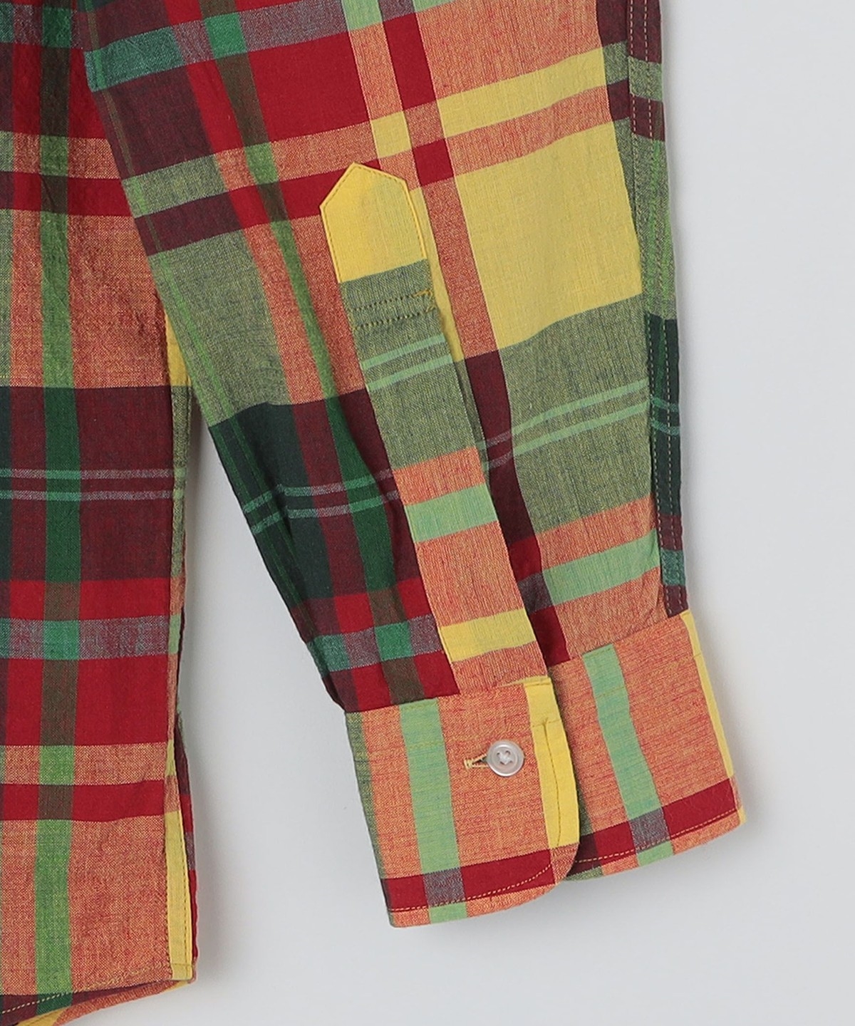 インド南東部のマドラス地区(現チェンナイ)で伝統的な技法で生産されたマドラスチェック生地を使用。