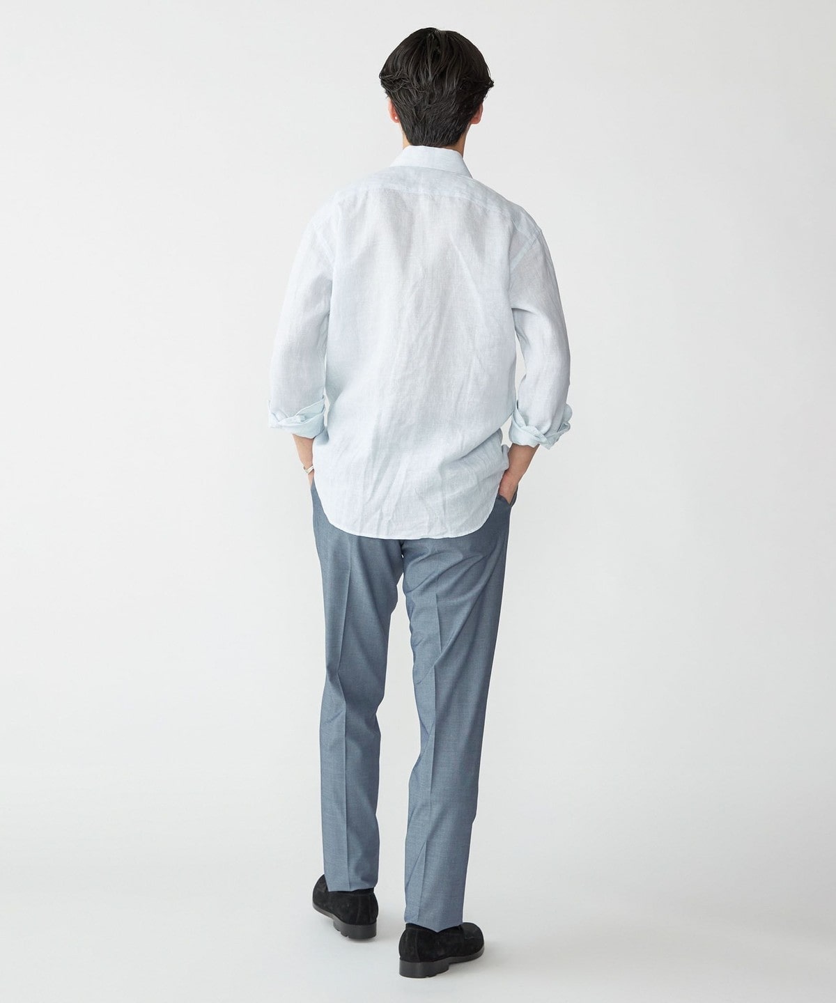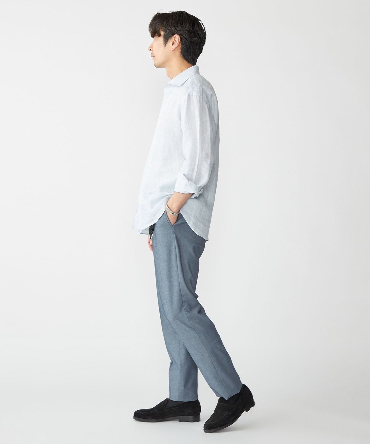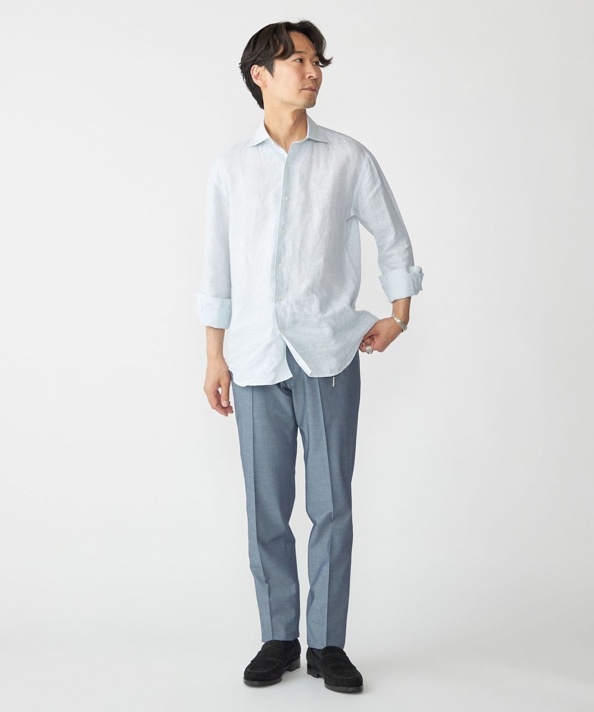 麻素材特有のシワ感もお楽しみいただける夏にぴったりの一着です。