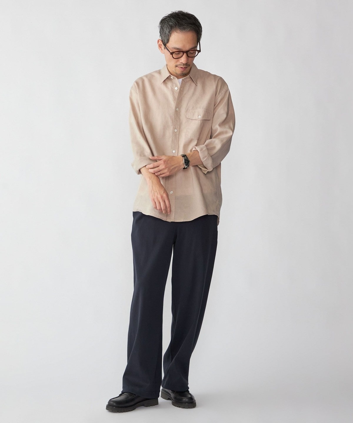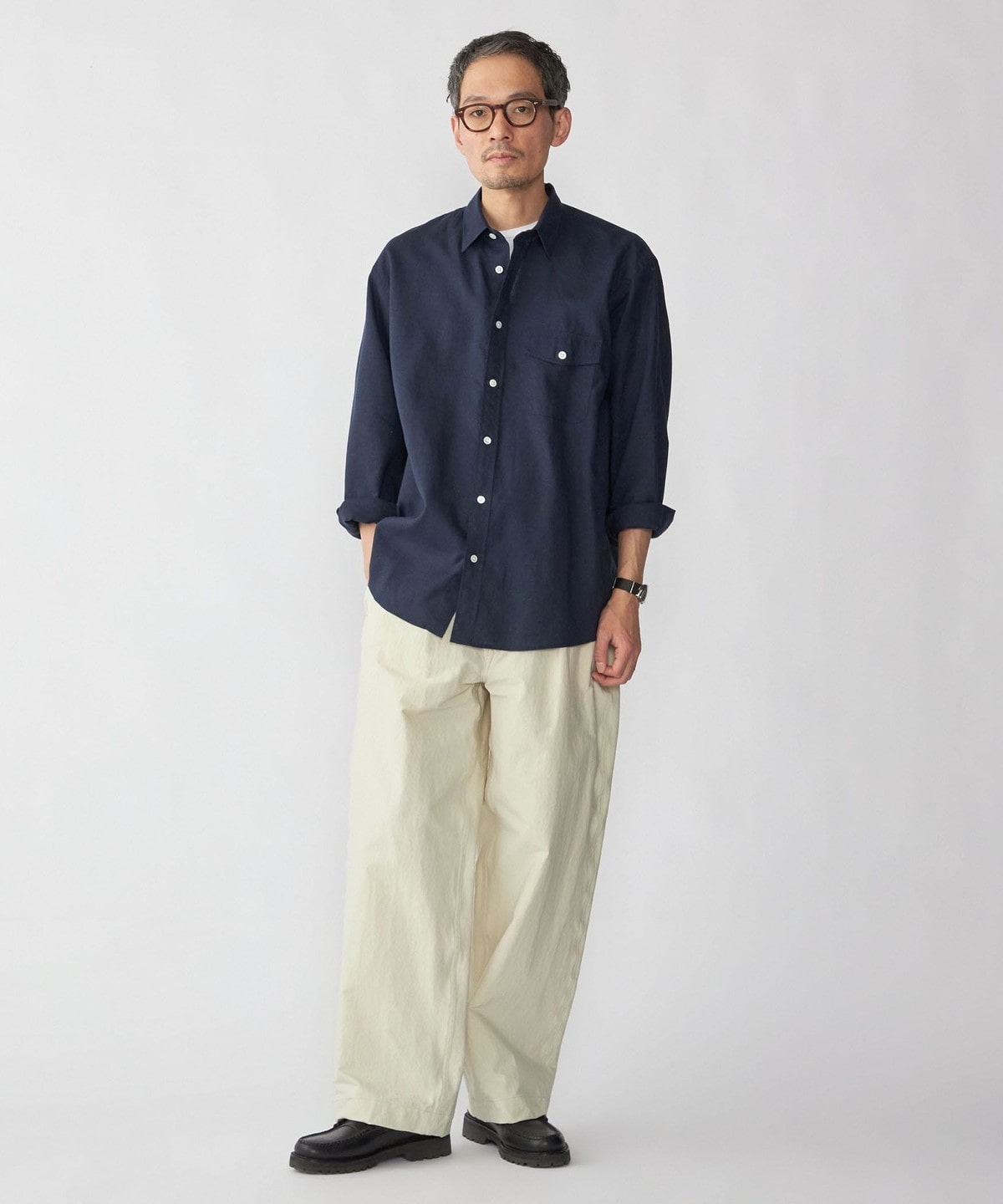 33. SHIPS: リネン オーバー レギュラーカラー シャツ