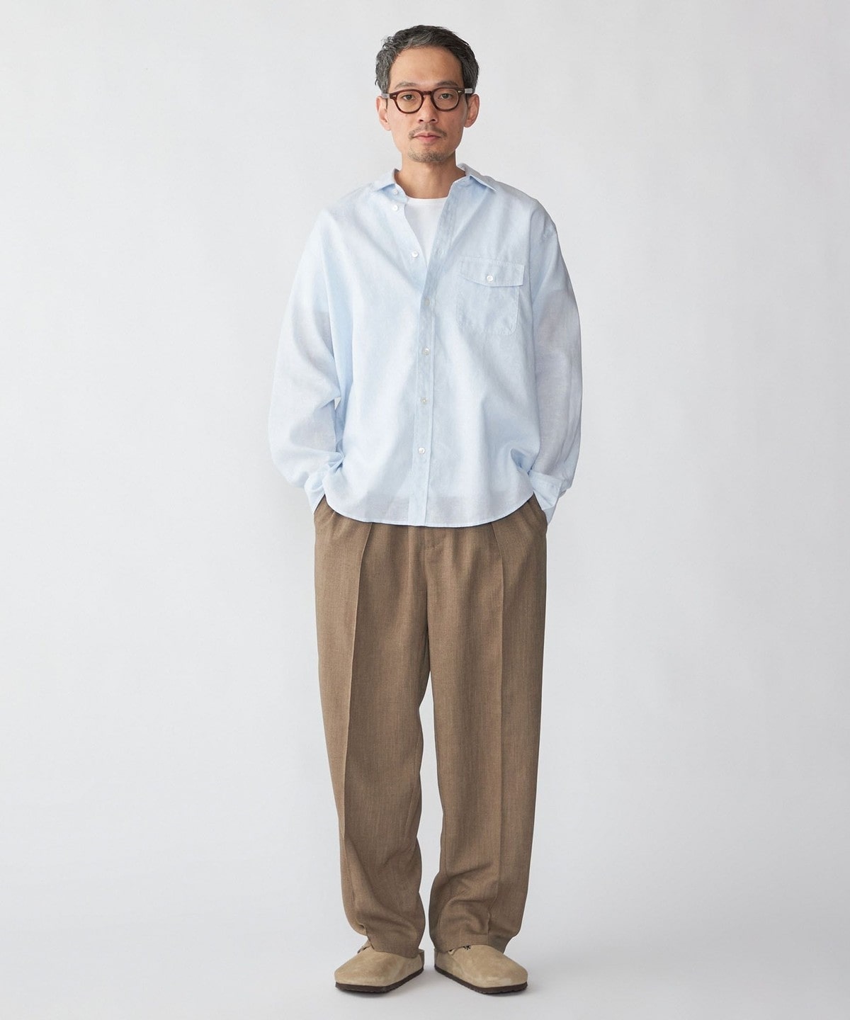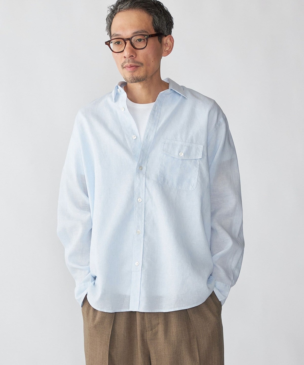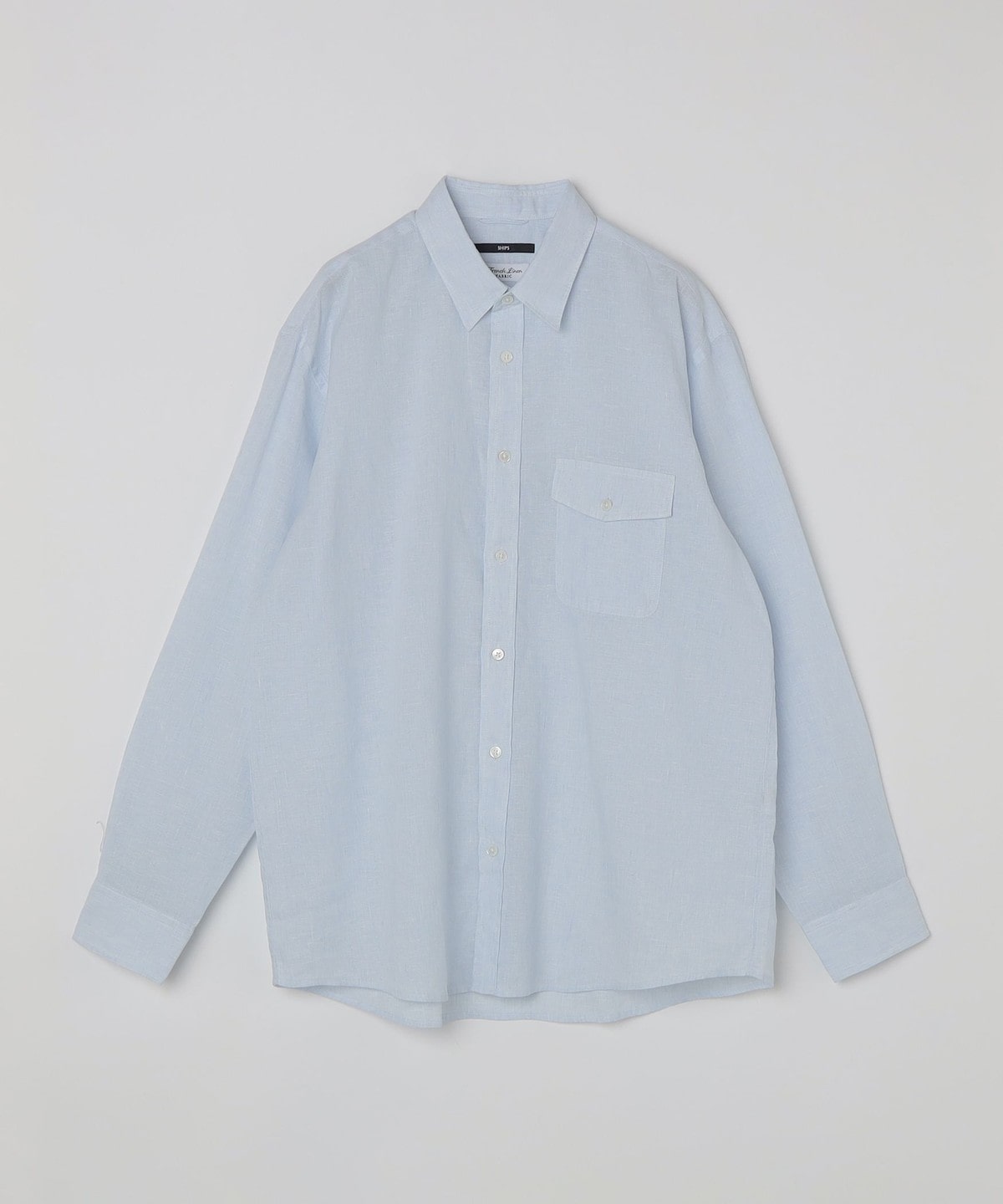 4. SHIPS: リネン オーバー レギュラーカラー シャツ ライトブルー