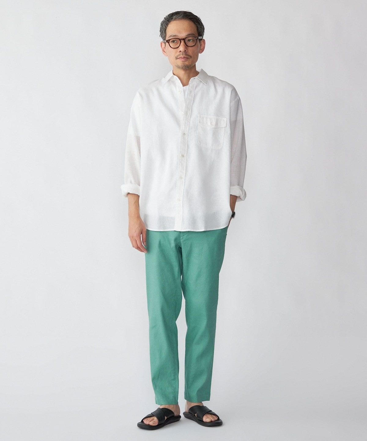 3. SHIPS: リネン オーバー レギュラーカラー シャツ ミント
