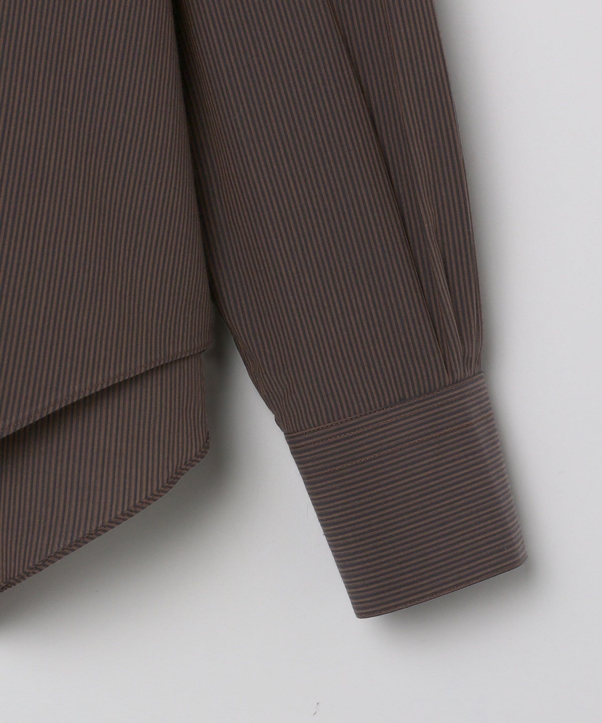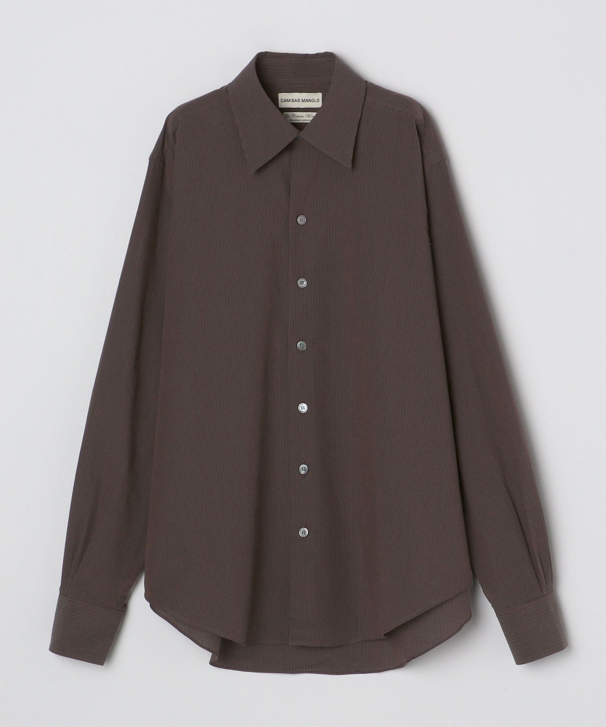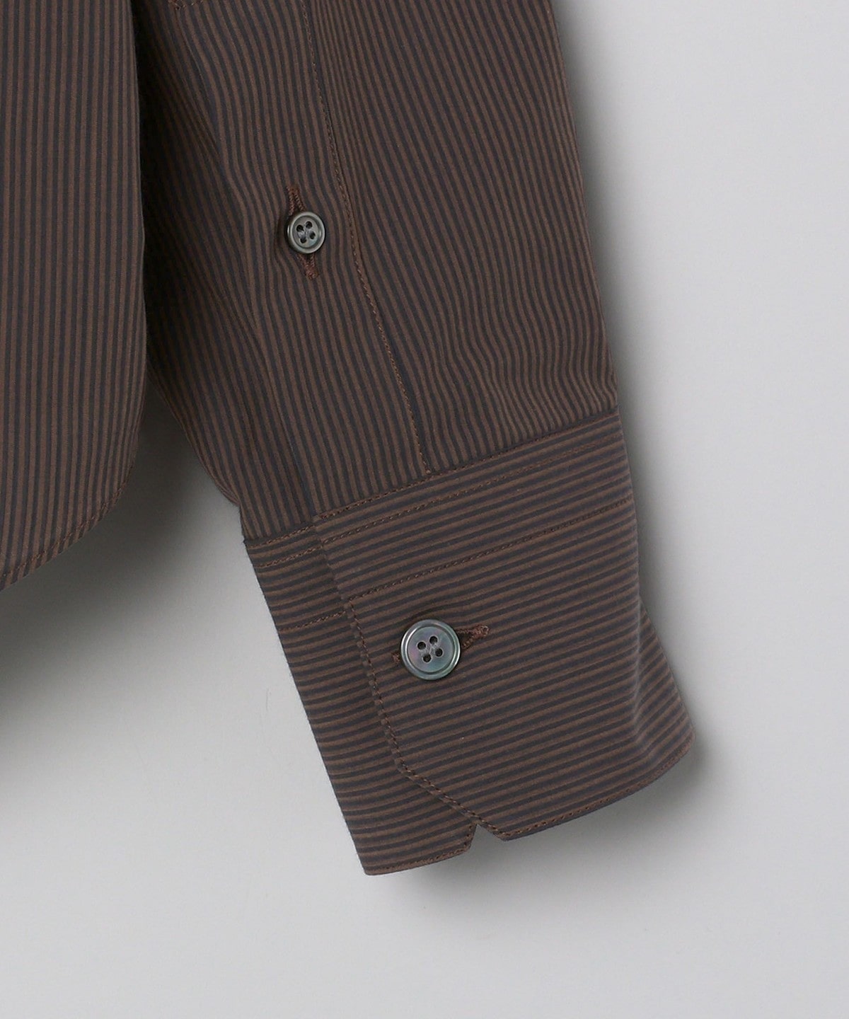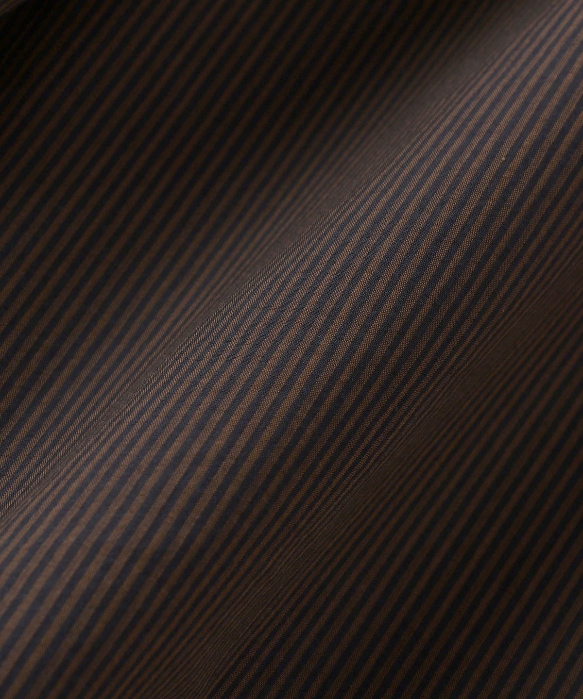 ブラウン地に細かいストライプで現代的なサイジングに落とし込み、ドレスシャツをカジュアルに着用出来るイメージとなっております。