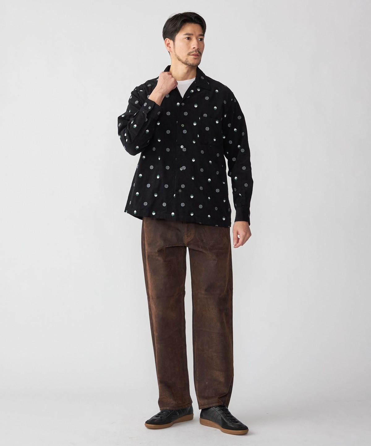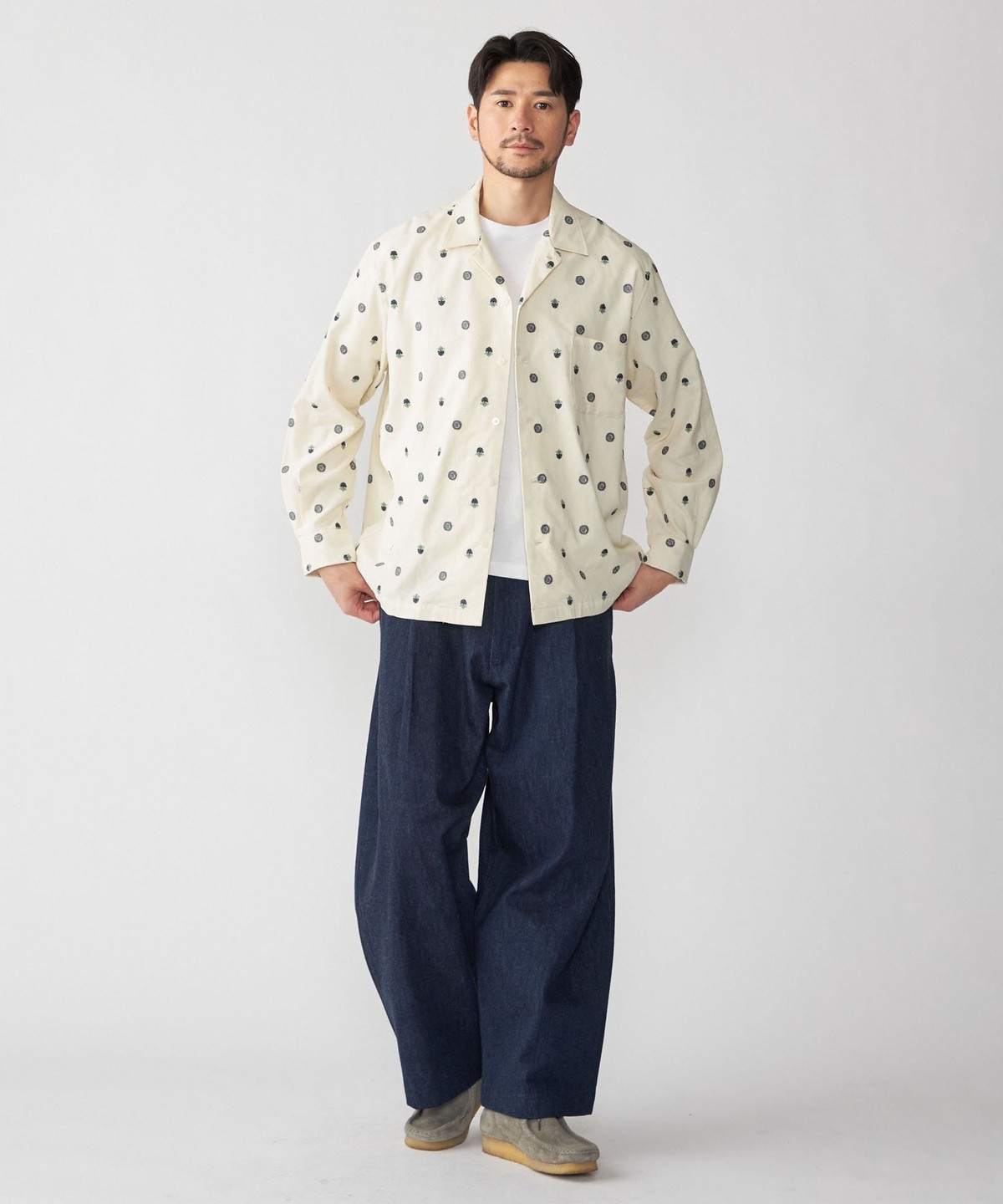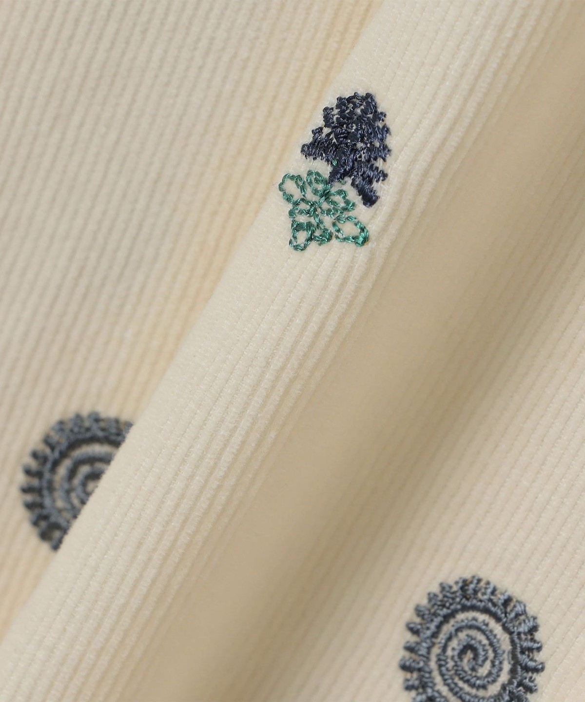 畝が非常に細いコットンコーデュロイ生地に刺繍を施した一枚。