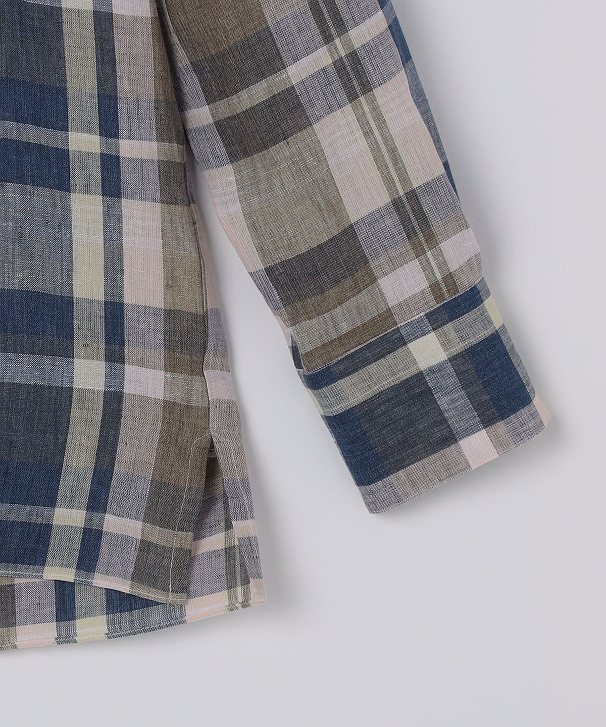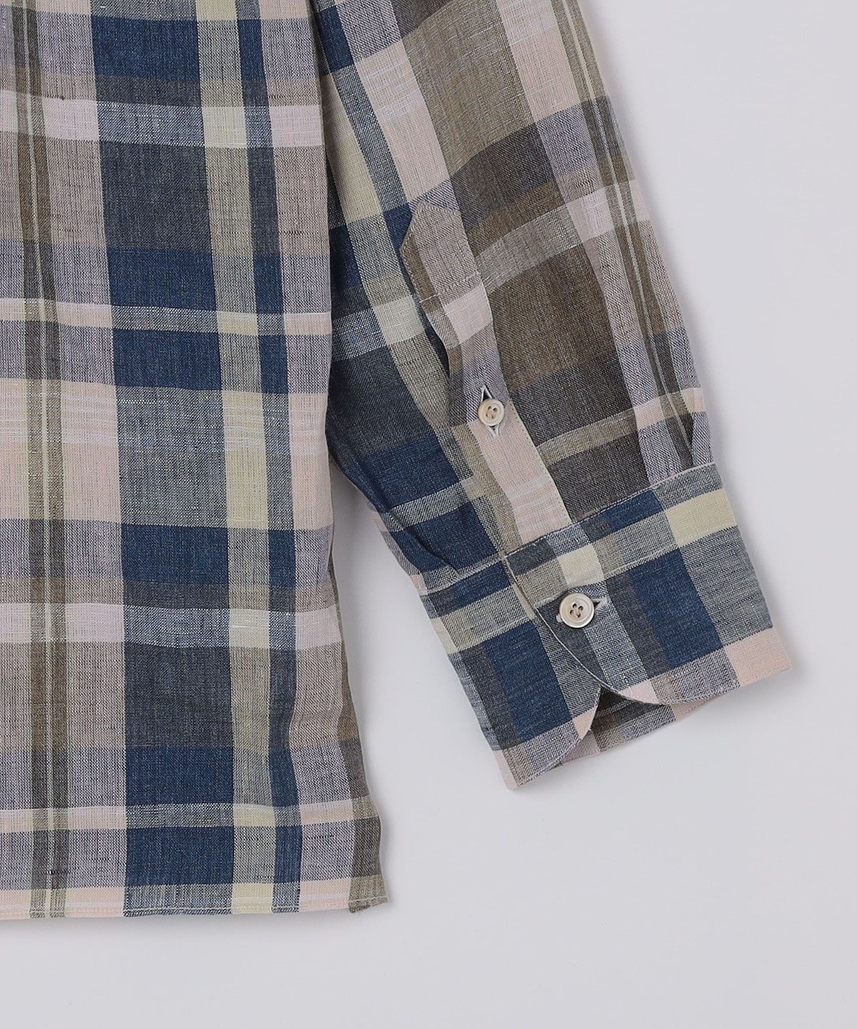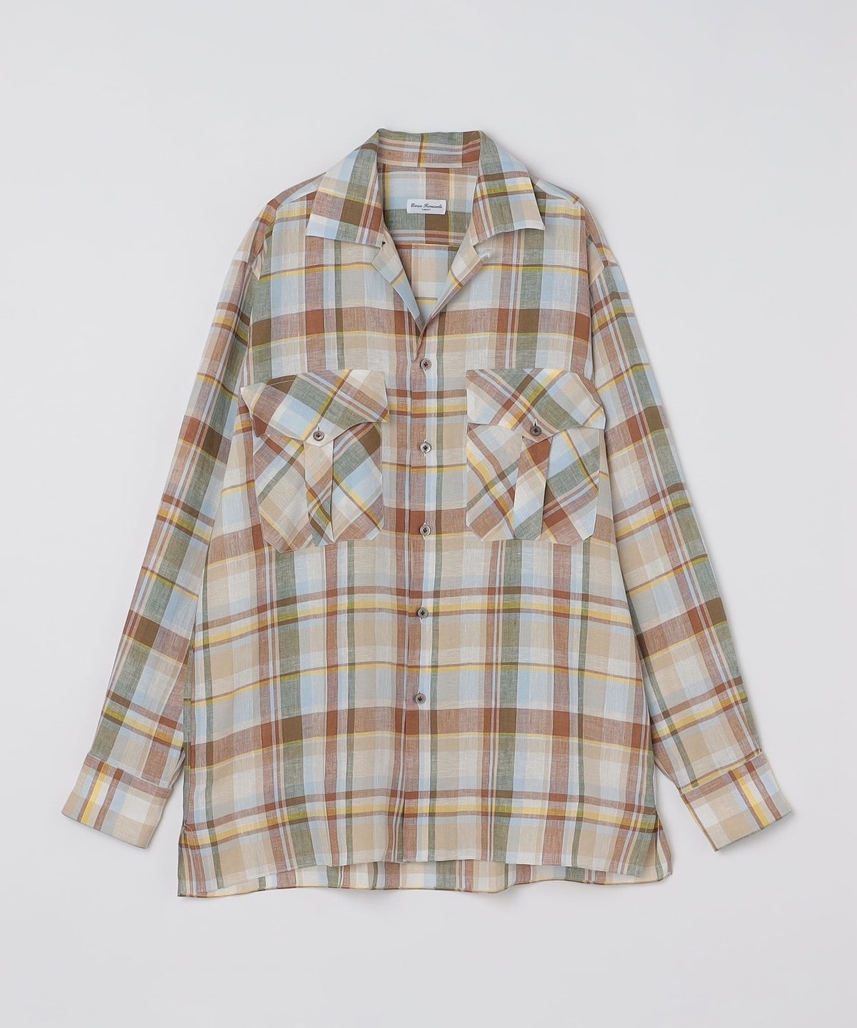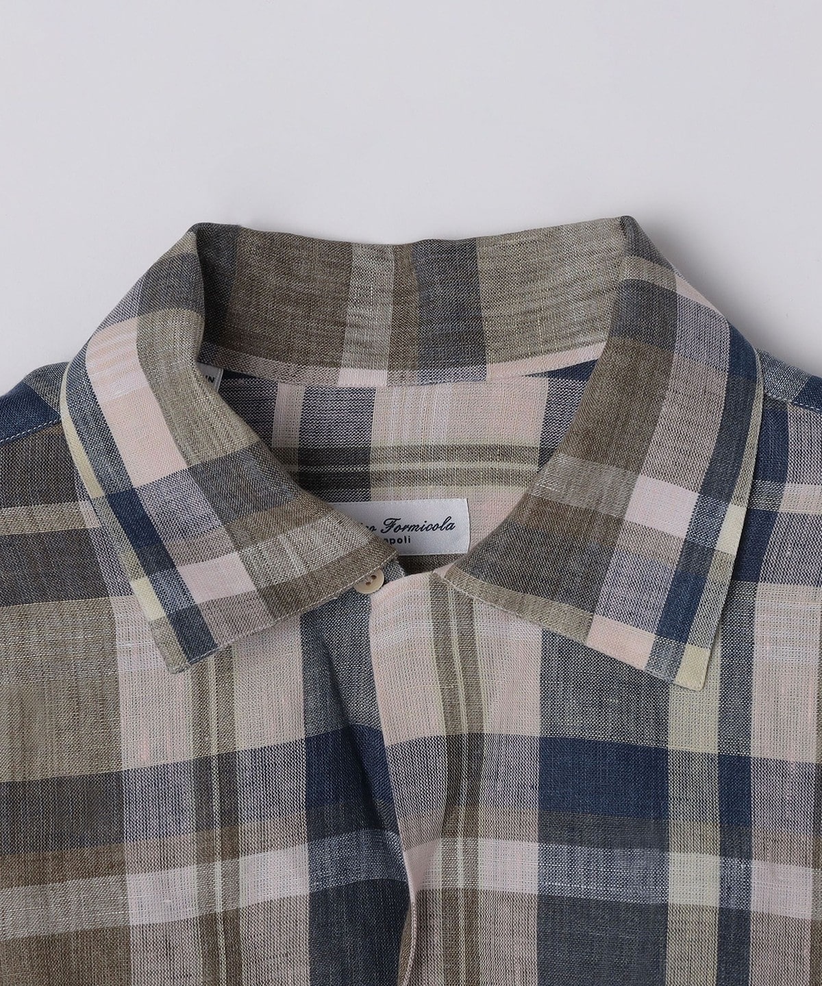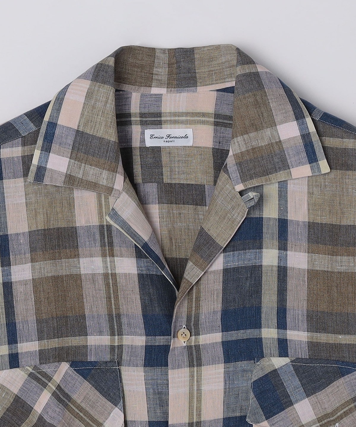 Errico Formicola オープンカラー リネン マドラスチェック シャツ