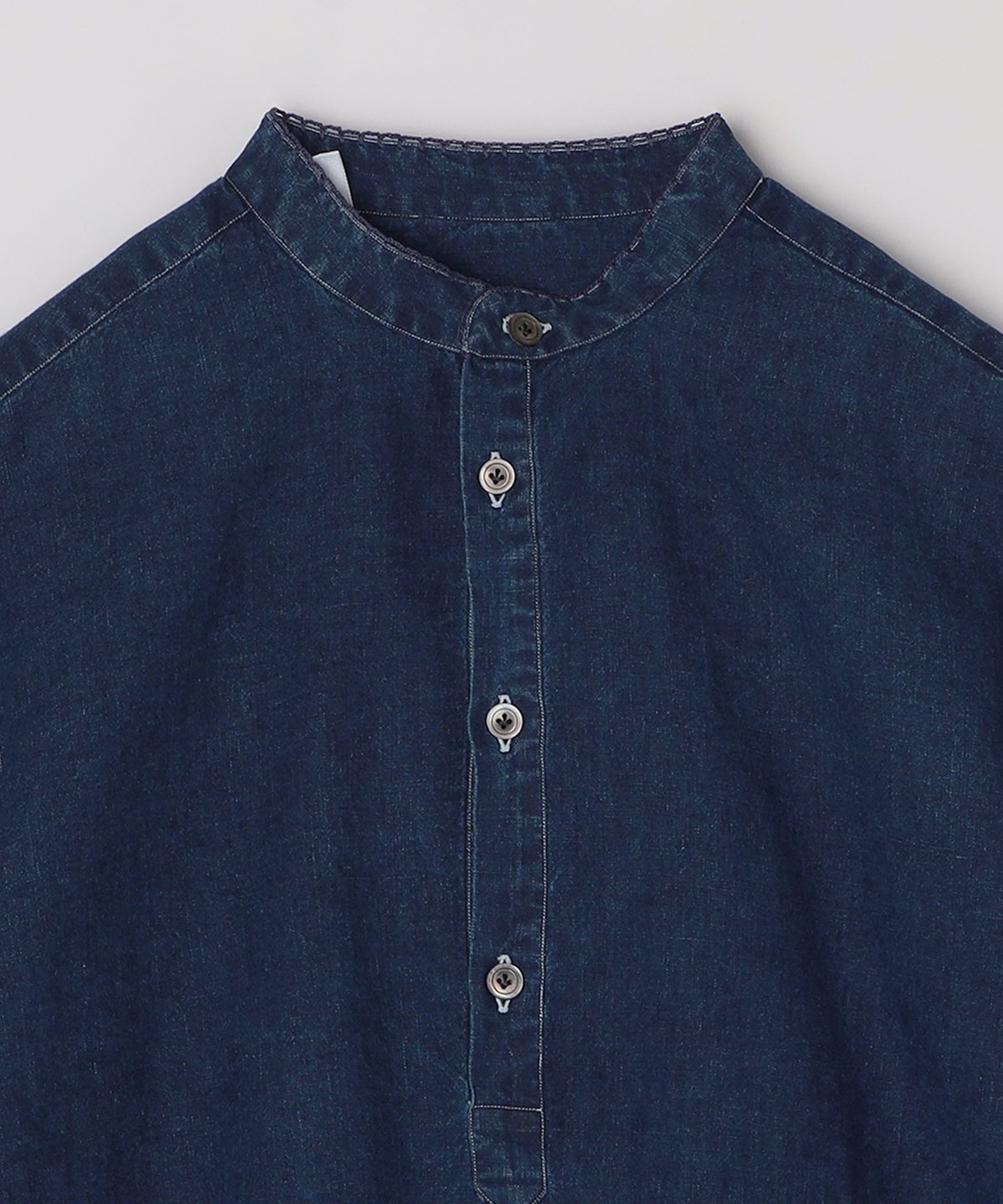 Errico Formicola: リネン/コットン デニム バンドカラー シャツ