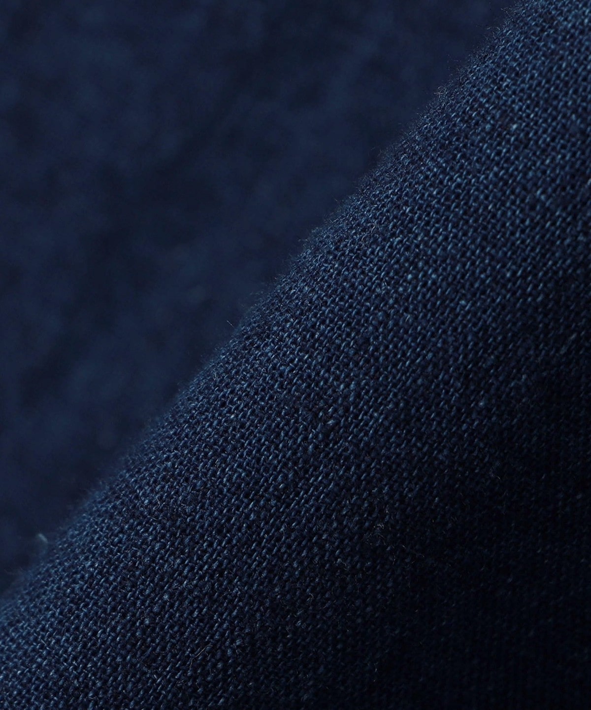 コットン混紡のリネン素材はコットン100%生地に比べ吸水性、速乾性、耐久性に優れ、汗や湿気をすぐに吸収し放出する性質を持ち合わせているため、快適に着用いただけます。