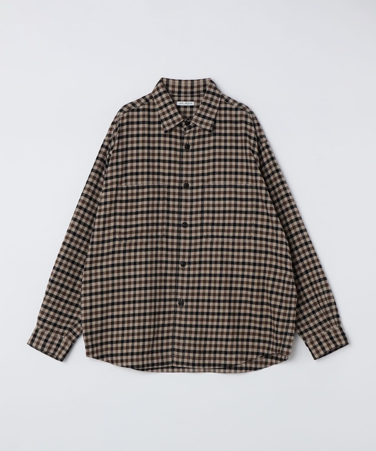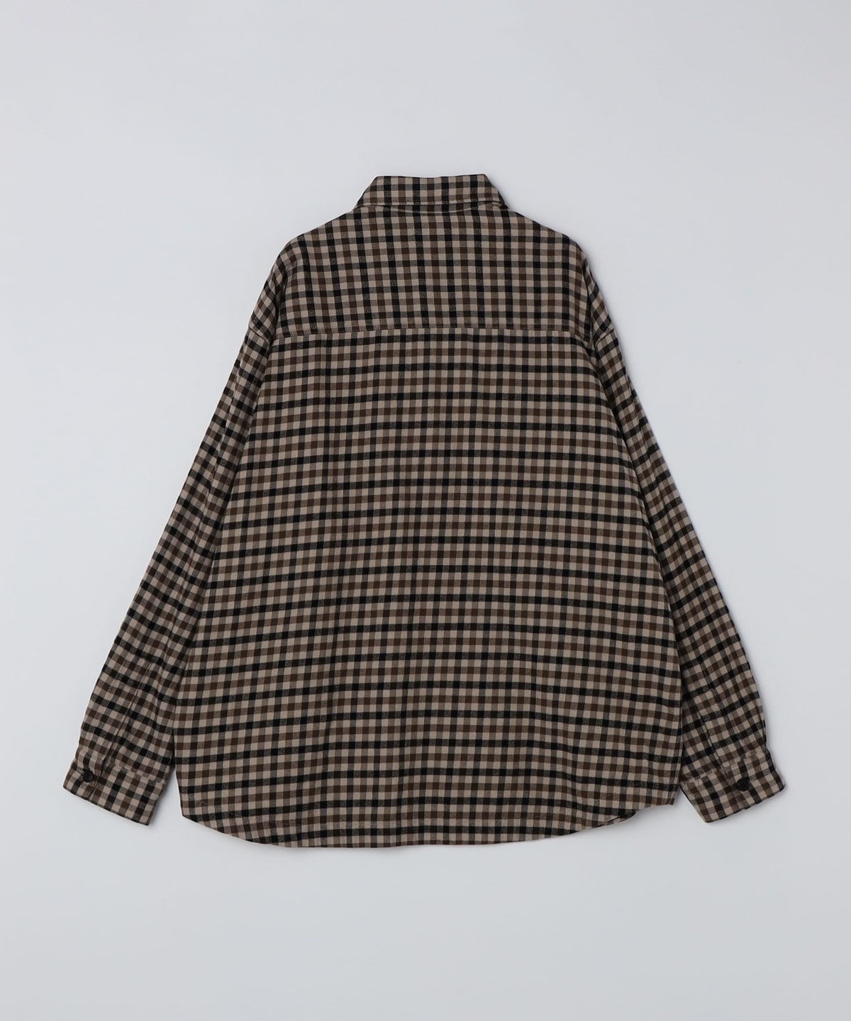 ベーシックなレギュラーカラーで、身幅がやや広めに設計されたルーズシルエット。