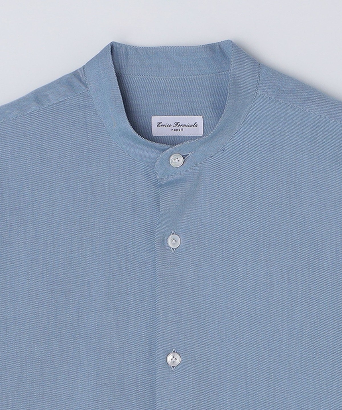 Errico Formicolaのコットンツイル生地 バンドカラー シャツ