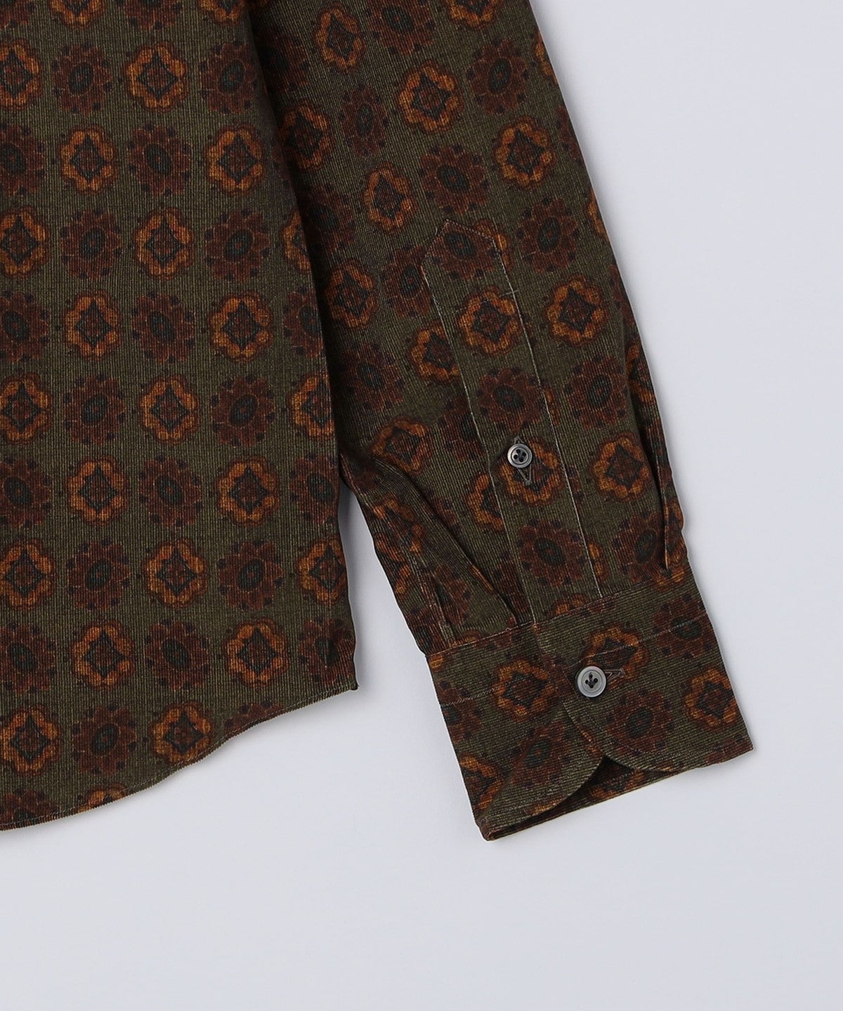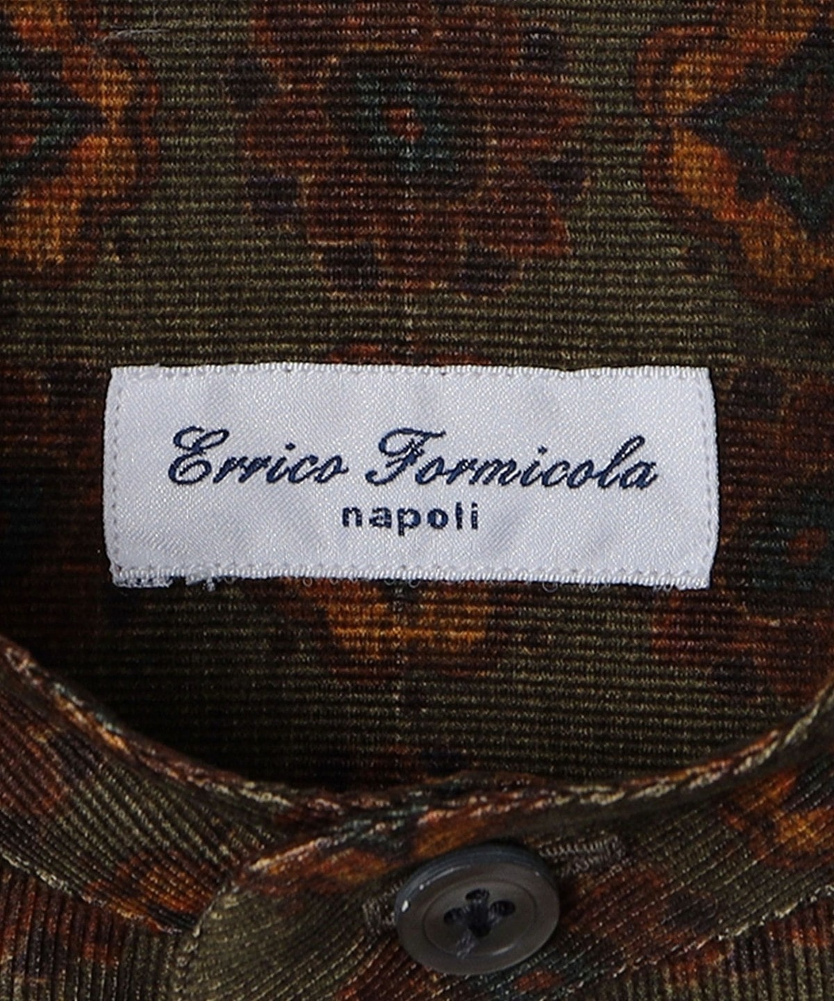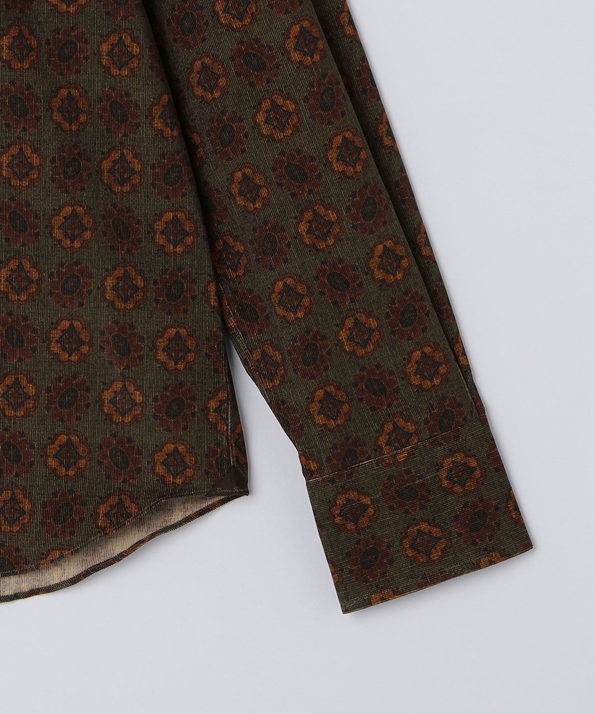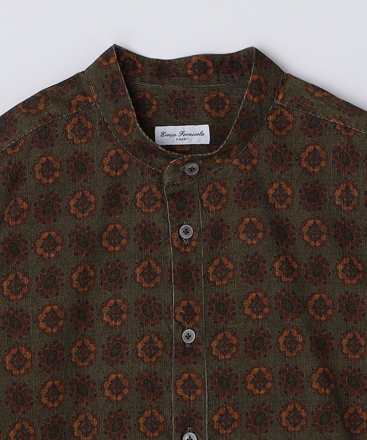 Errico Formicola: フラワープリント コーデュロイ バンドカラー プルオーバーシャツ
