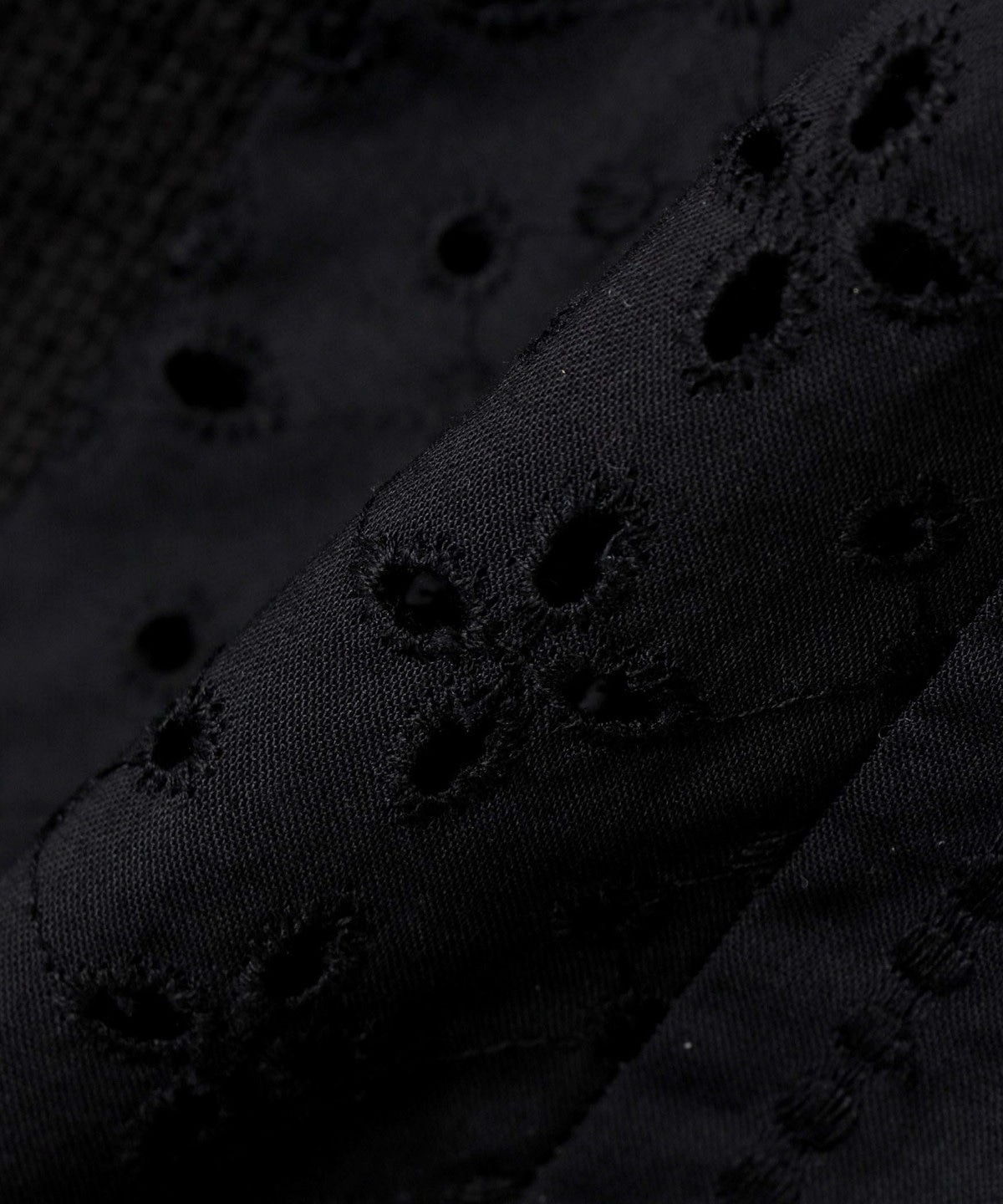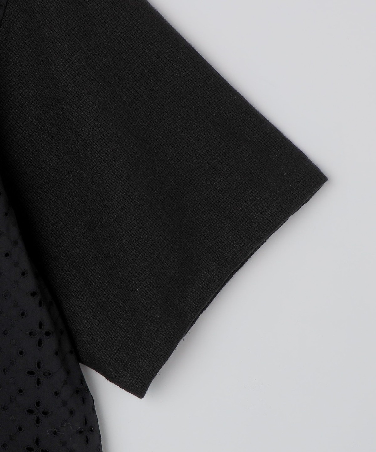 異なる素材やレースパネルを組み合わせることで、シンプルな色合いながらも奥行きがあり表情のある一枚に。