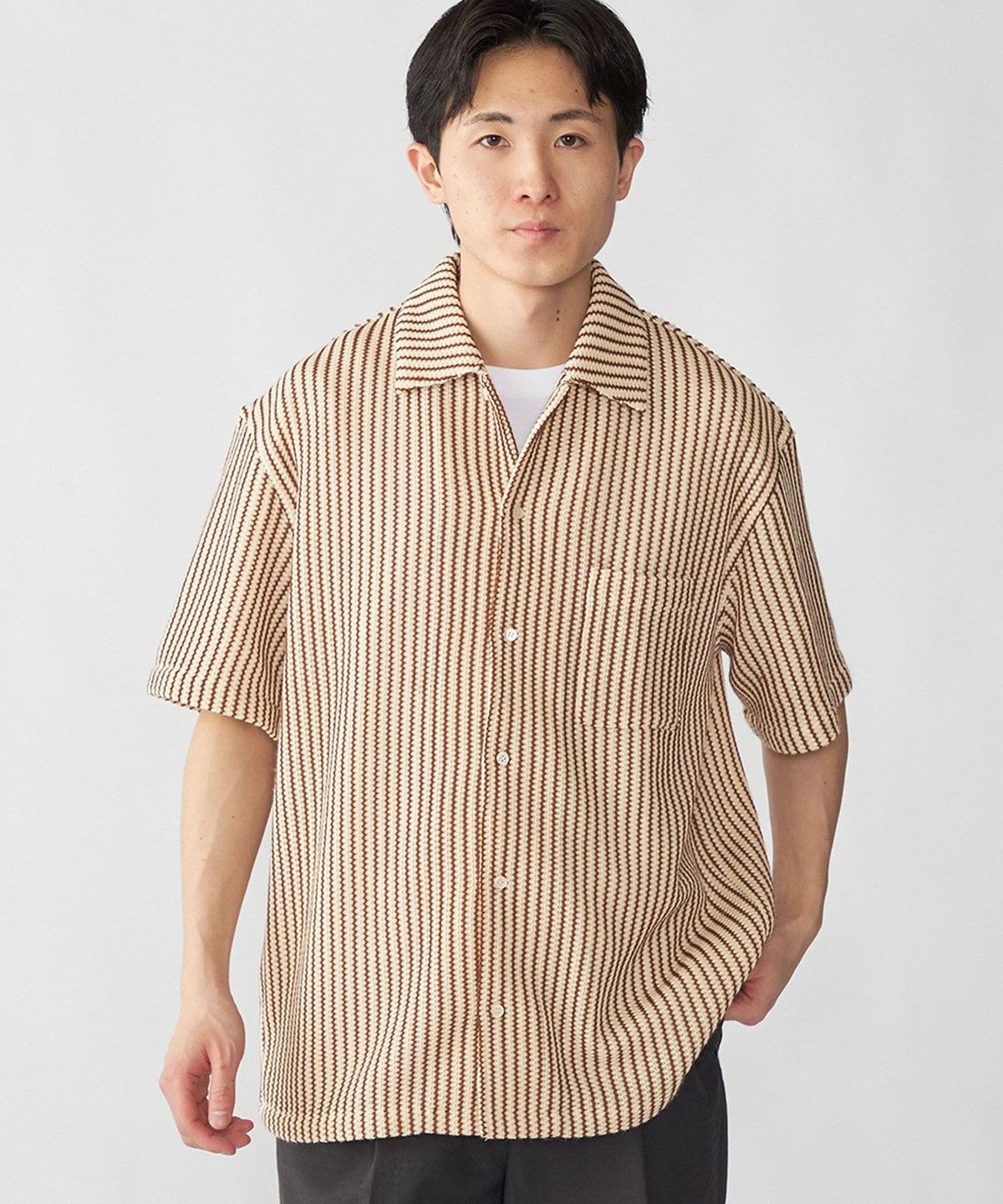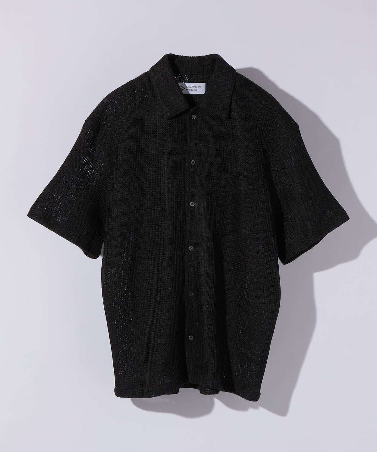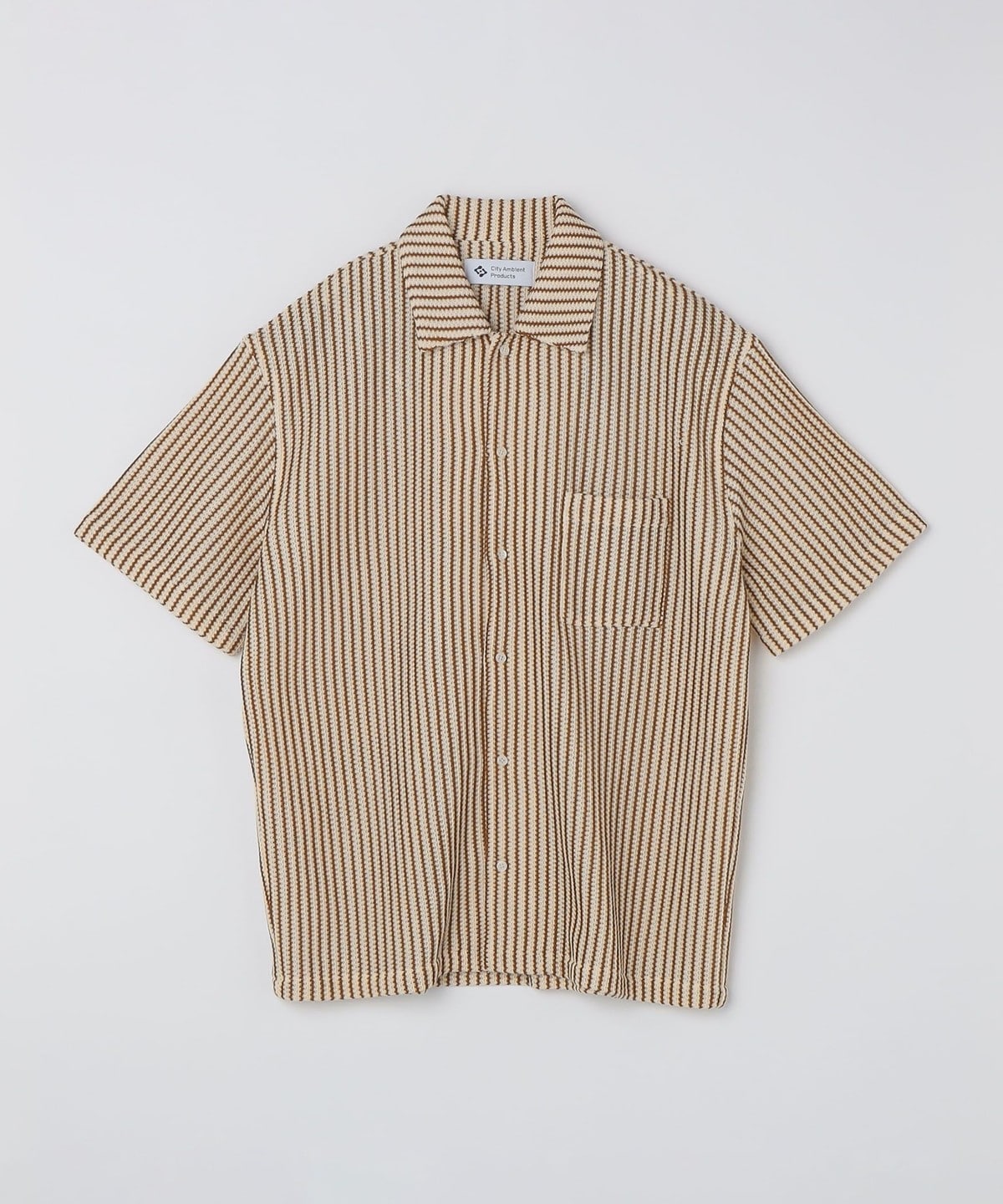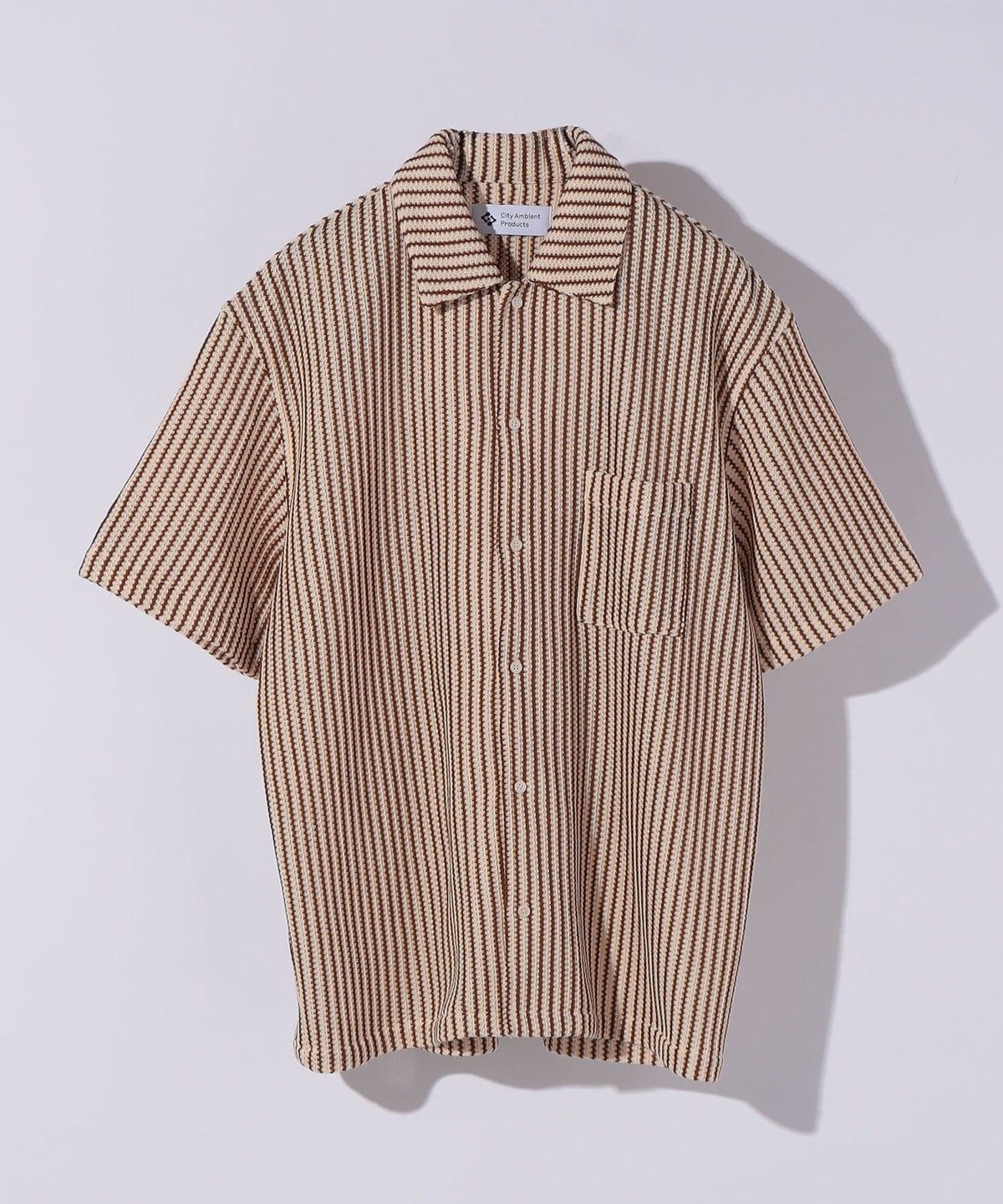 City Ambient Products: オープンカラー メッシュ ストライプ ショートスリーブ シャツ