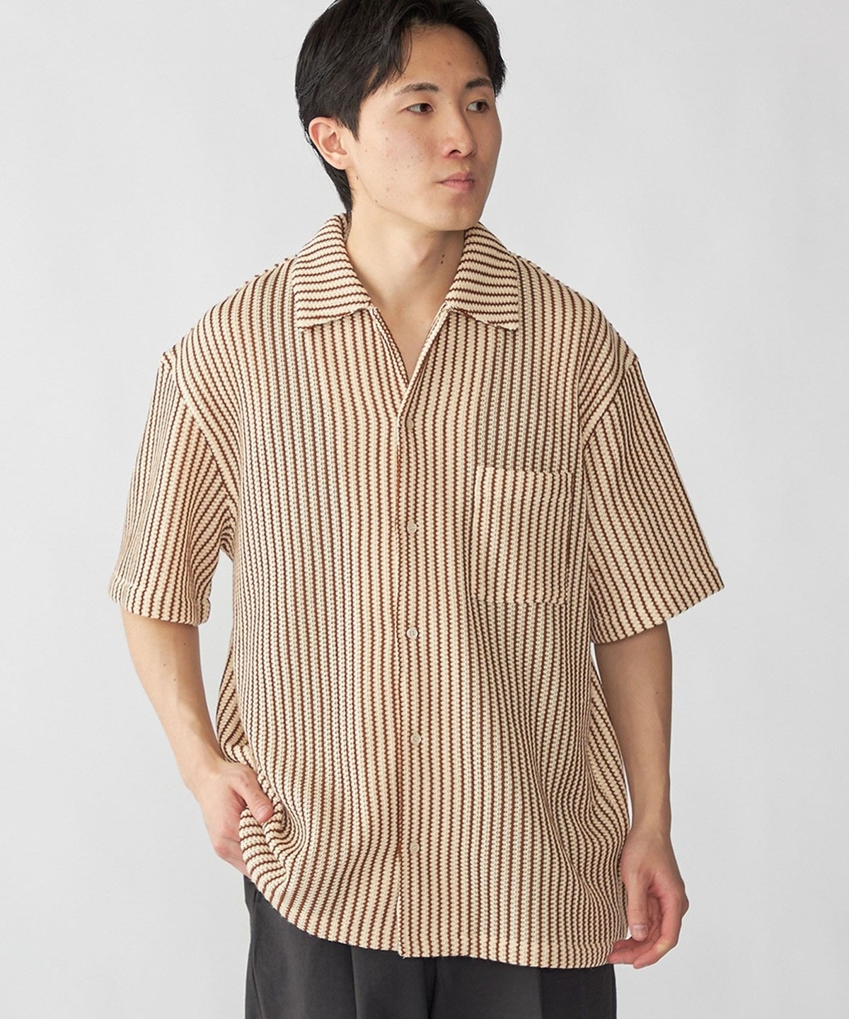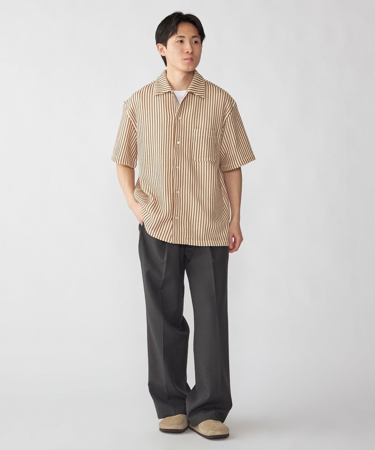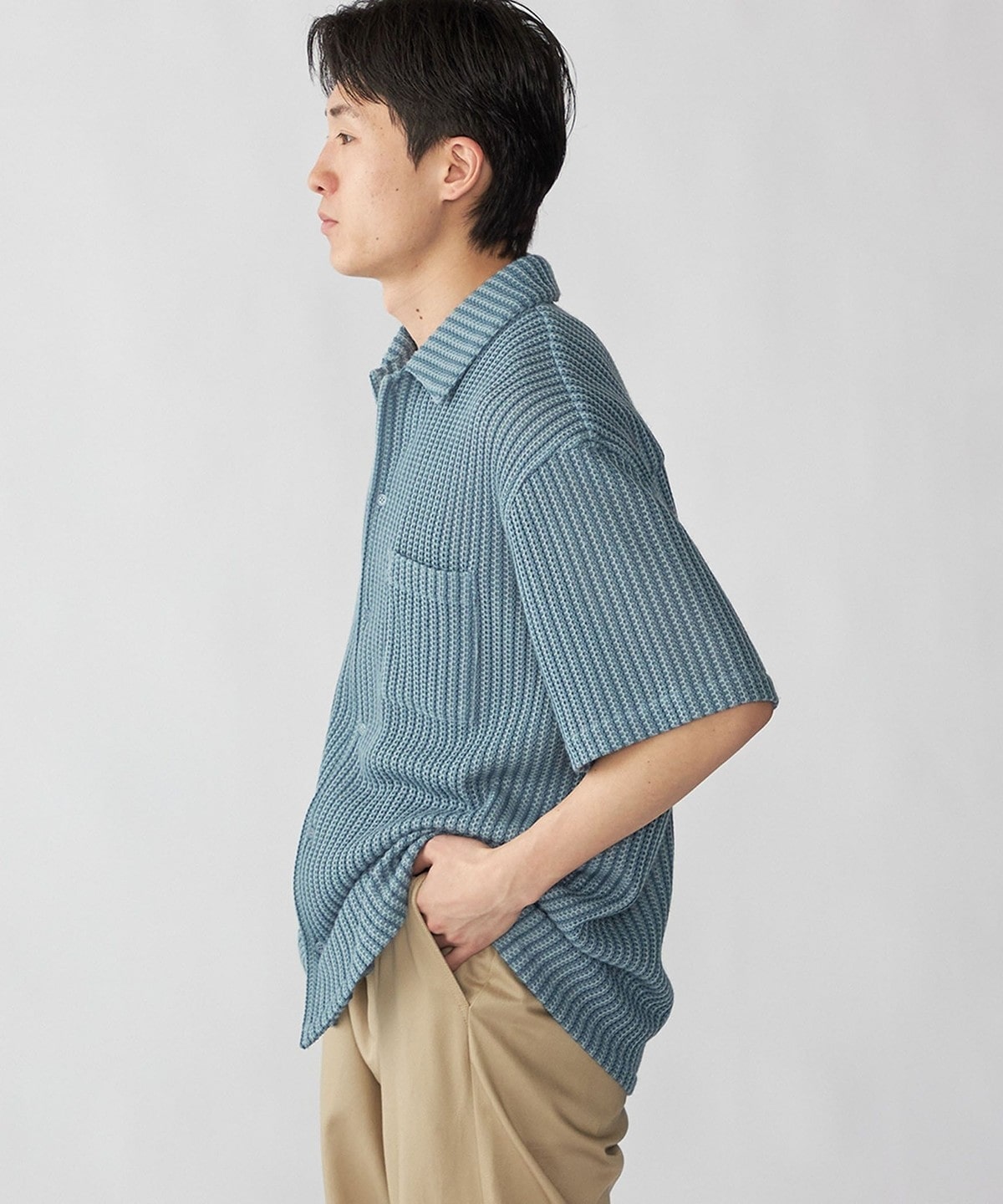 表面感があるため、暑い時期でもさらっと着用いただけます。