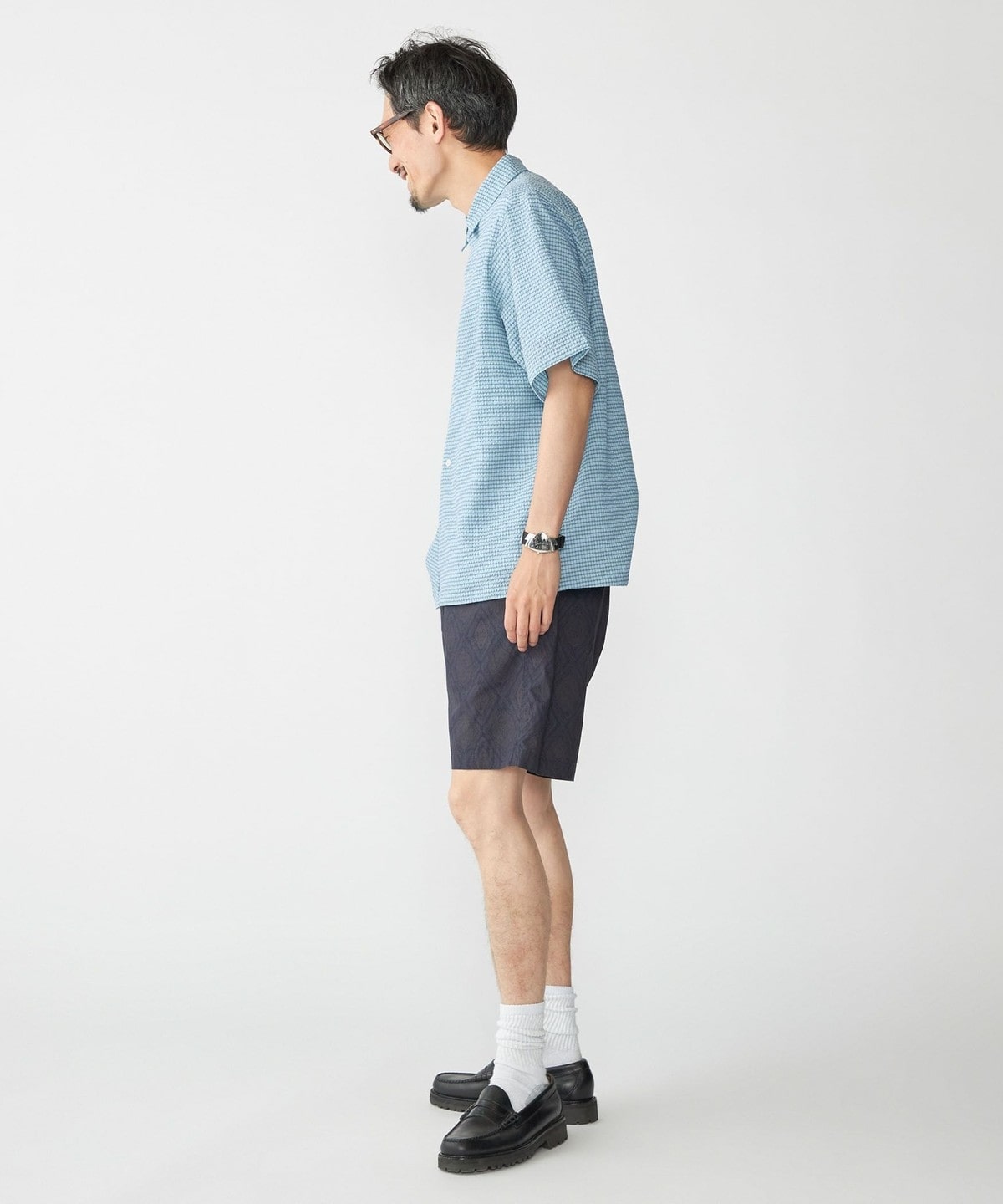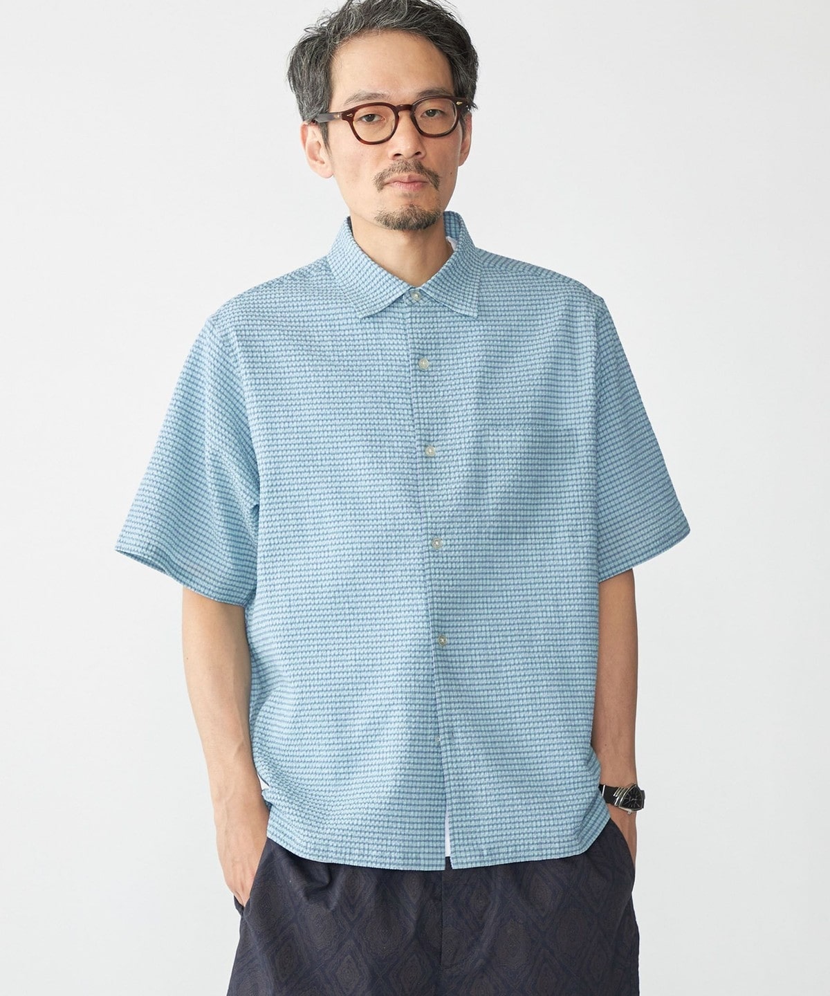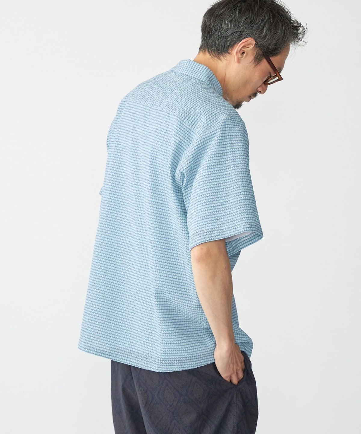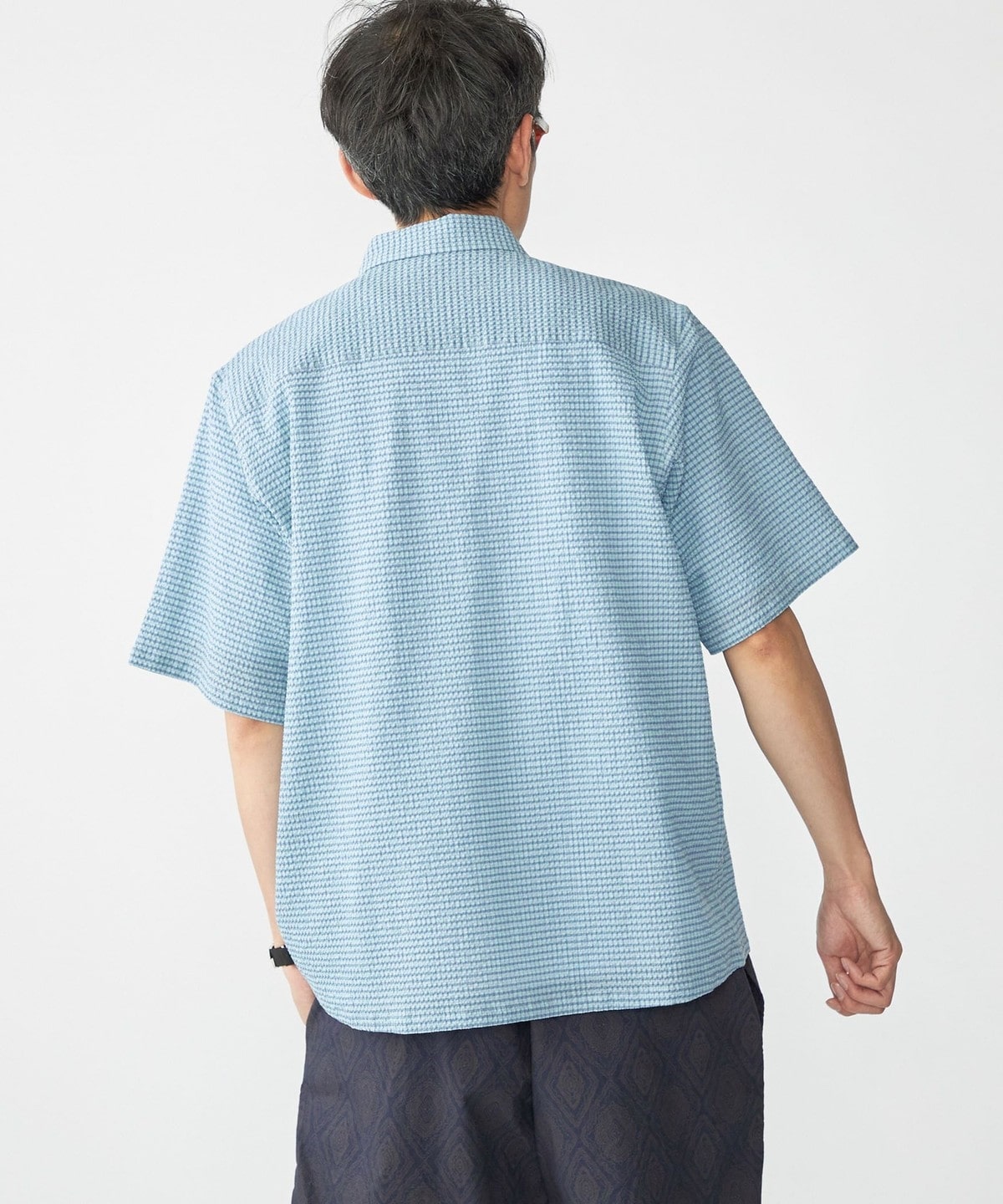 【スタイリング】清涼感のあるシャツなのでパンツはリネンやショーツ等の夏らしいアイテムがオススメ。