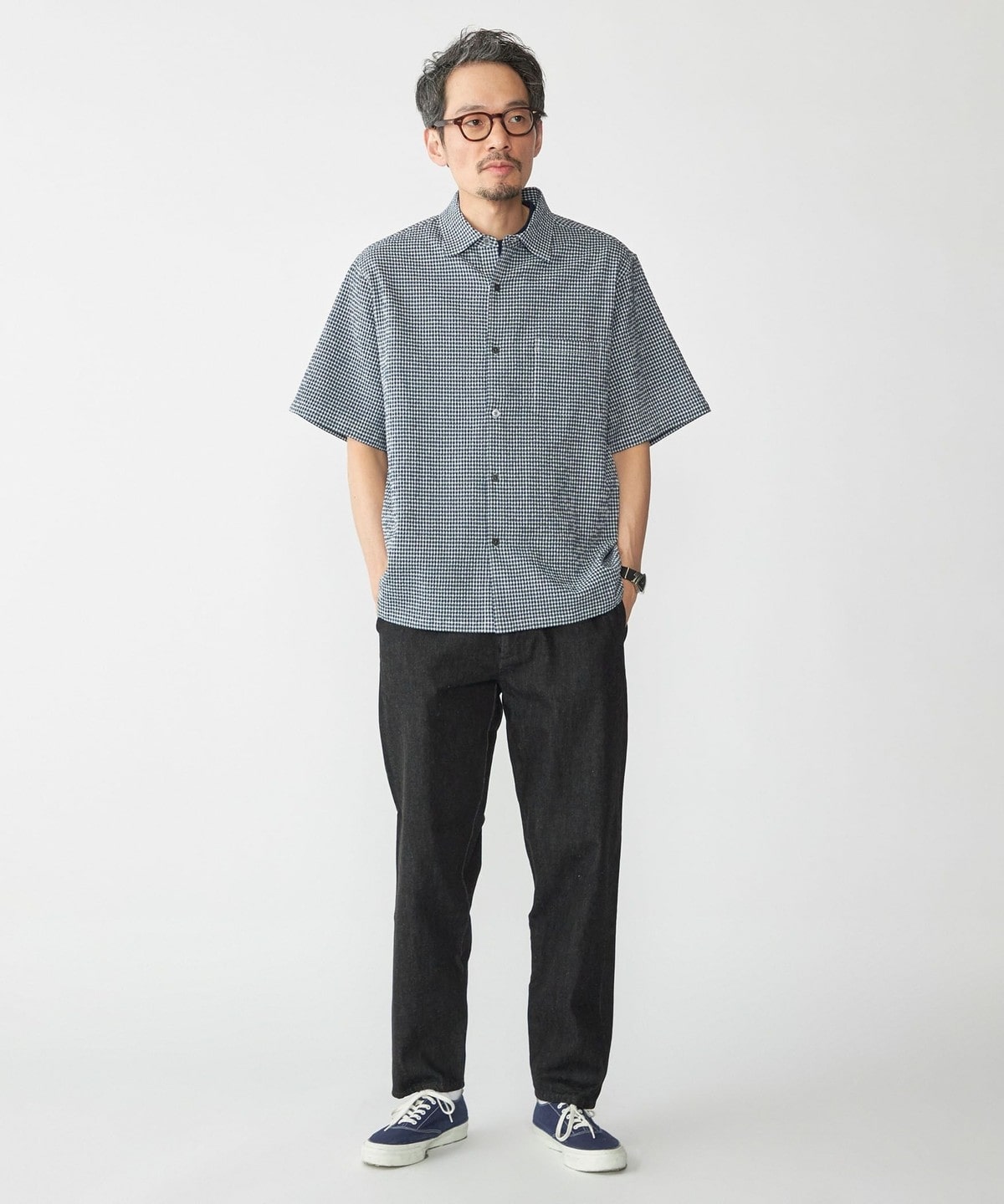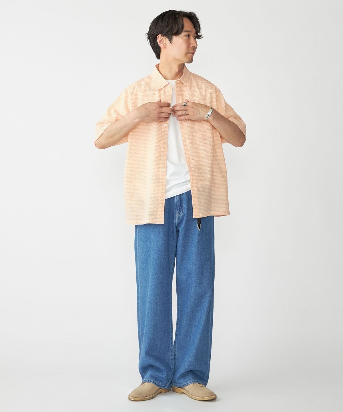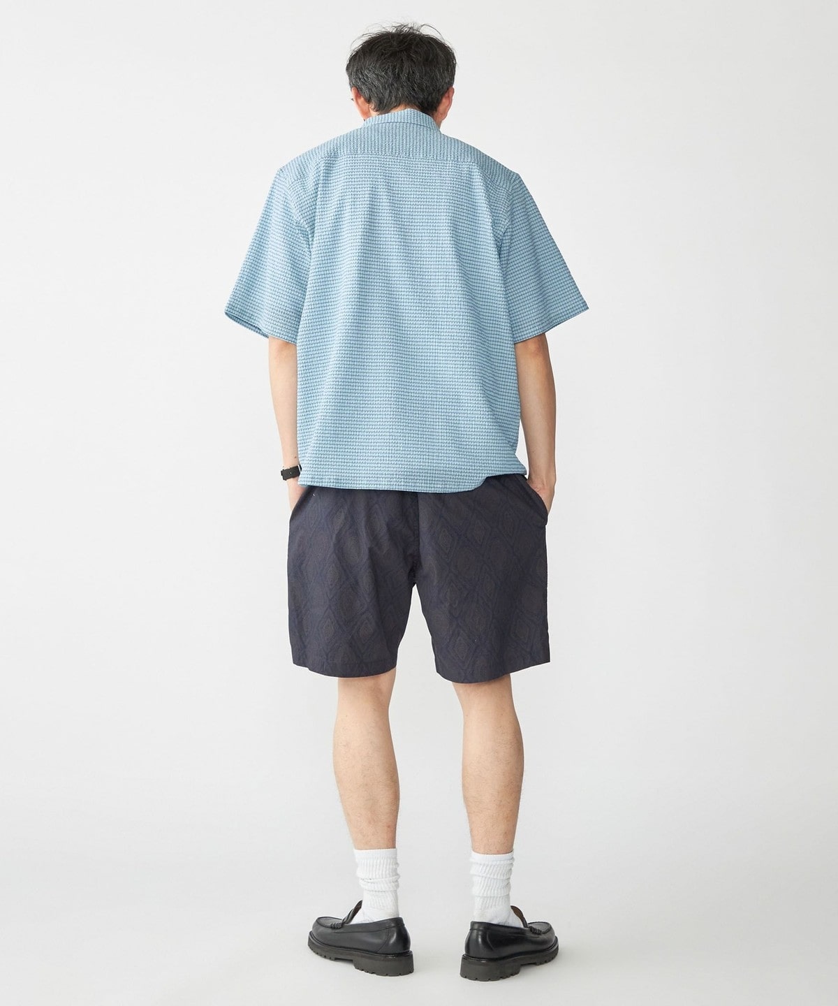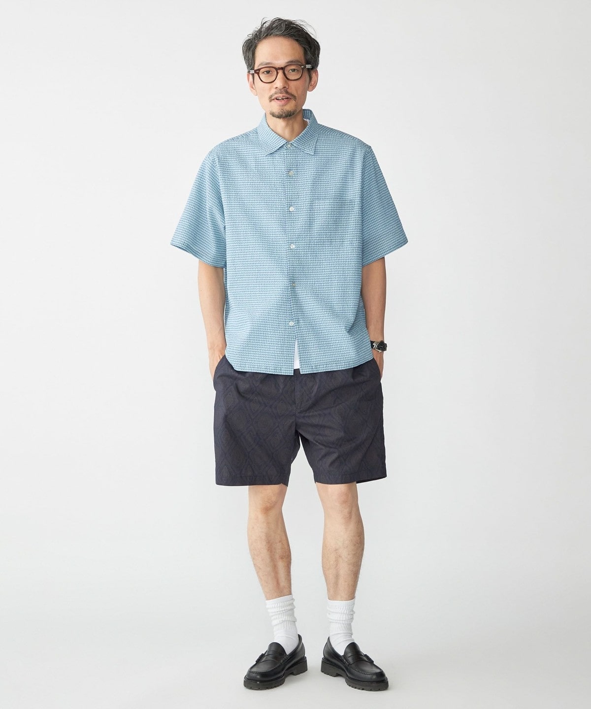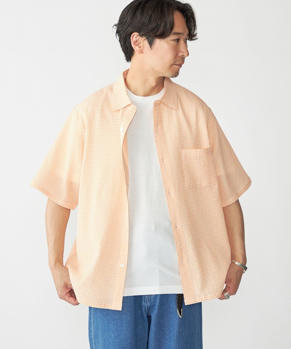 【スタイリング】清涼感のあるシャツなのでパンツはリネンやショーツ等の夏らしいアイテムがオススメ。
