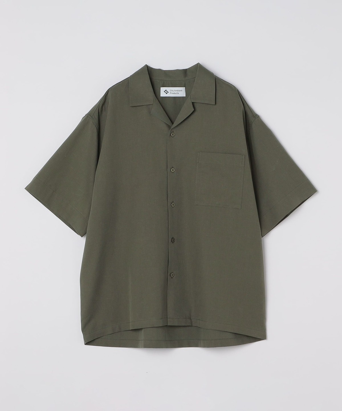 1. City Ambient Products: オープンカラー コットン リネン ショートスリーブ シャツ オリーブ