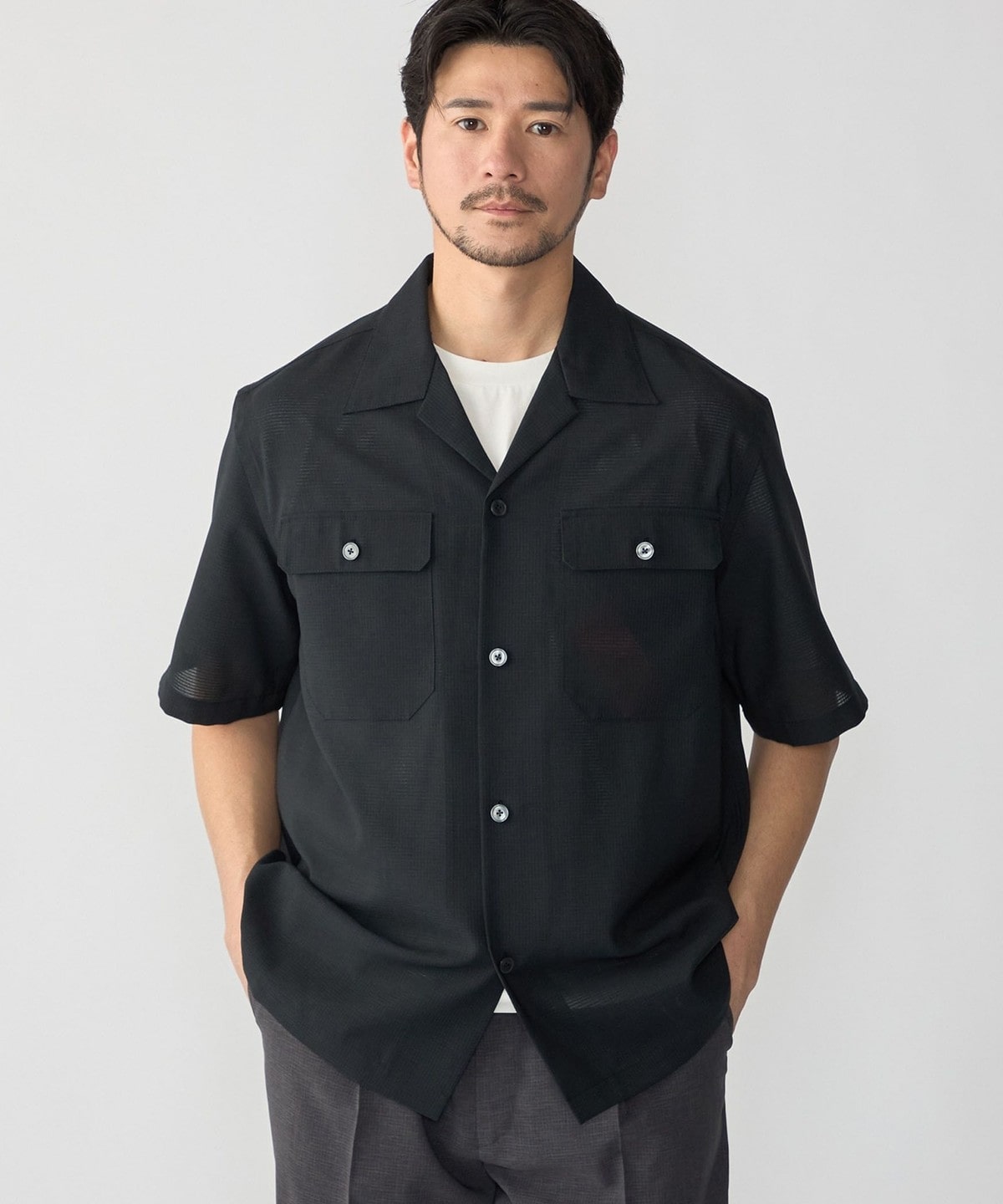 【MODEL】 オープンカラー ショートスリーブ シャツ