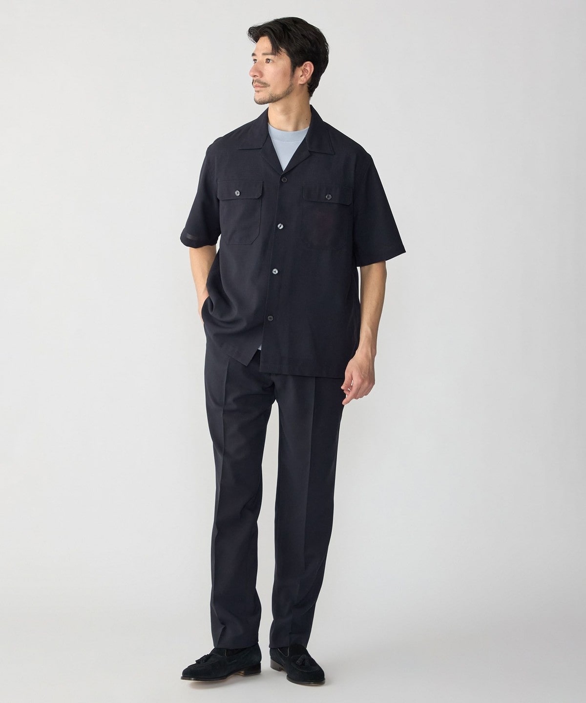 セットアップはもちろんシャツ単品でもお使いいただきやすく、幅広いスタイリングをお楽しみいただけます。