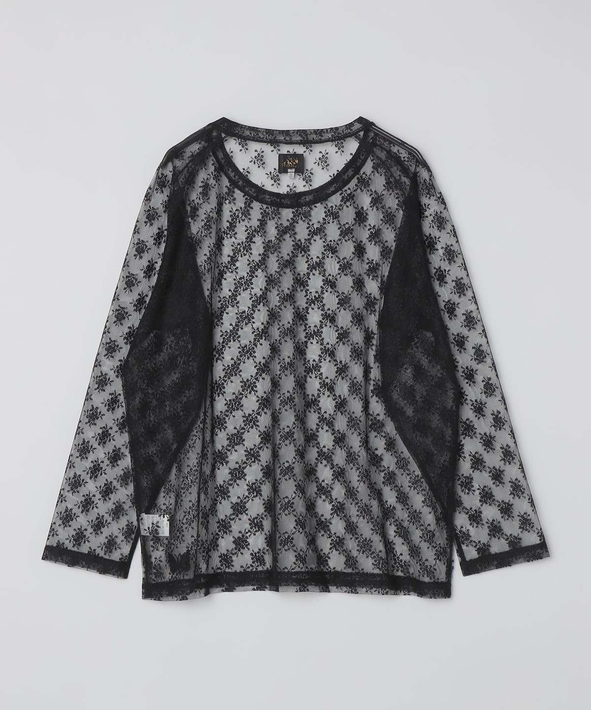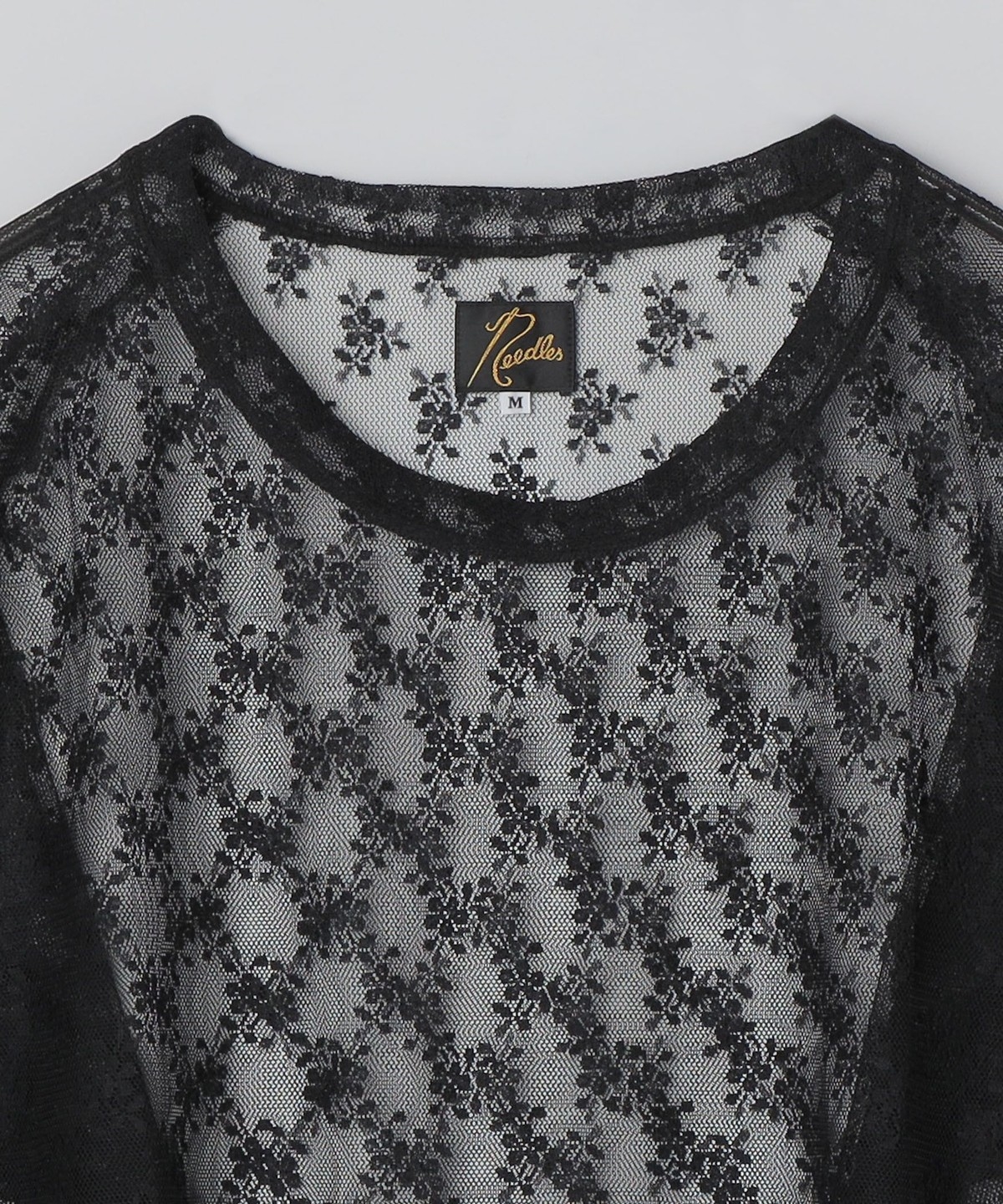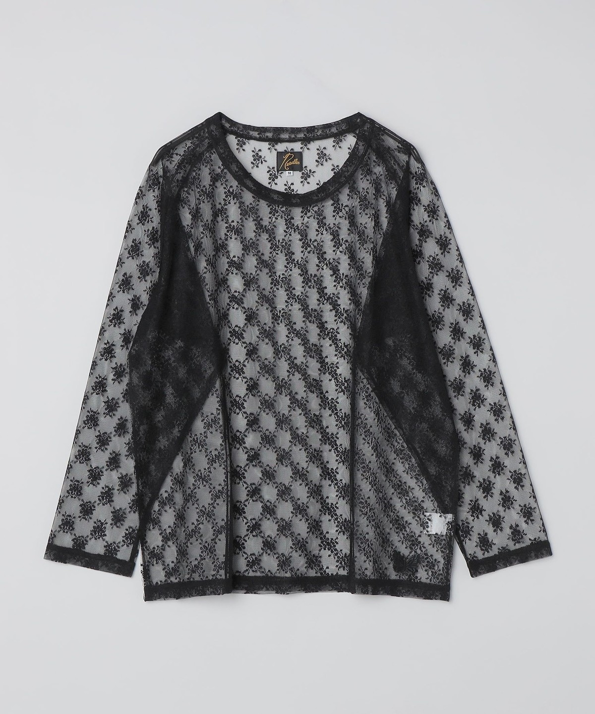 NEEDLES: L/S U-NECK TEE FLORAL RASCHEL LACE