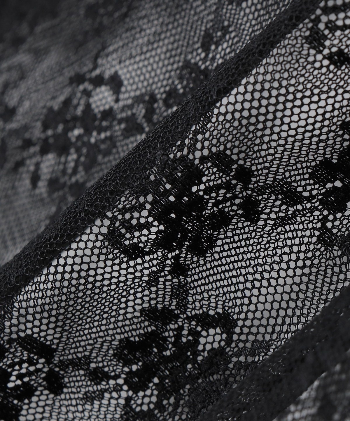 立体的に編み上げたラッセルレース素材は、ポリエステル特有の軽さと耐久性に加え、透け感が生む繊細な表情が特徴です。